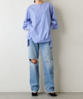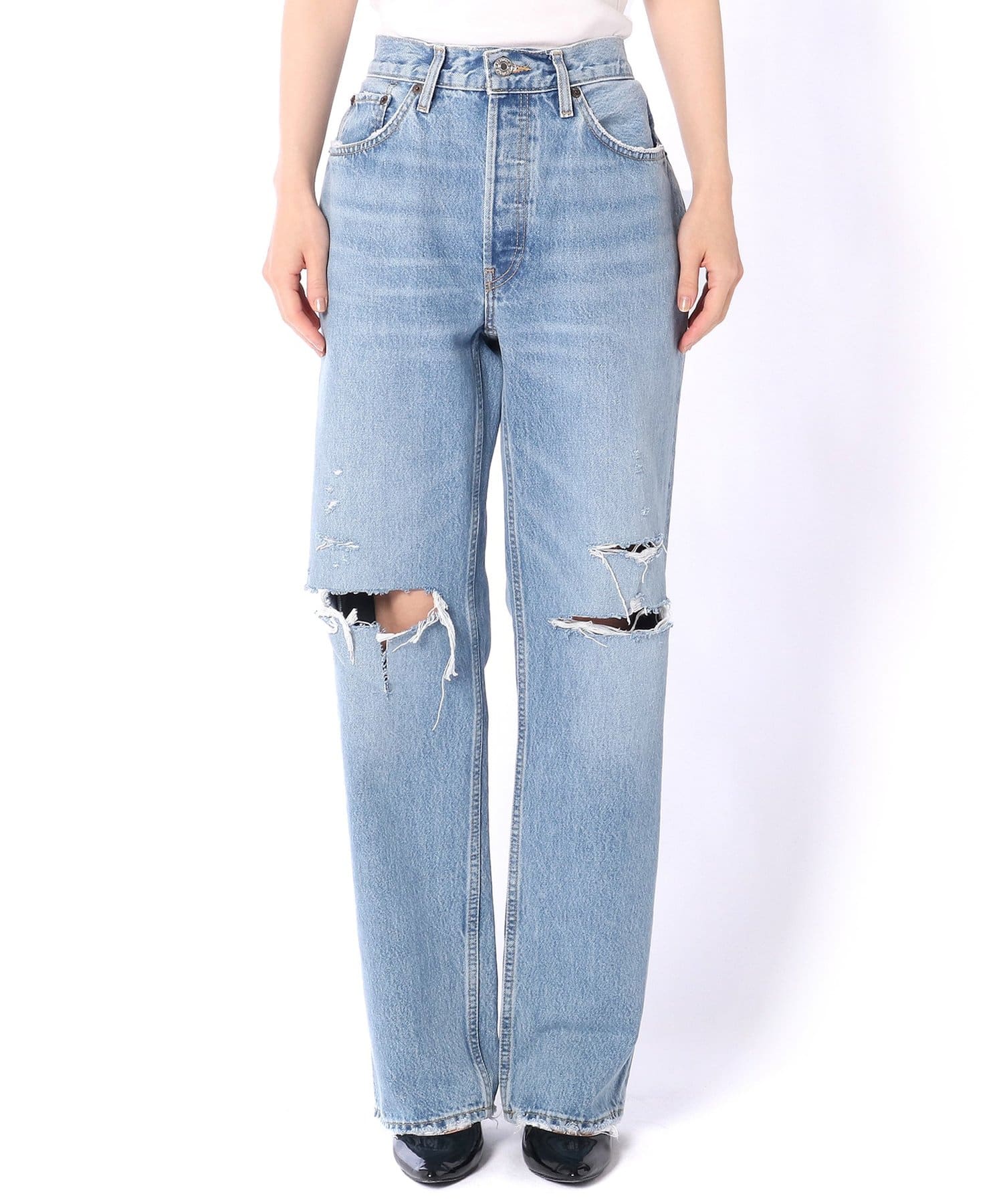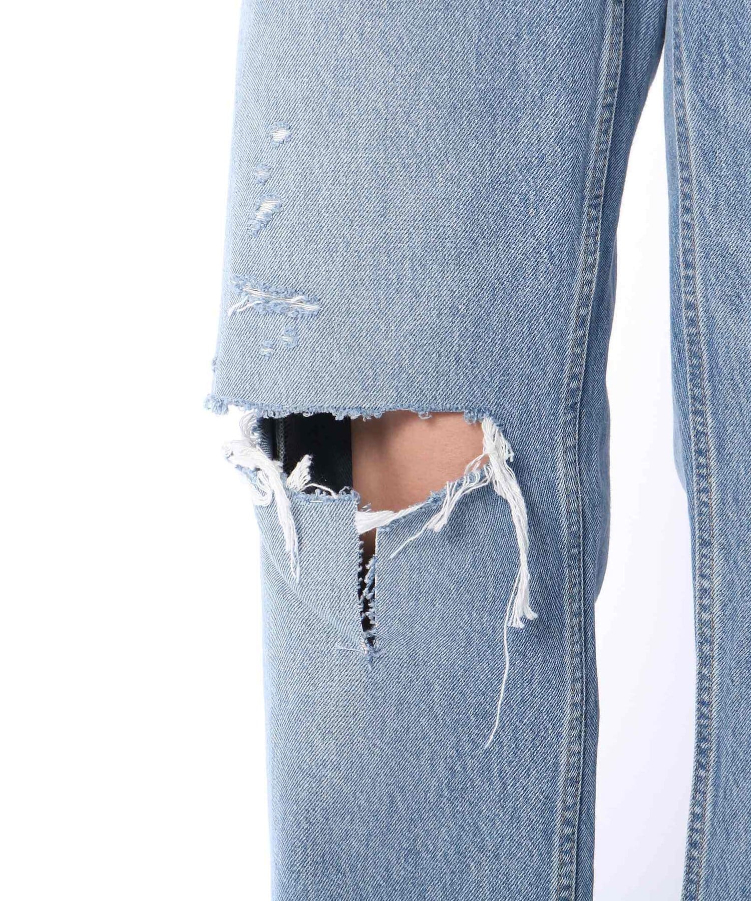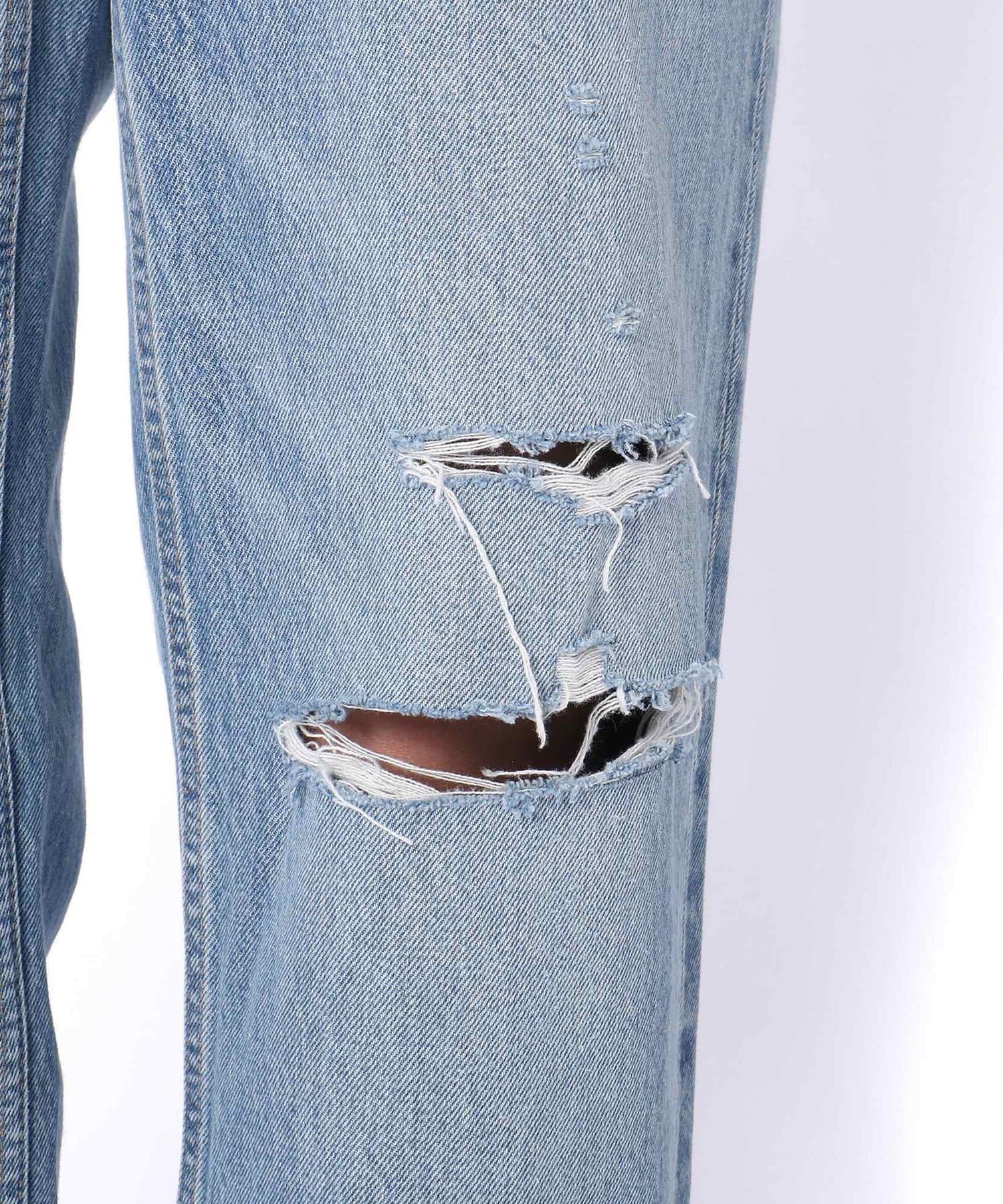 ■大胆に施されたひざのクラッシュ加工が90sライクなこなれ感を演出。