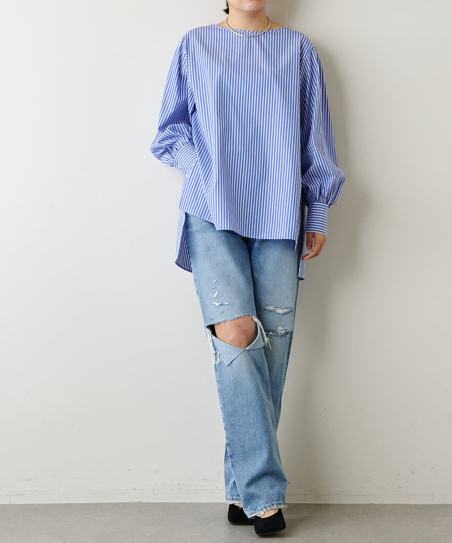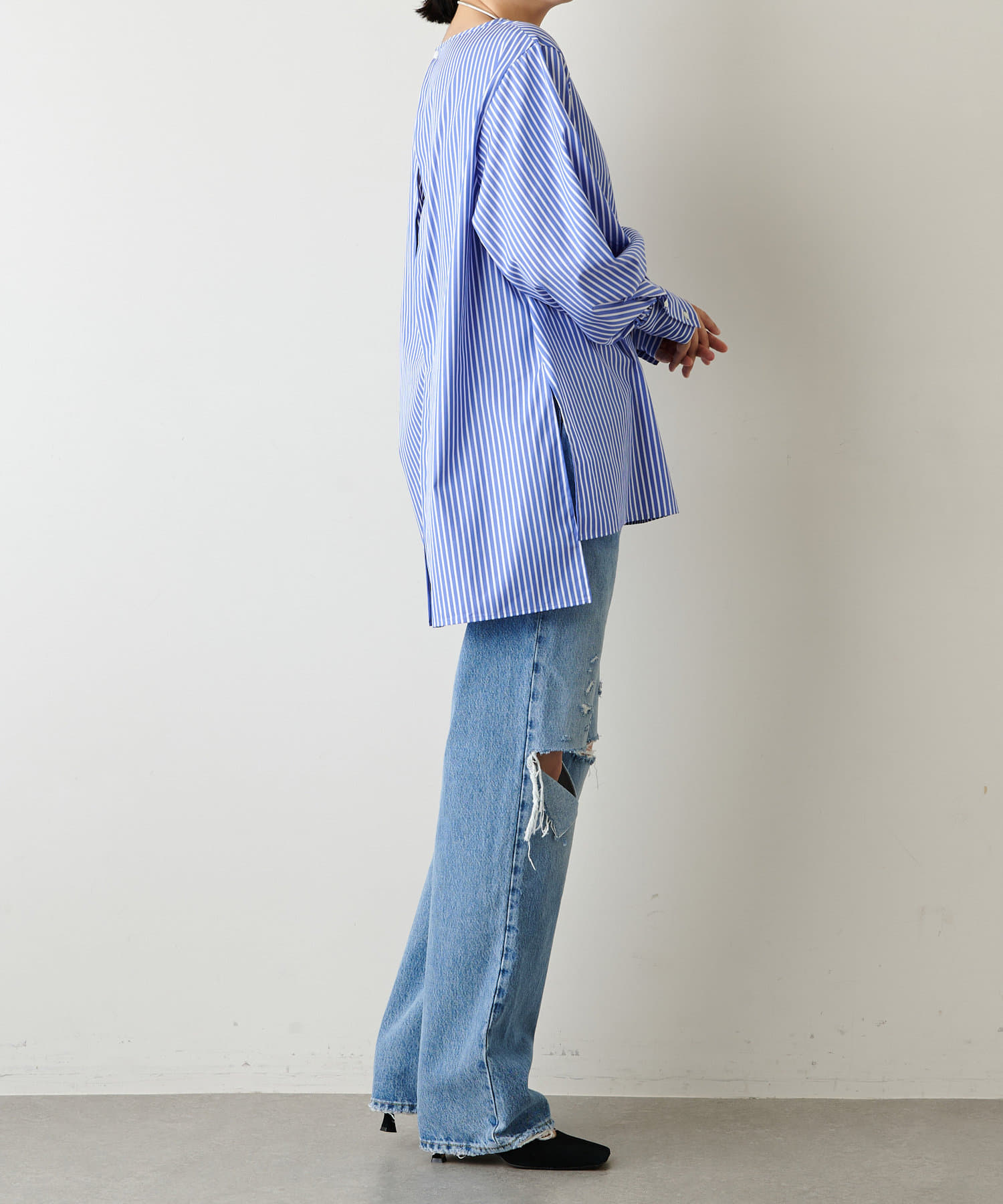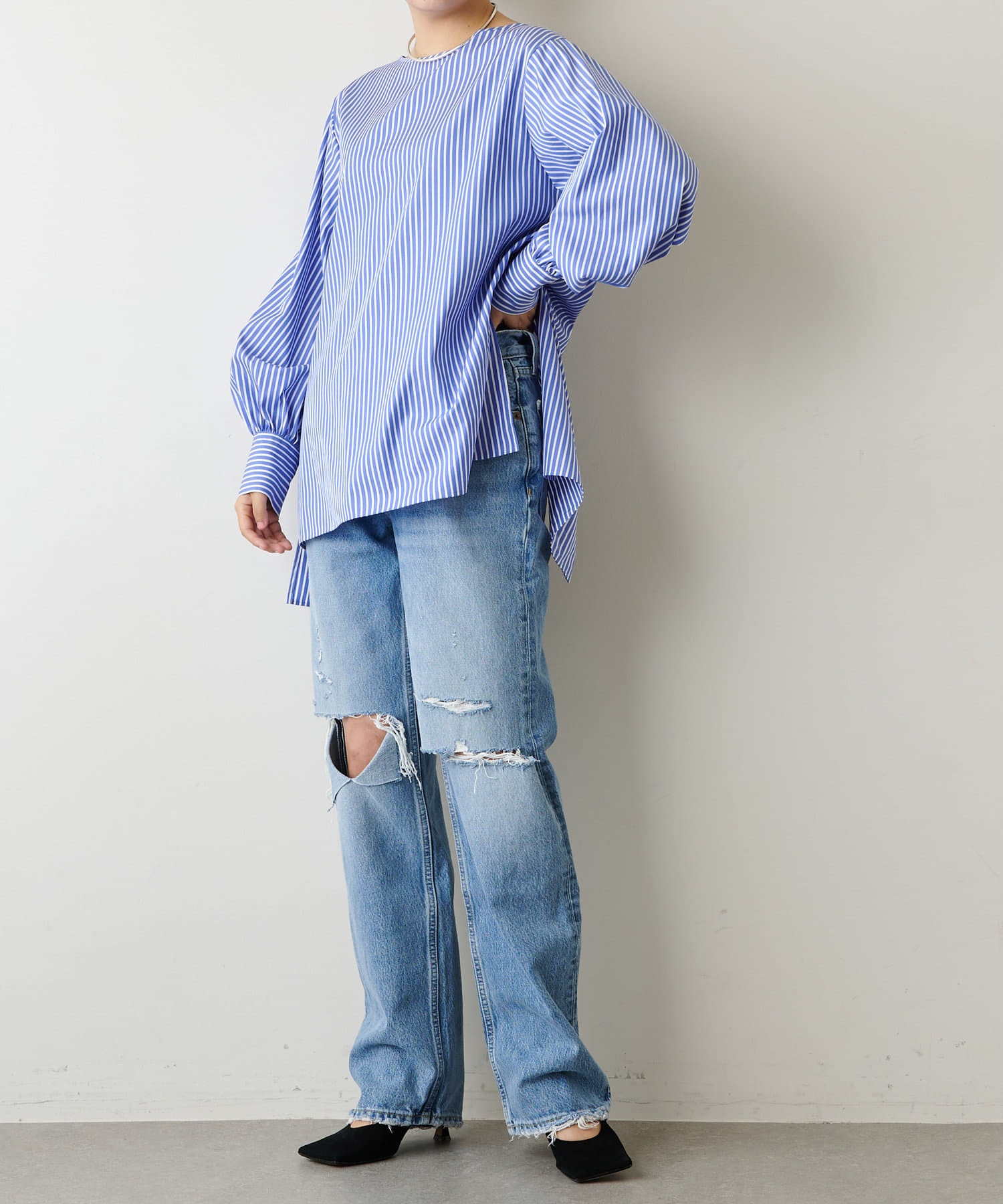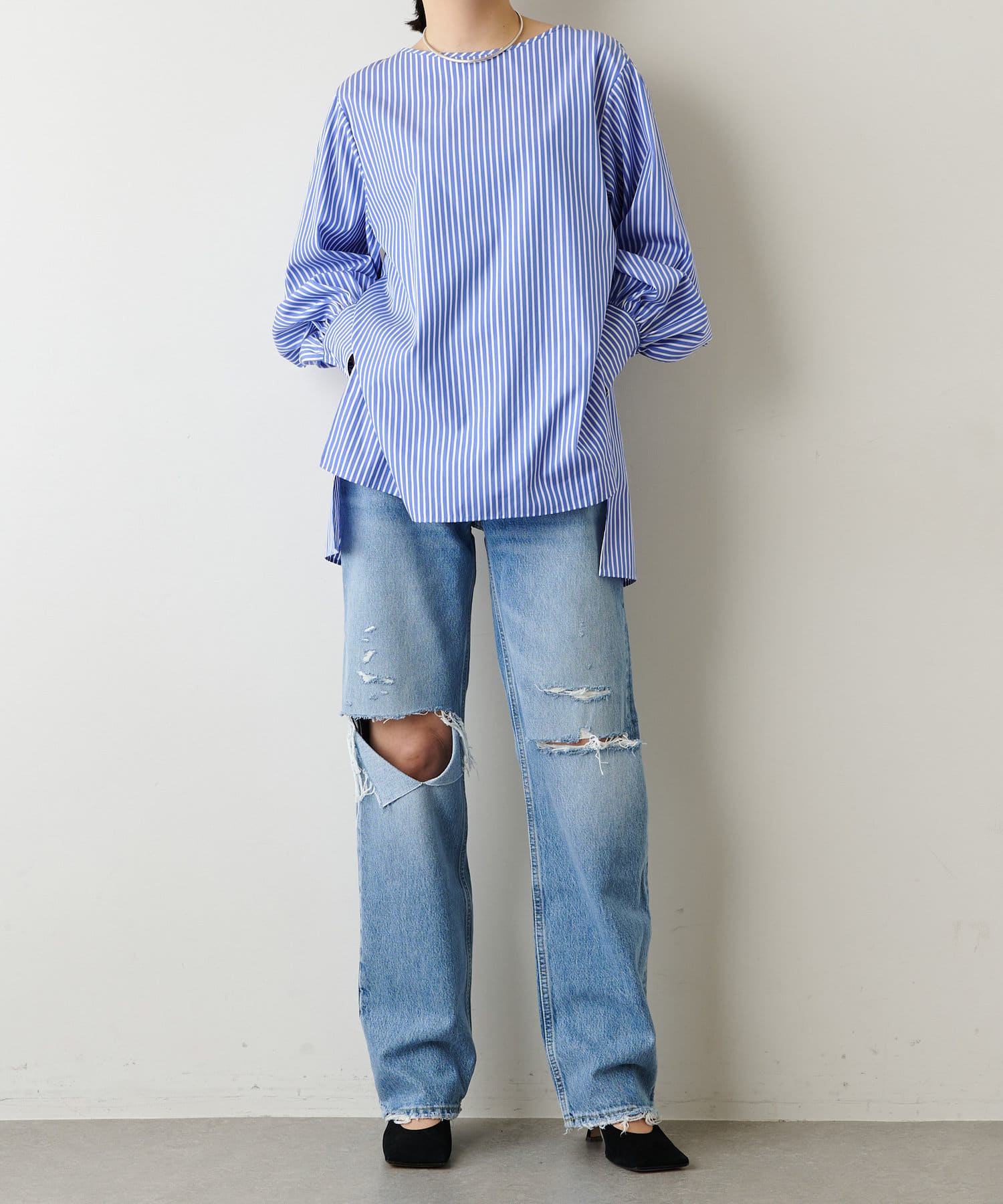 ■大胆に施されたひざのクラッシュ加工が90sライクなこなれ感を演出。