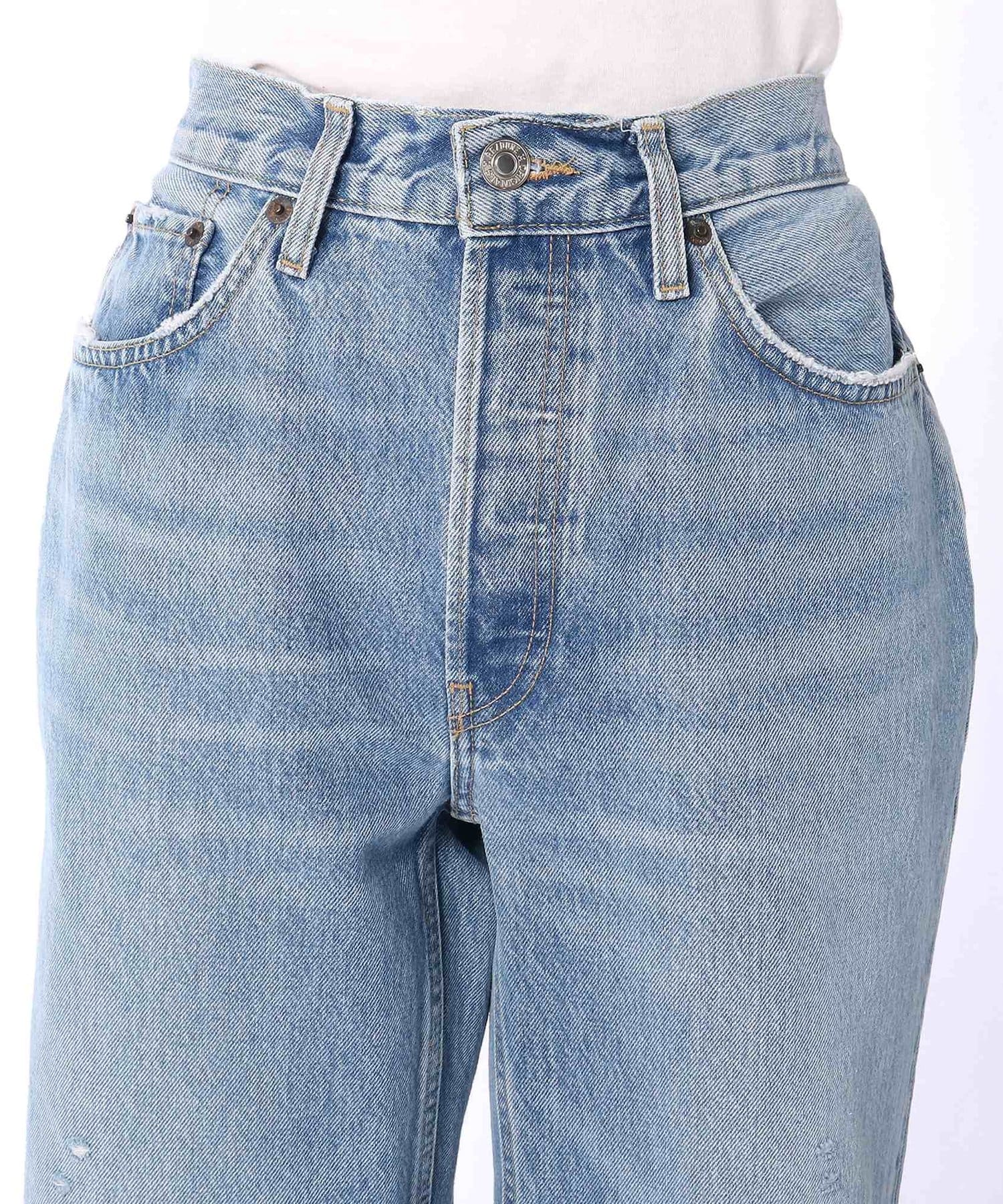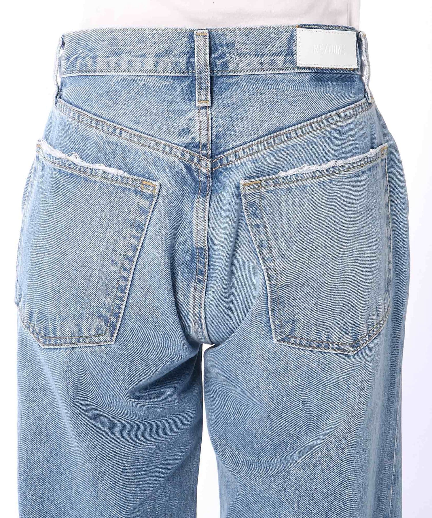 Re/Done は、ストレッチ素材ではないデニムが、着古された状態になったときに生まれる柔らかさとしなやかさで、身体にぴったりとフィットするコンテンポラリーな女性のシルエットを表現。ストレッチ加工なしで身体の曲線を優しく包み込むような履き心地が特徴で、年月を経たことによって生まれる風合いと色味によって、どの一着もこの世に一着しかないものに仕上がっている。