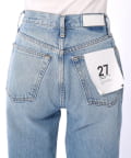 Re/Done は、ストレッチ素材ではないデニムが、着古された状態になったときに生まれる柔らかさとしなやかさで、身体にぴったりとフィットするコンテンポラリーな女性のシルエットを表現。ストレッチ加工なしで身体の曲線を優しく包み込むような履き心地が特徴で、年月を経たことによって生まれる風合いと色味によって、どの一着もこの世に一着しかないものに仕上がっている。