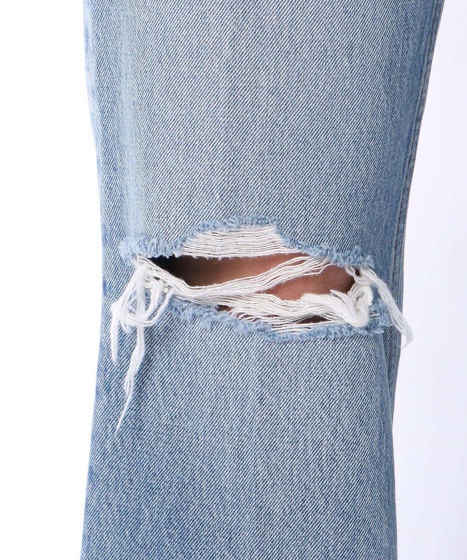 ■右ひざのみに控えめに施されたクラッシュ加工がこなれ感を演出。