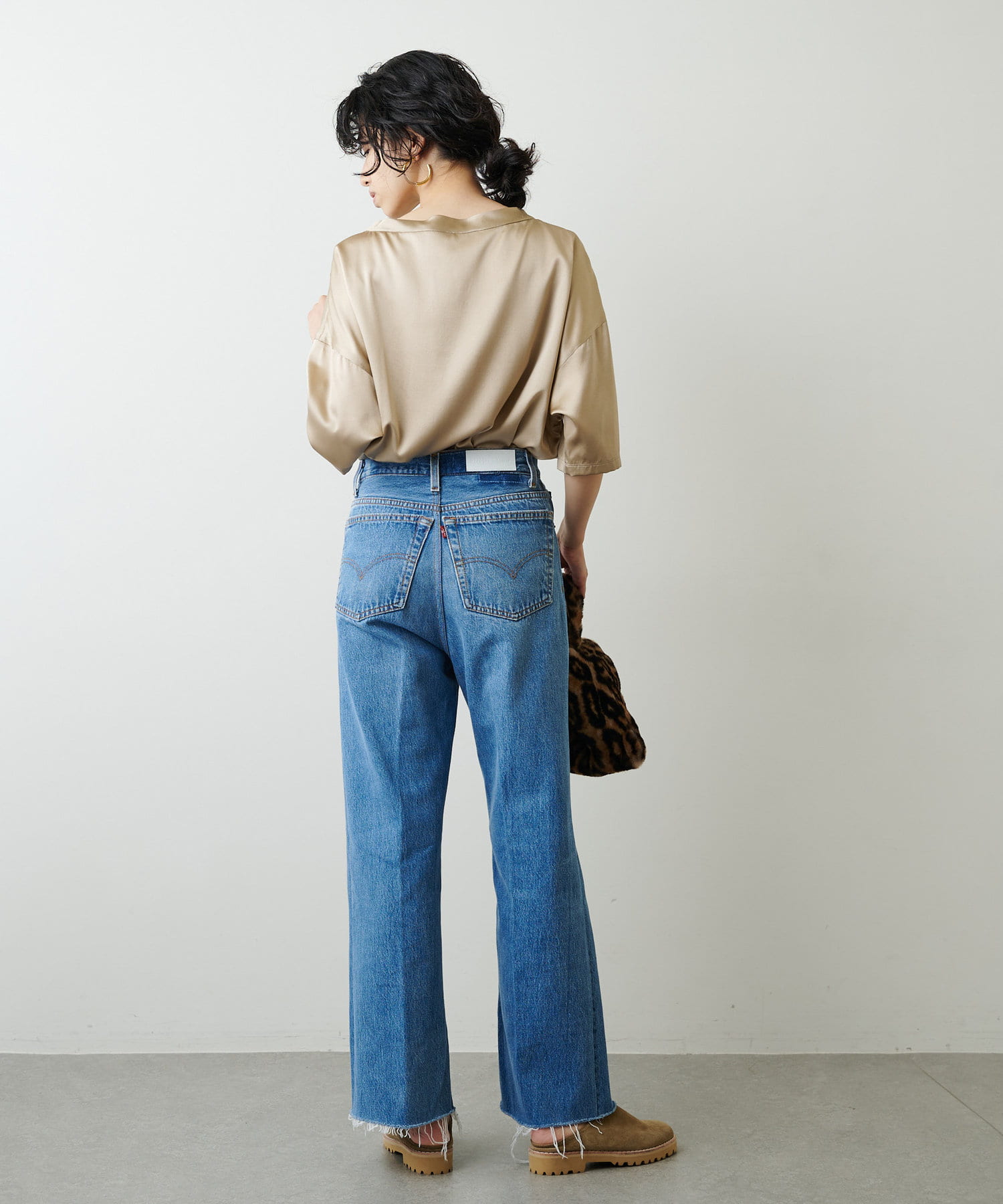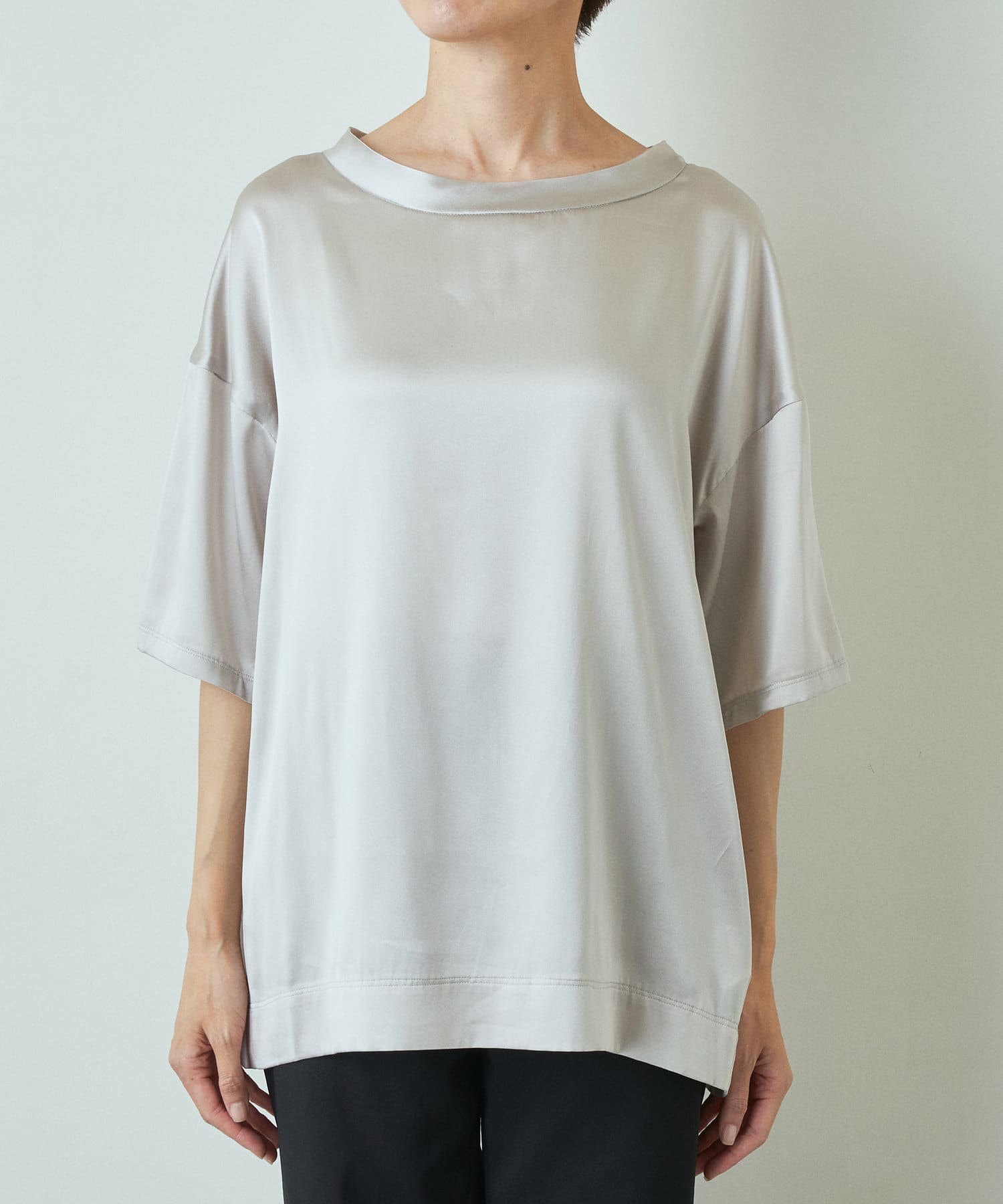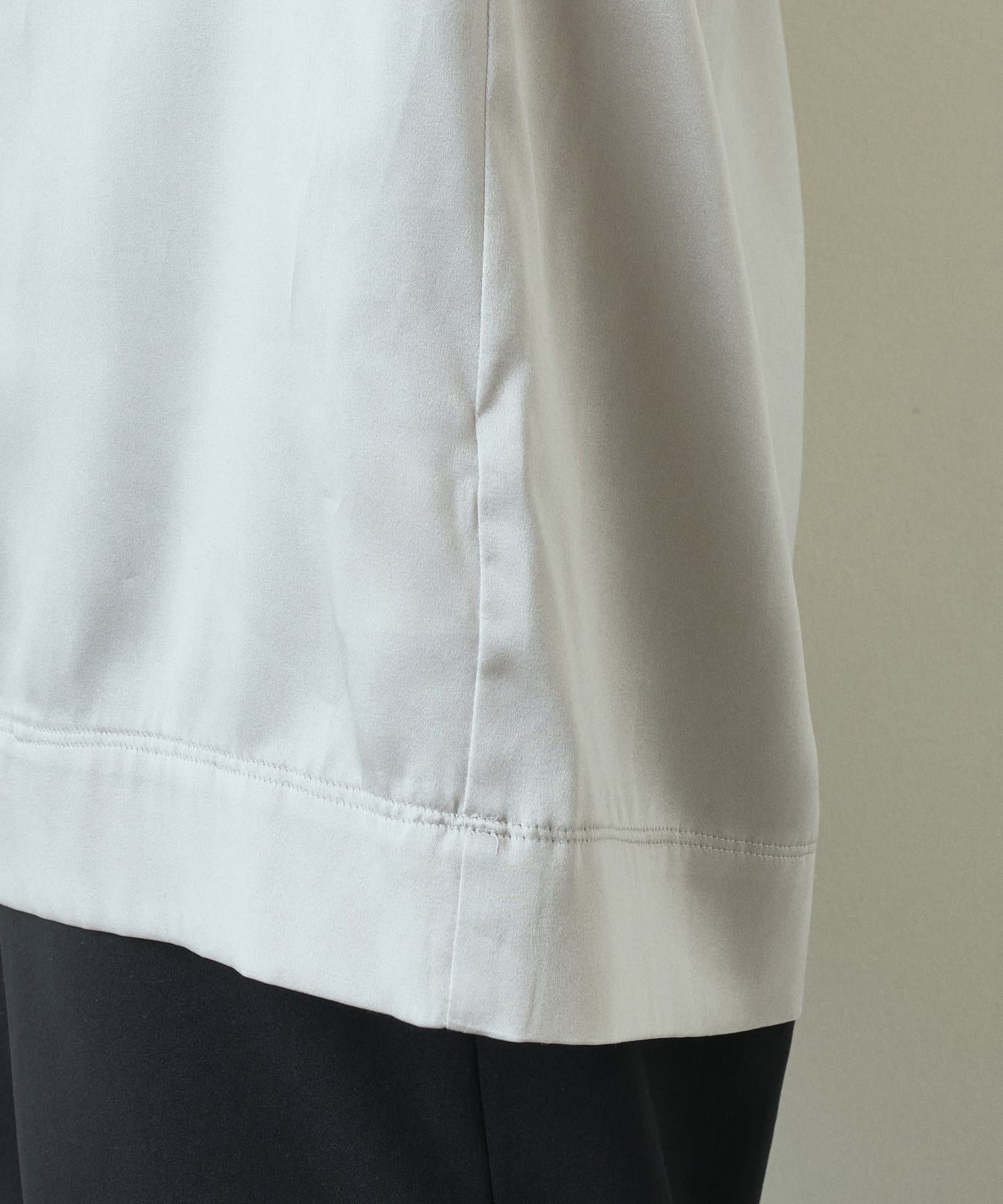 リラクシーな雰囲気がありながら、上質感のある素材なので見た目もカジュアルになりすぎず、大人の余裕を感じさせる抜け感トップスとして最適です。