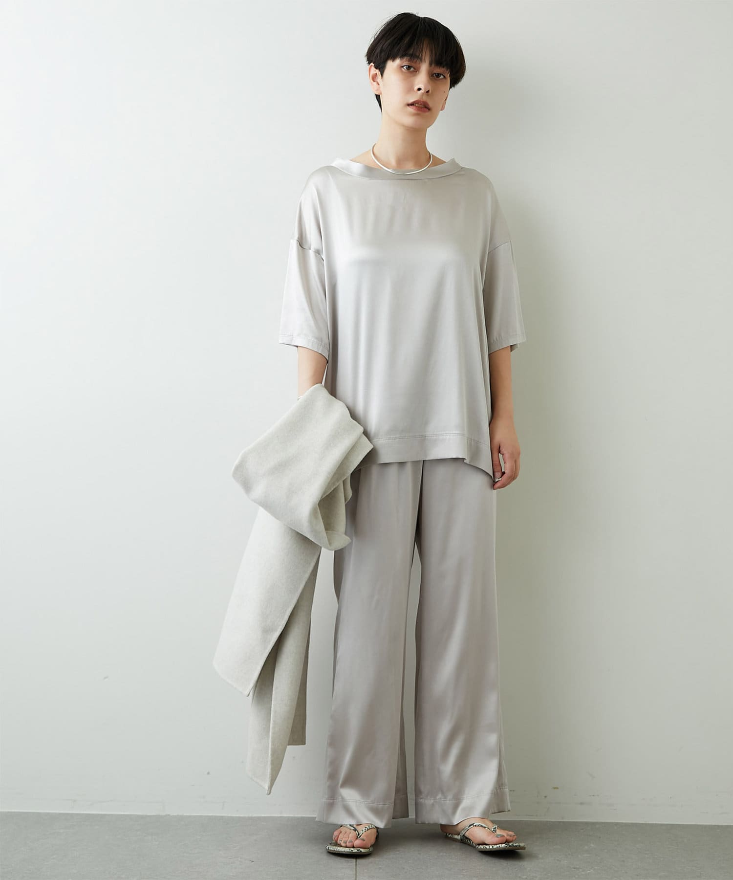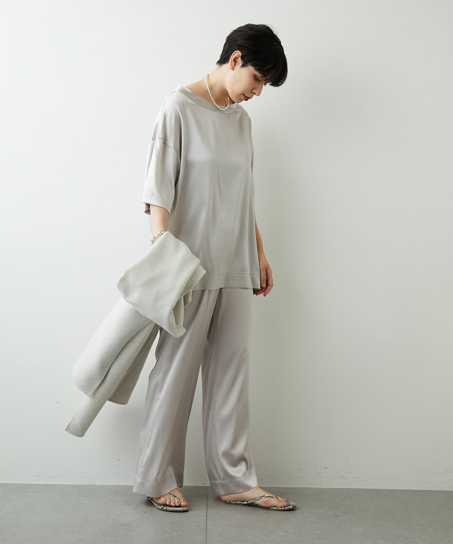 同素材のシルクサテンEASYパンツ(ブランド品番:WGZ1012102A0001)とのセットアップもおすすめです。