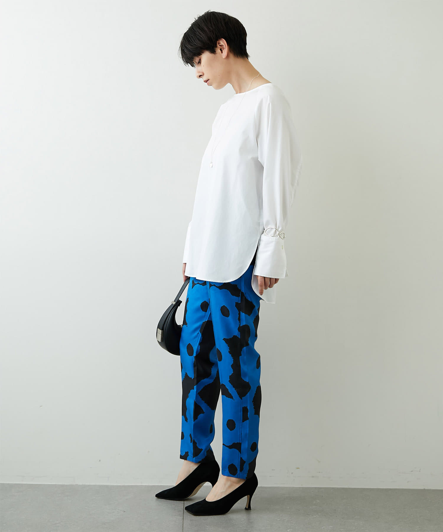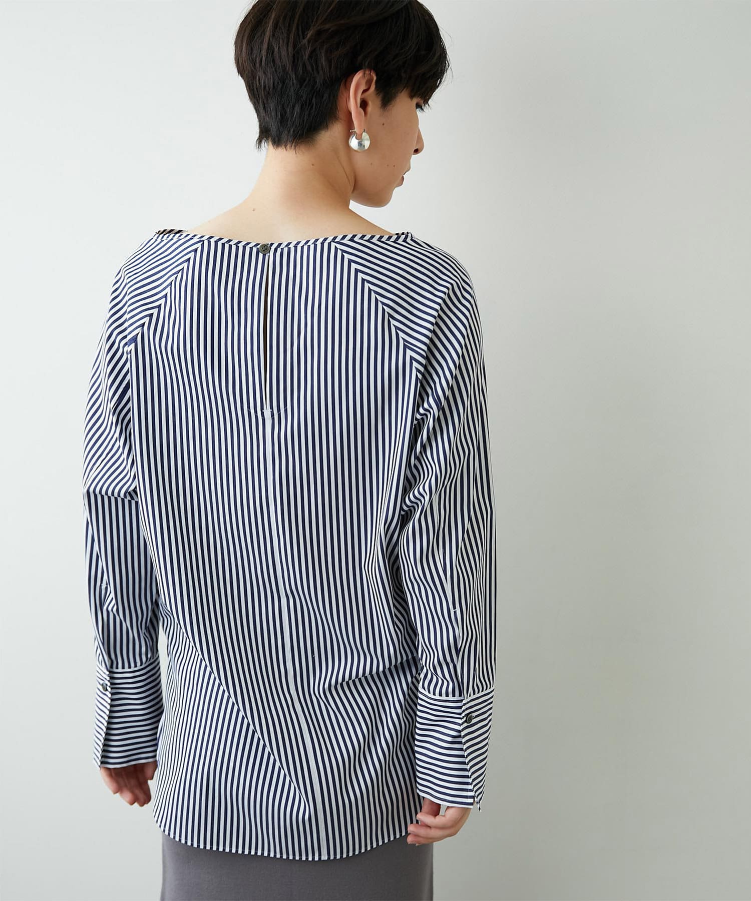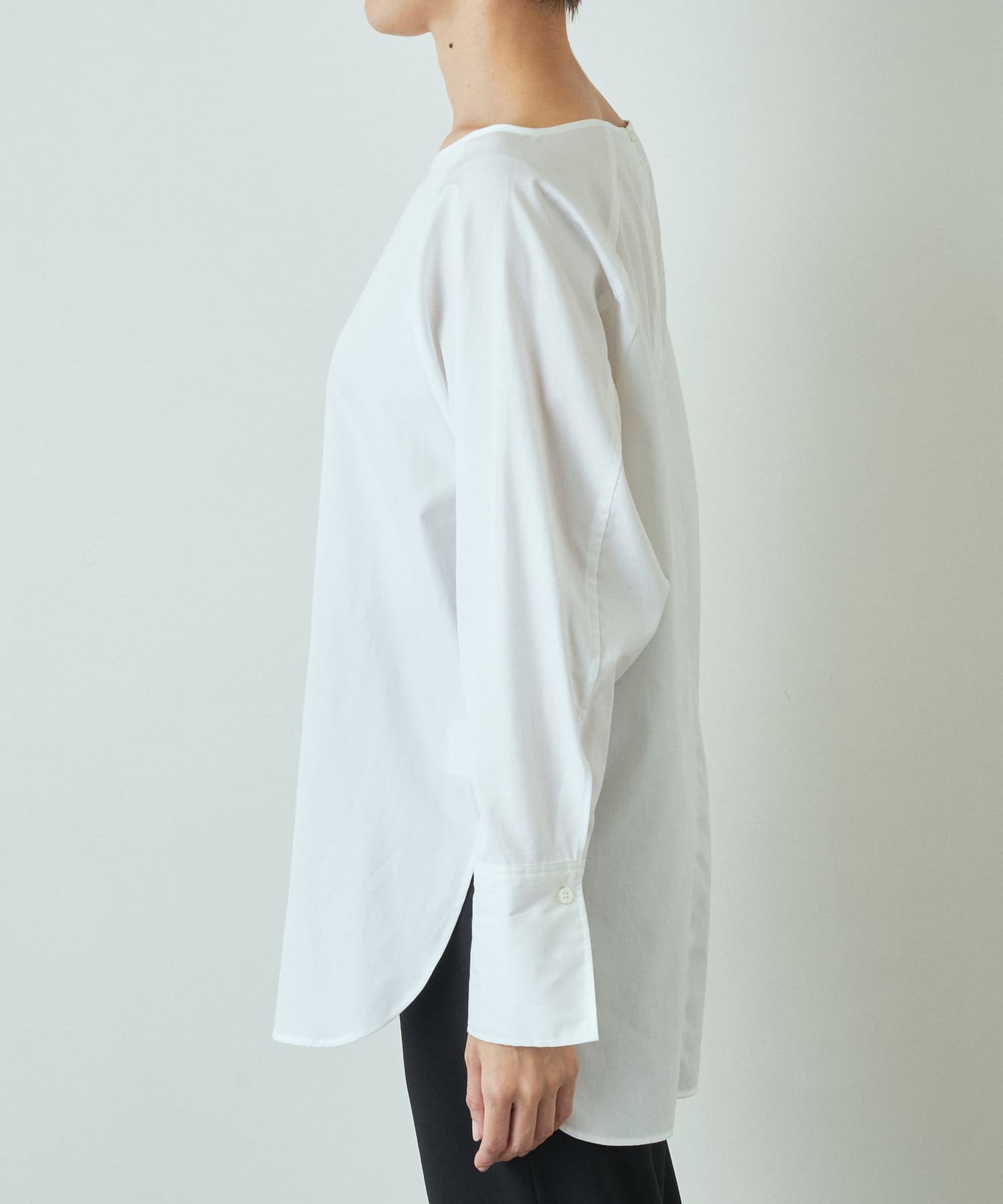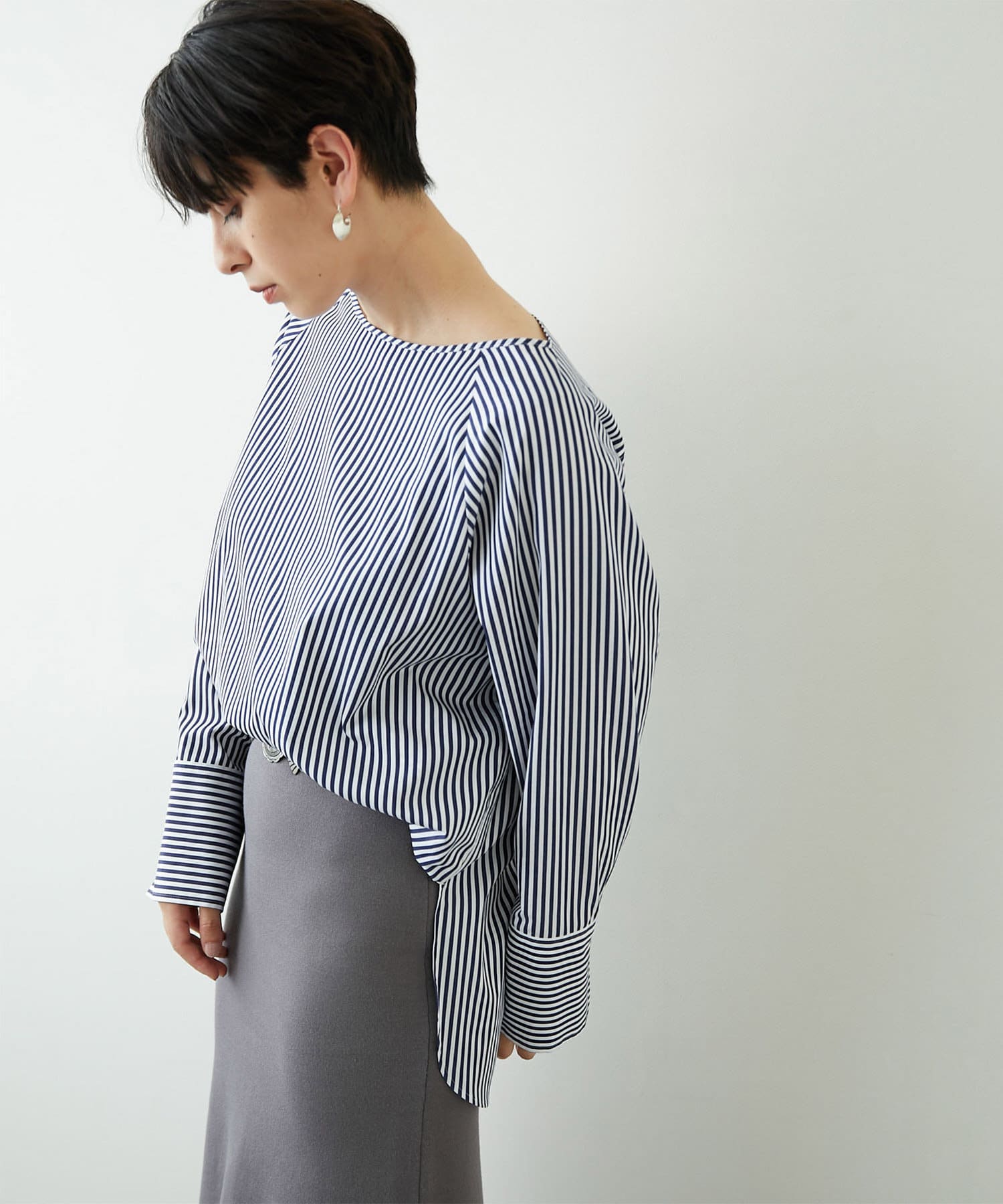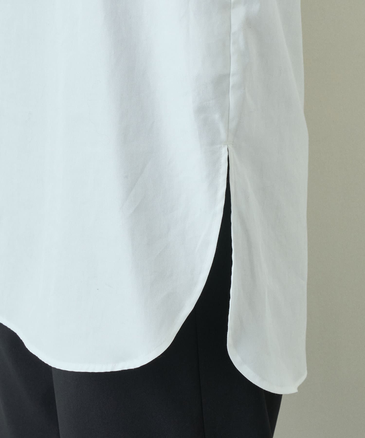 前後差のある丈はトップスインもしやすく、アウトにしても様になり、これからの季節に着回し力抜群なブラウスです。