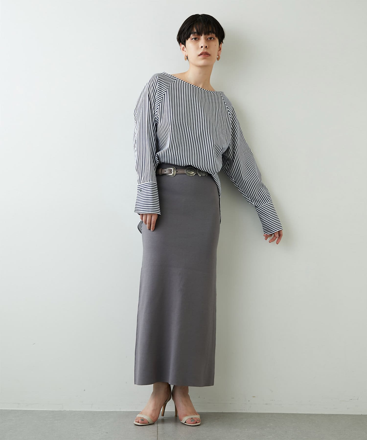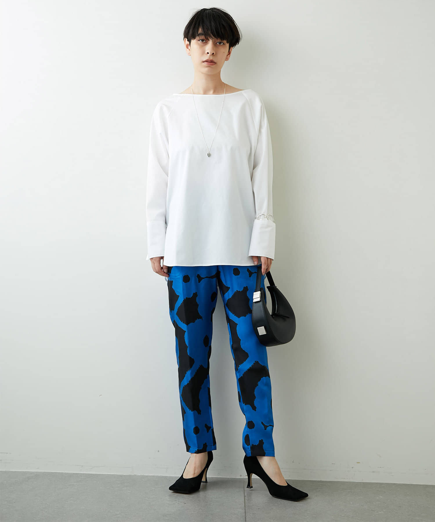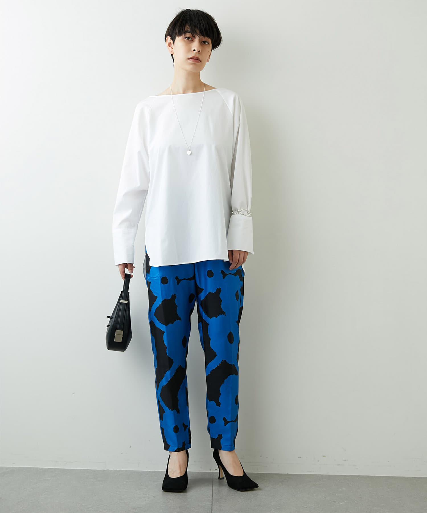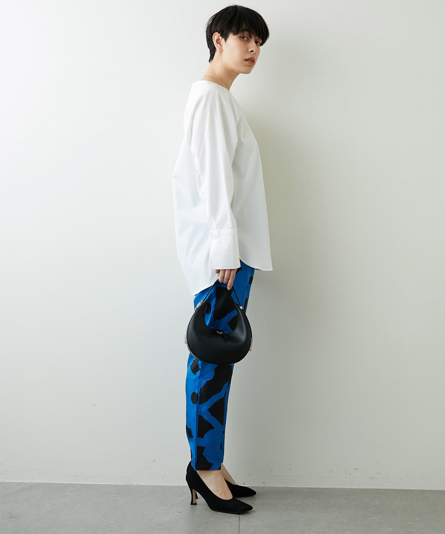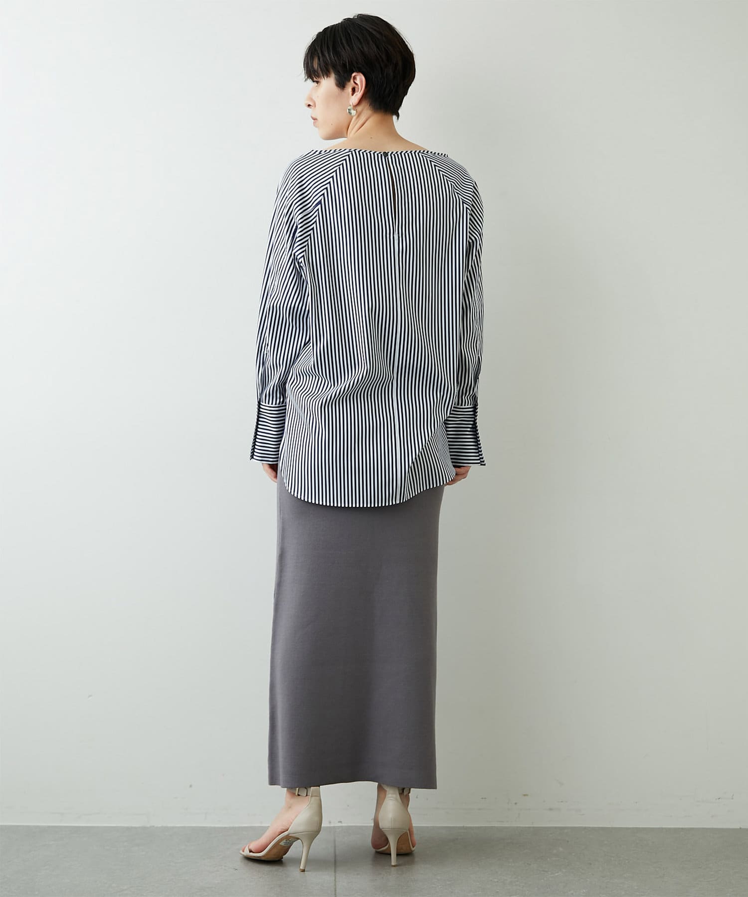 前後差のある丈はトップスインもしやすく、アウトにしても様になり、これからの季節に着回し力抜群なブラウスです。