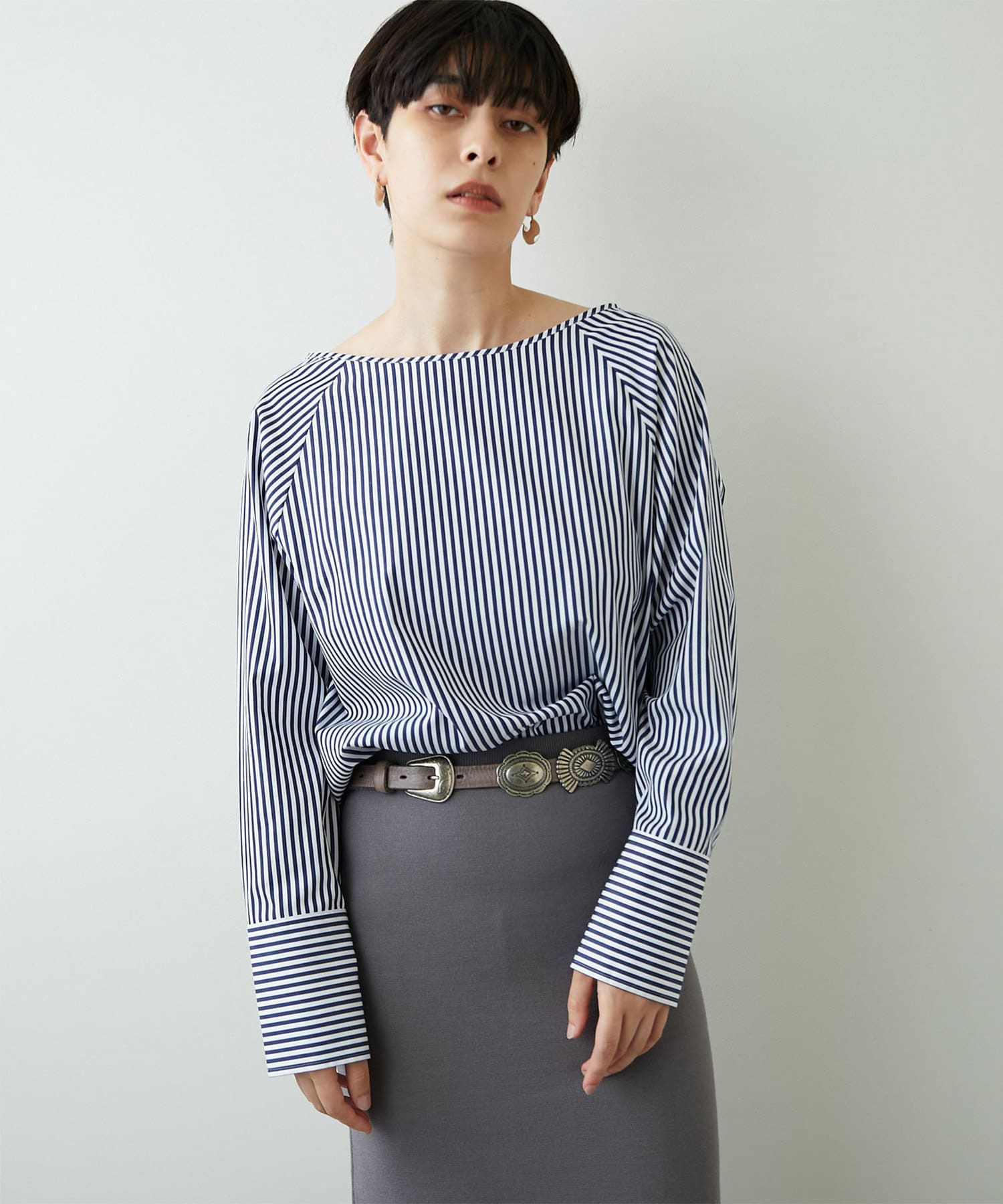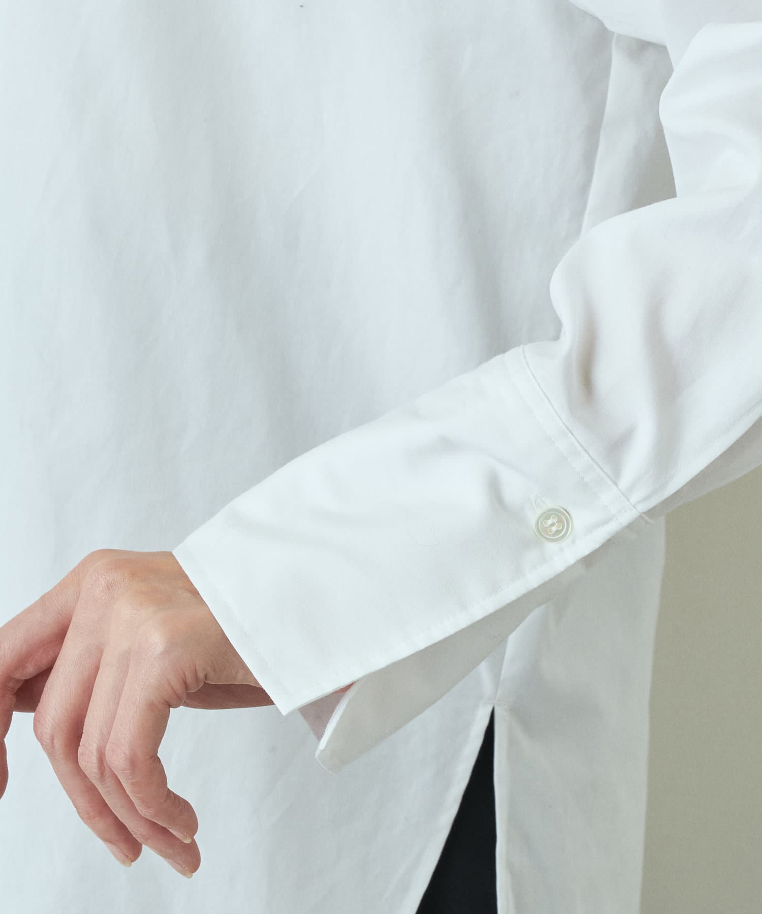 長めのカフスがモードな雰囲気で、ジャケットやニットにレイヤードさせて袖口からカフスを少し出せばこなれ感を演出してくれます。