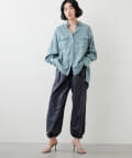 メンズライクなデザインながら、さりげないシアー感のある素材が女性らしさをプラス。