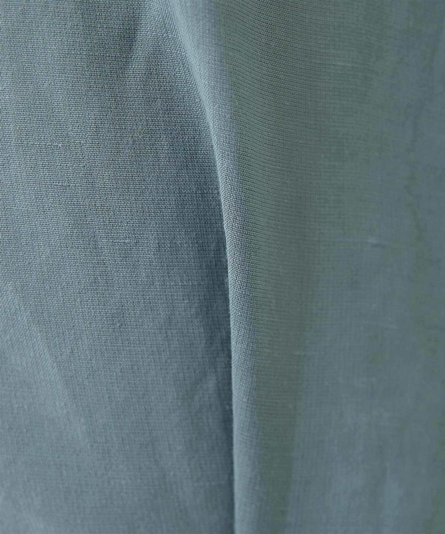 ドライタッチがシャープな印象のリネン混素材を使用し、タンブラー加工を施すことで程よくナチュラルな風合いを出し、リネンのごわつきを軽減しています。