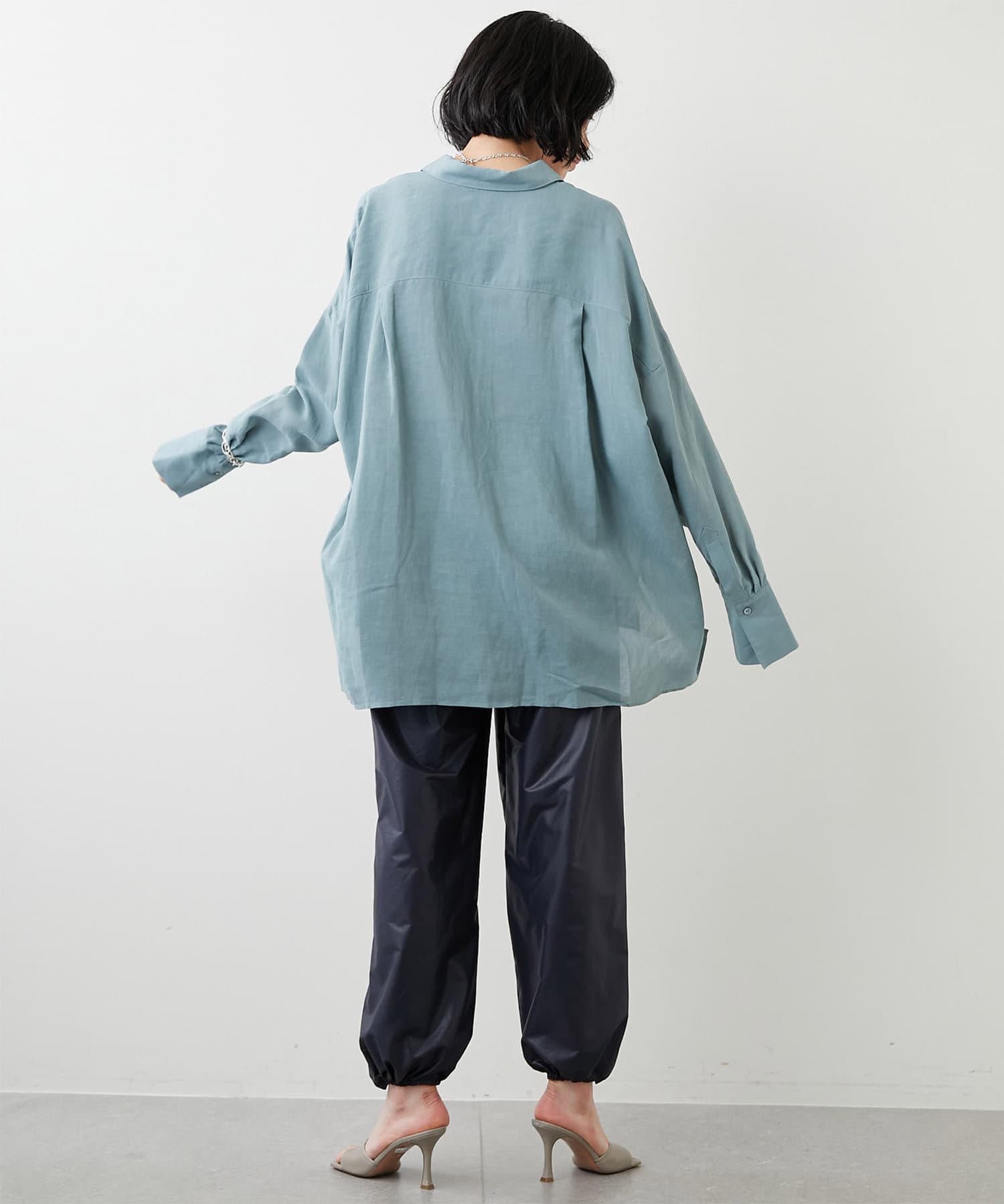 トップスとしてはもちろん、暑さの残る晩夏シーズンの軽い羽織としても重宝するおすすめのアイテムです。