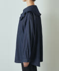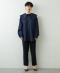 フリル付きの襟が少し甘さのある印象ながら、他のディテールはシンプルに、オーバーなサイズ感に仕上げているので大人な雰囲気に着こなしていただけます。