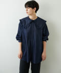 大胆なセーラーカラーが目を惹くデニム素材のブラウス