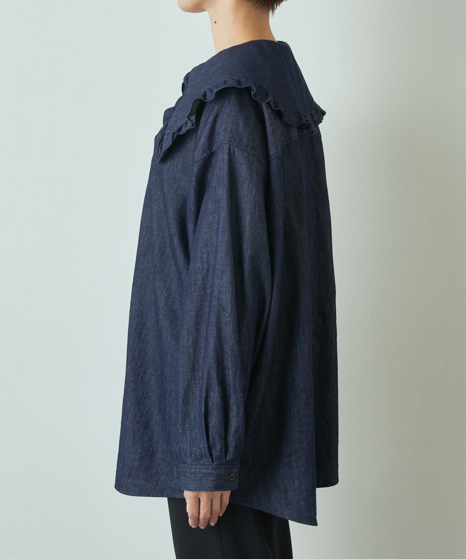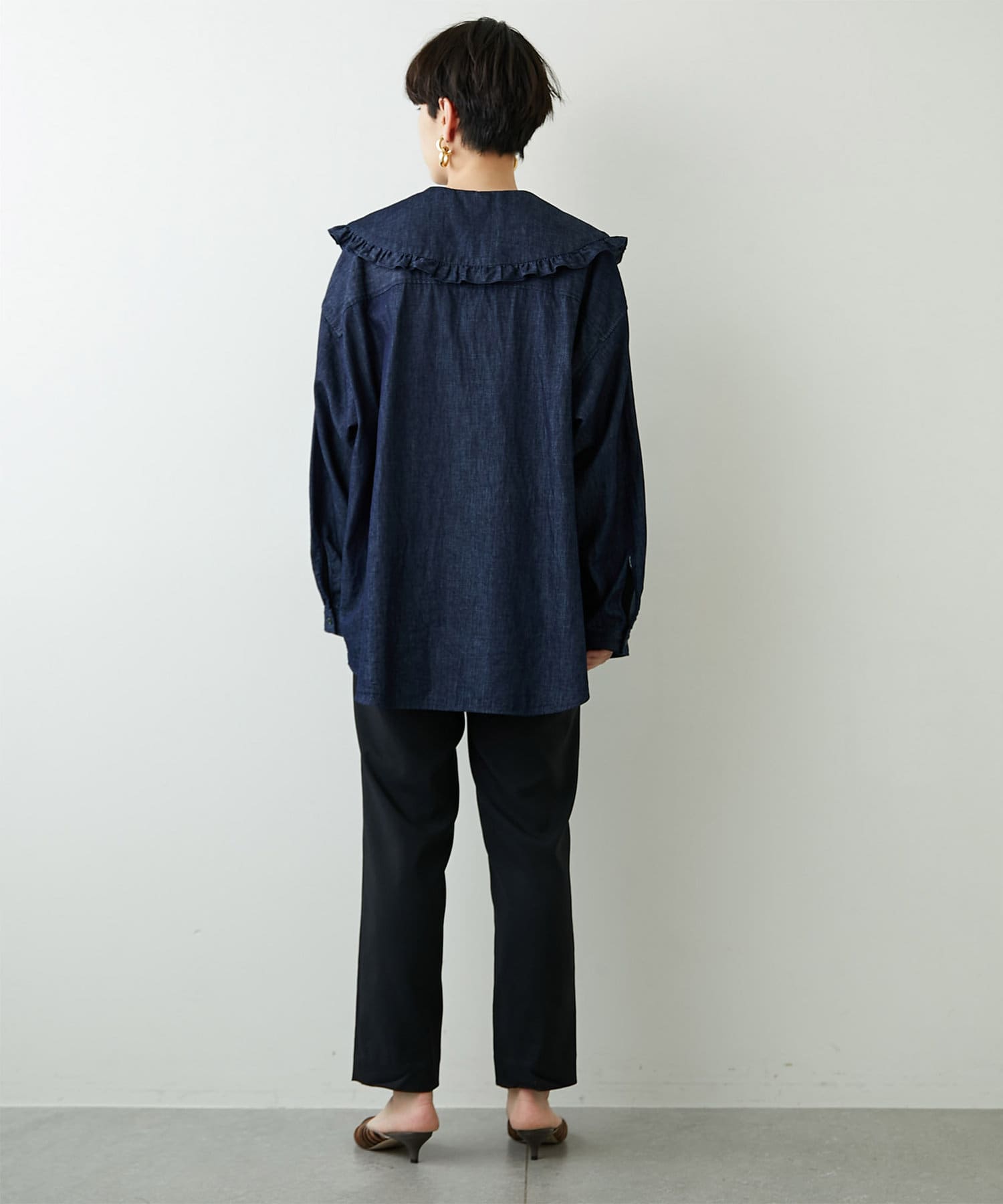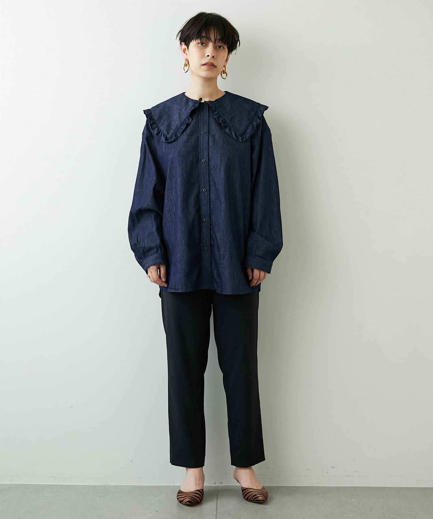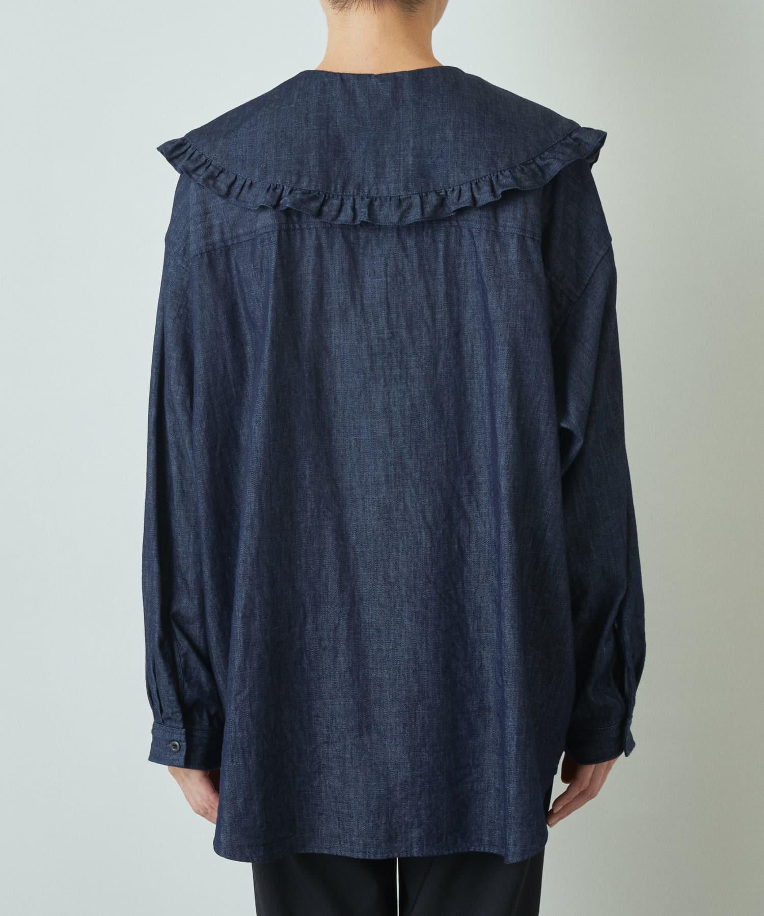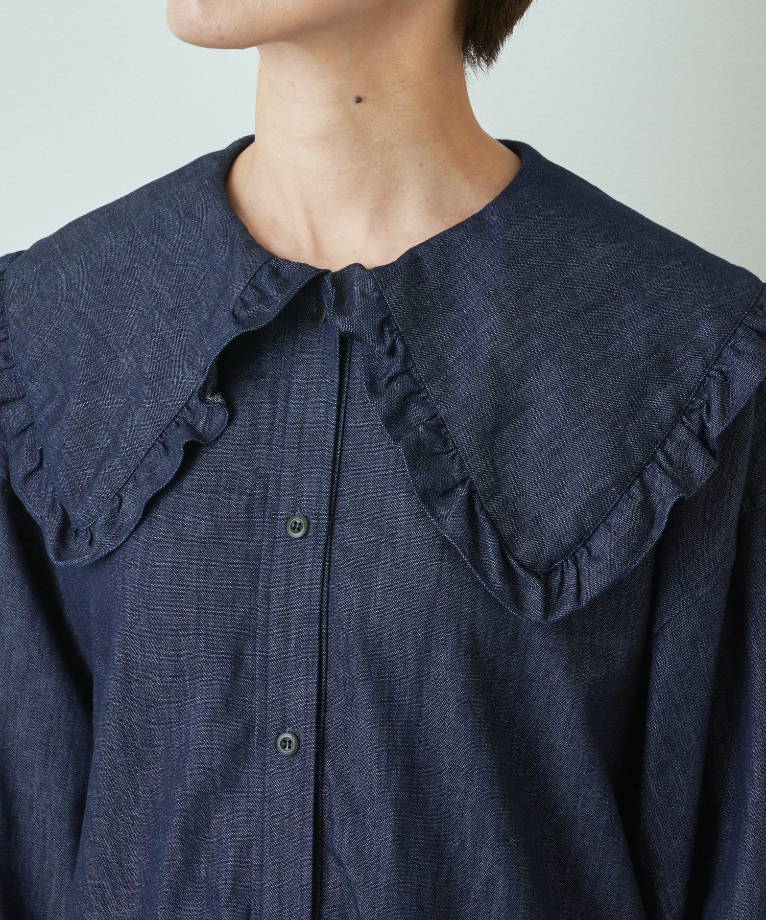 トレンド感漂うビッグカラーデザインが印象的なデニムブラウス。
