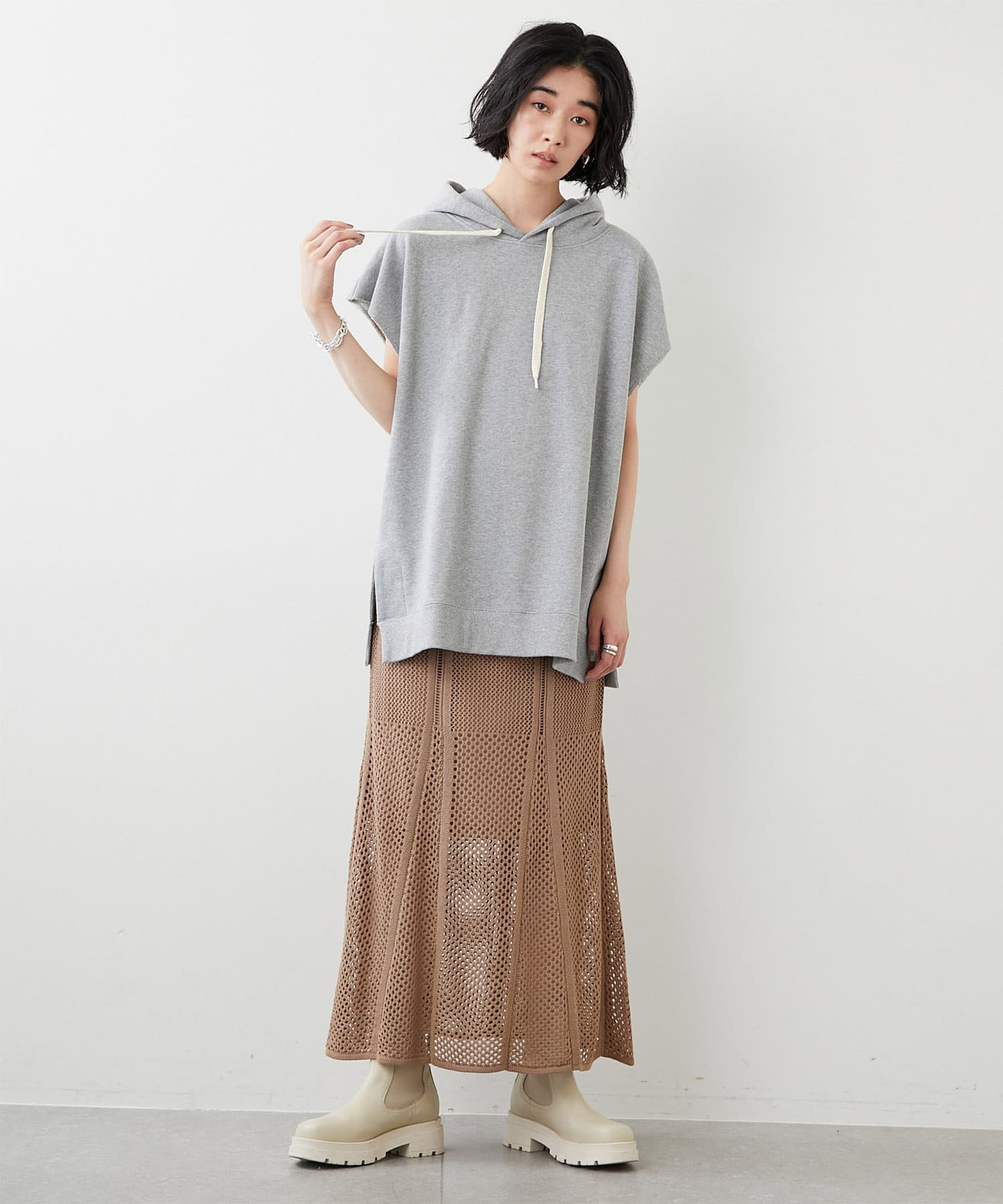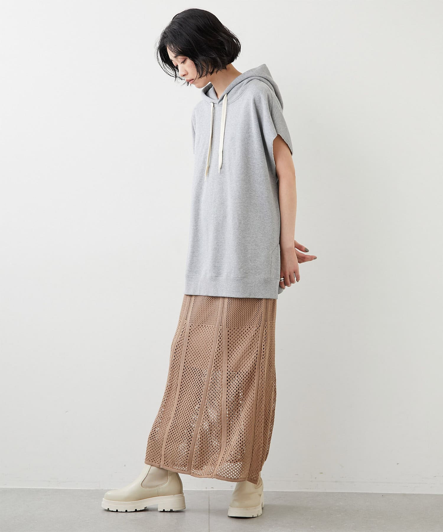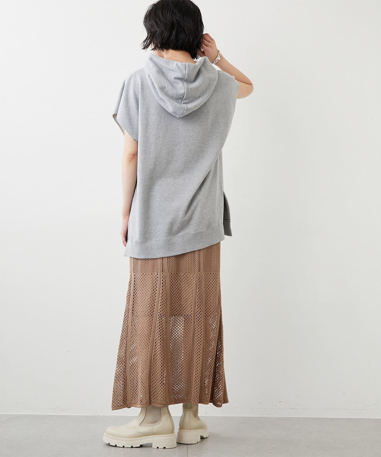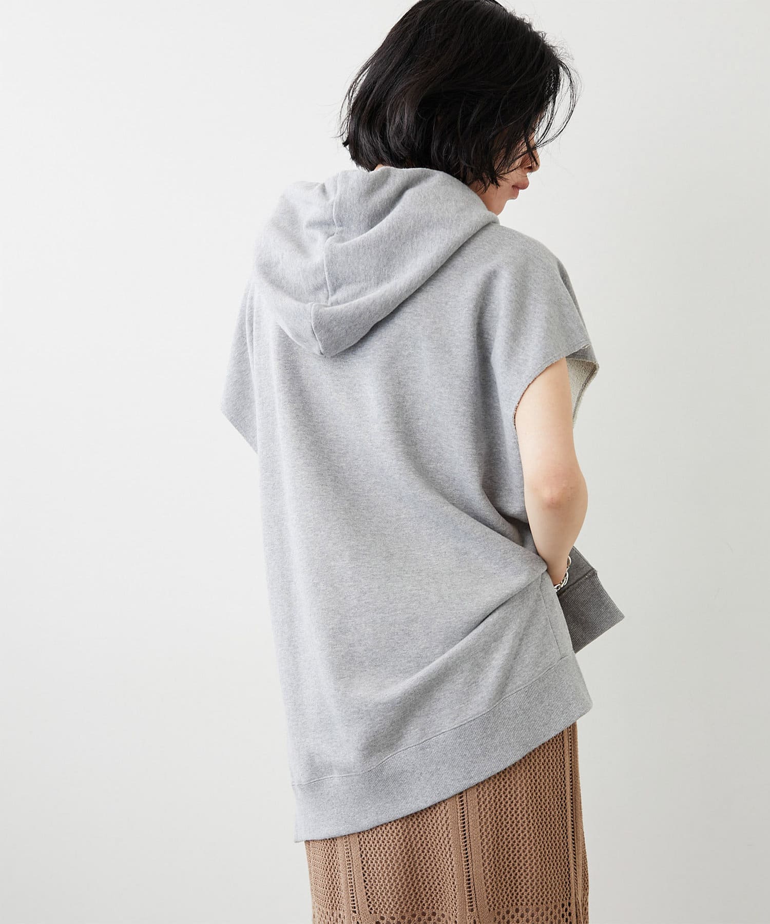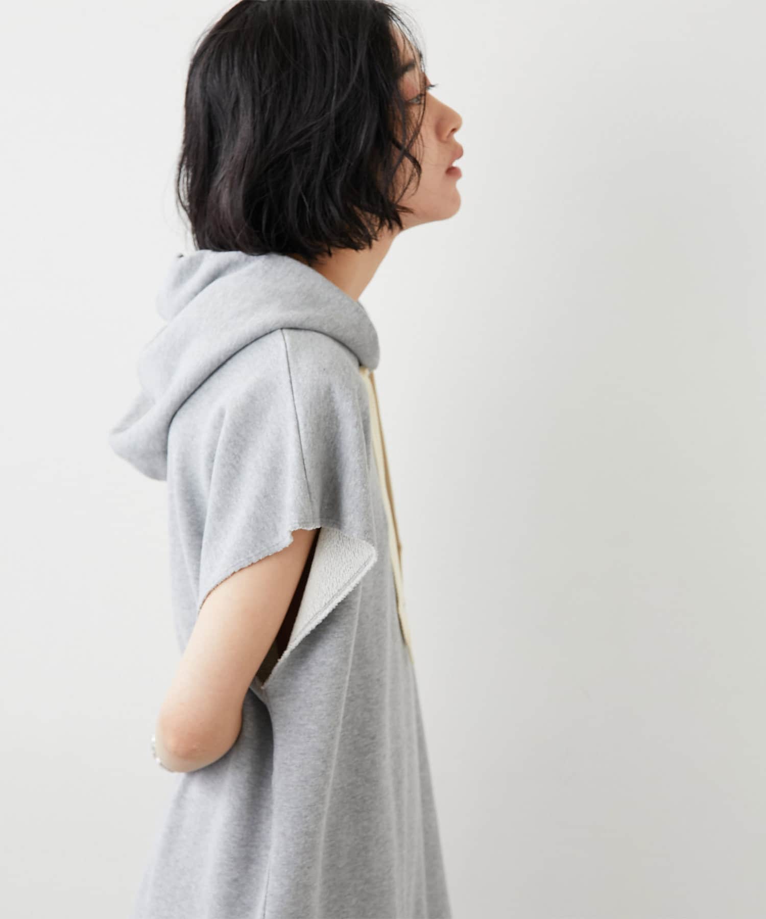 シーズンの変わり目にも着こなしやすいフレンチスリーブのパーカー。