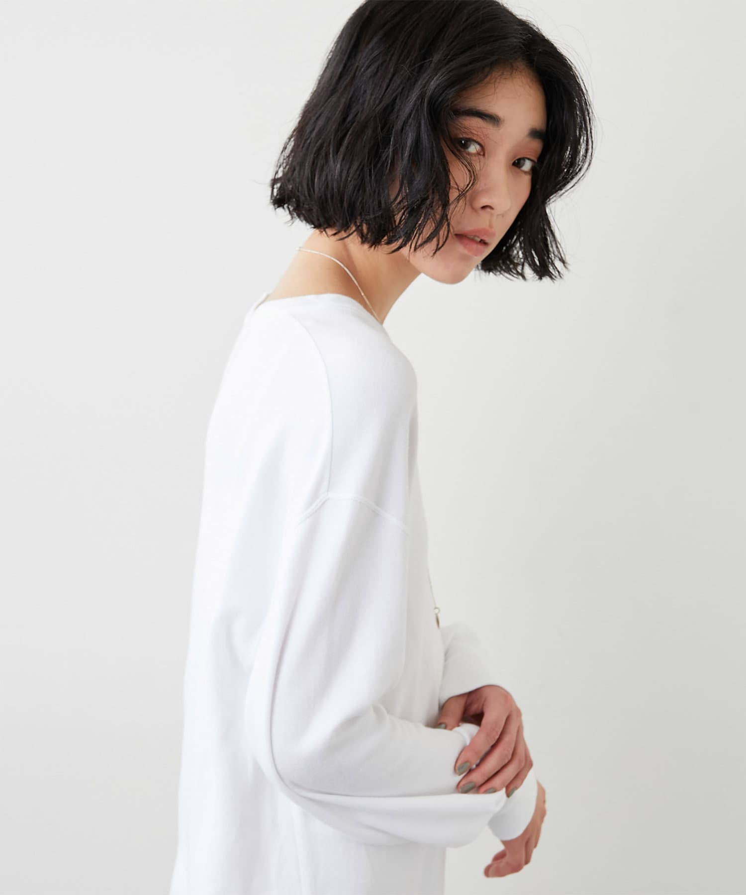 スカートでもパンツでも合わせやすい着丈やバランス感にこだわり、デイリーコーデにぴったりな着回せるカットソーです。