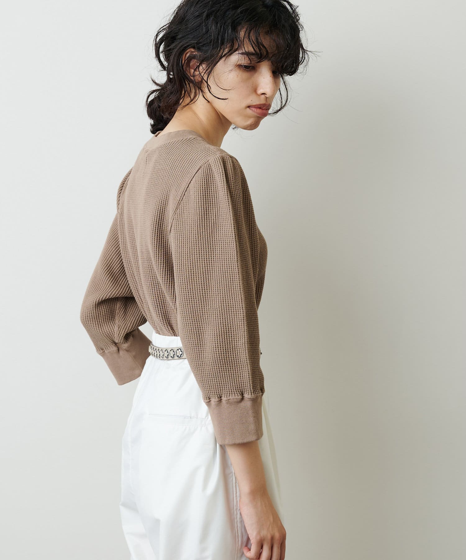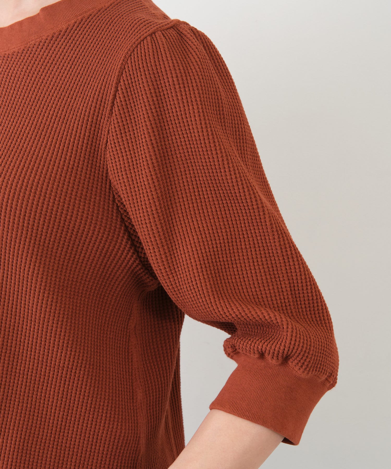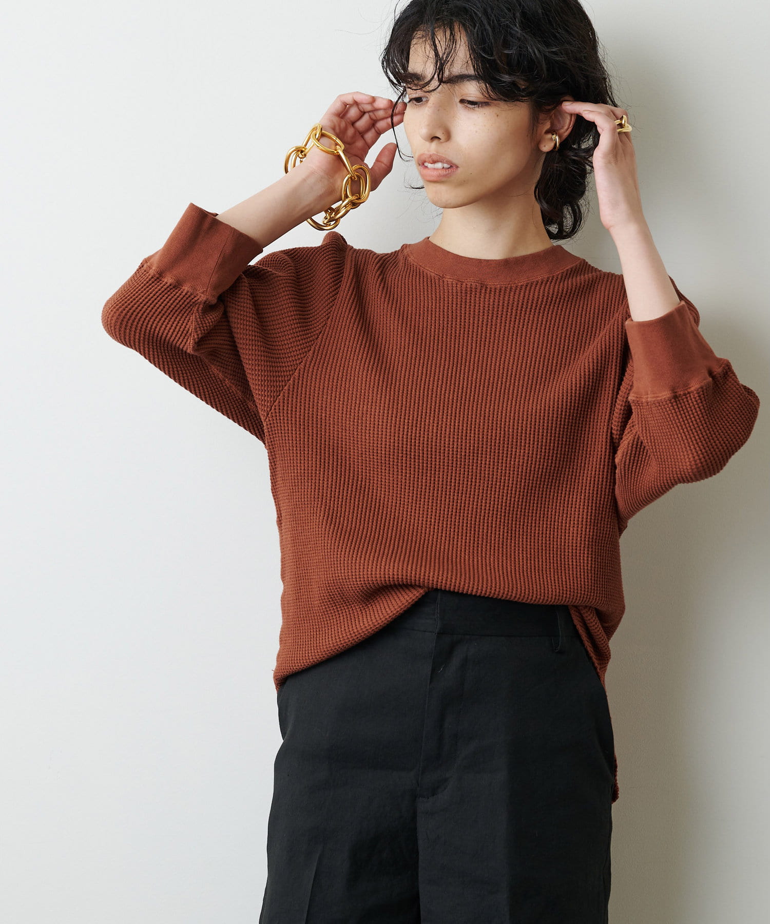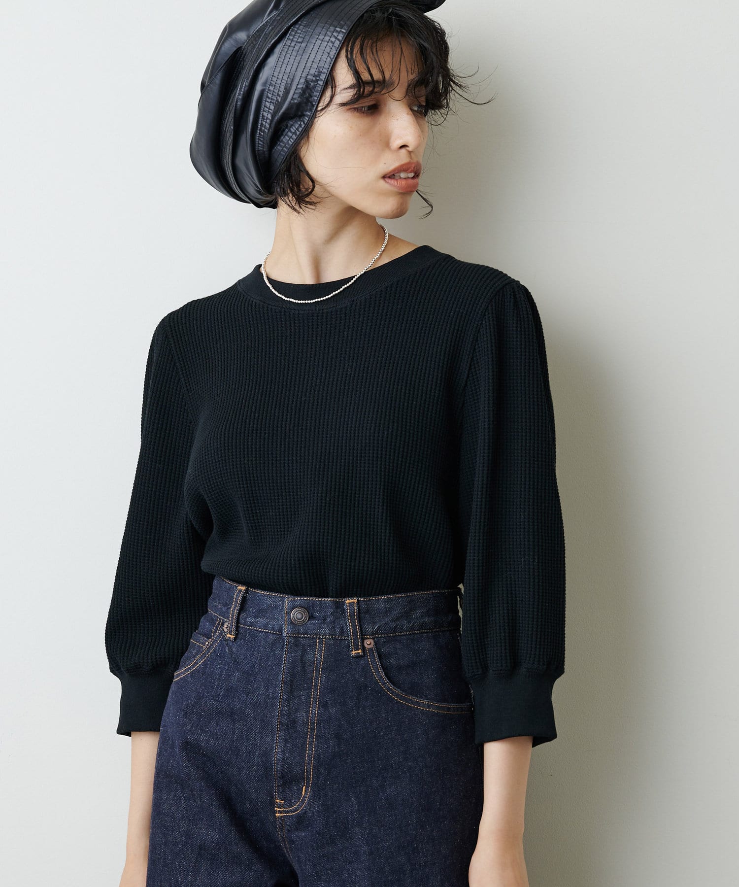使い勝手の良いシンプルさがうれしいワッフル素材のカットソー。