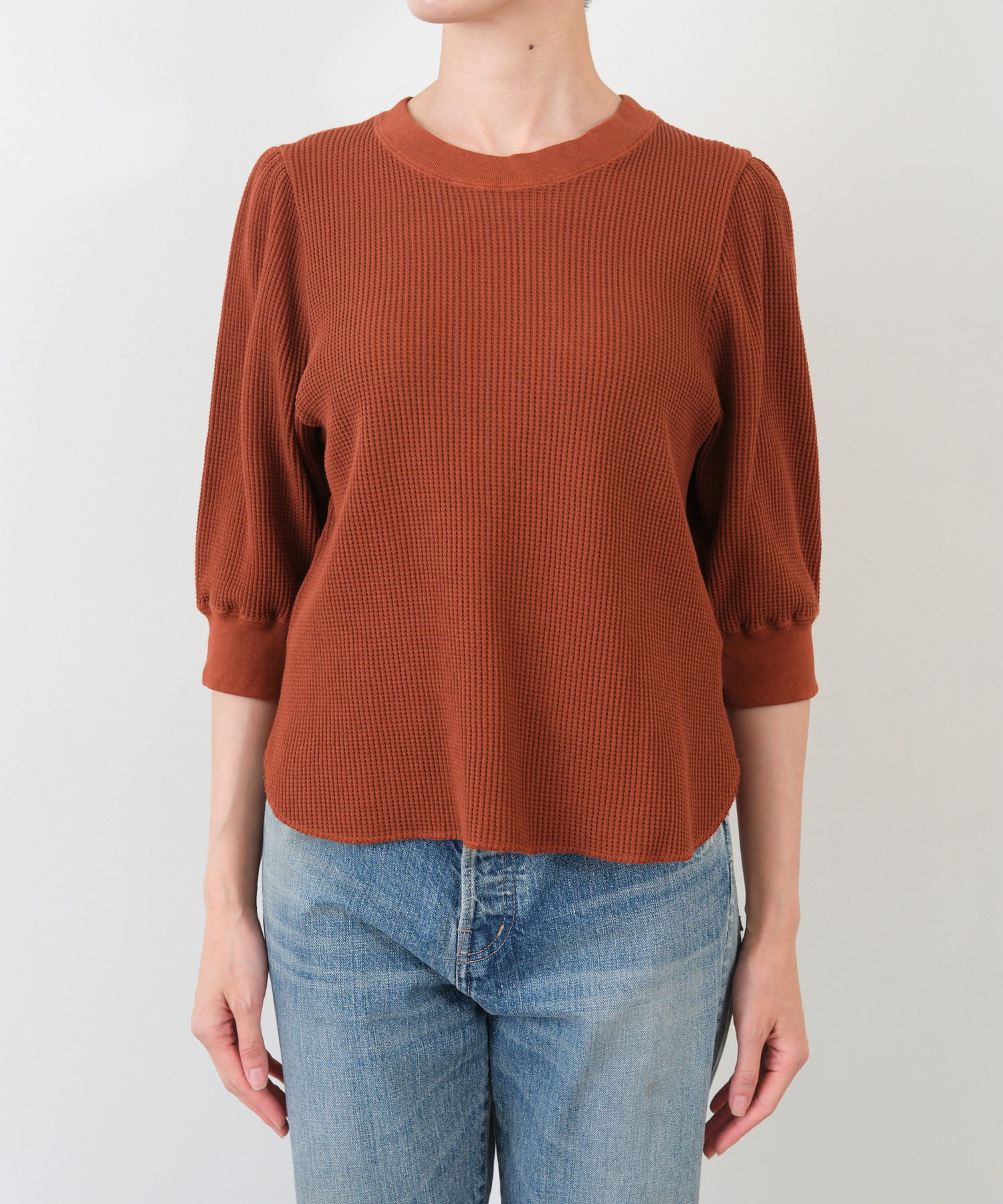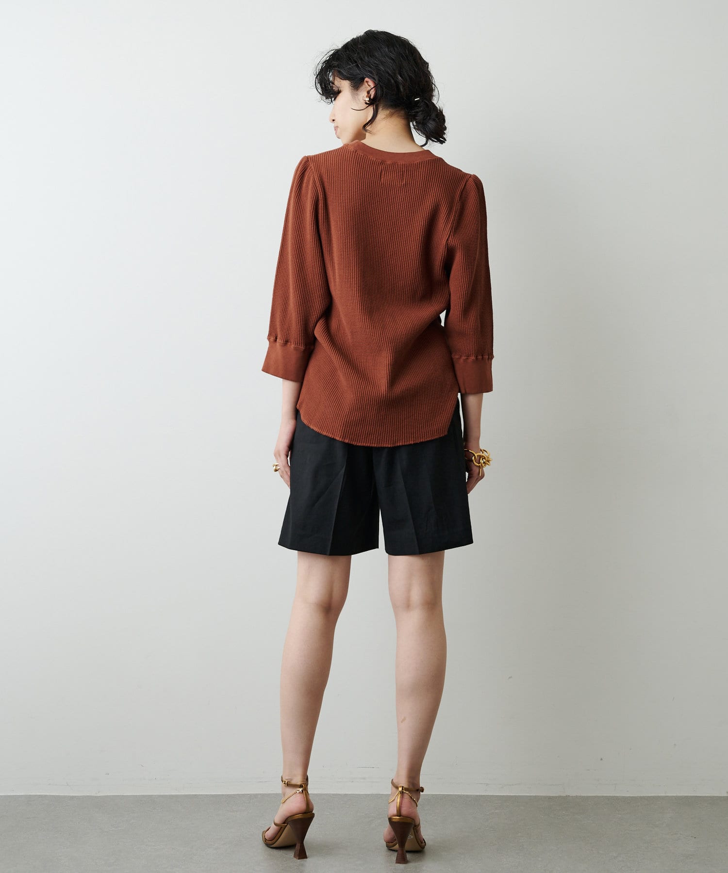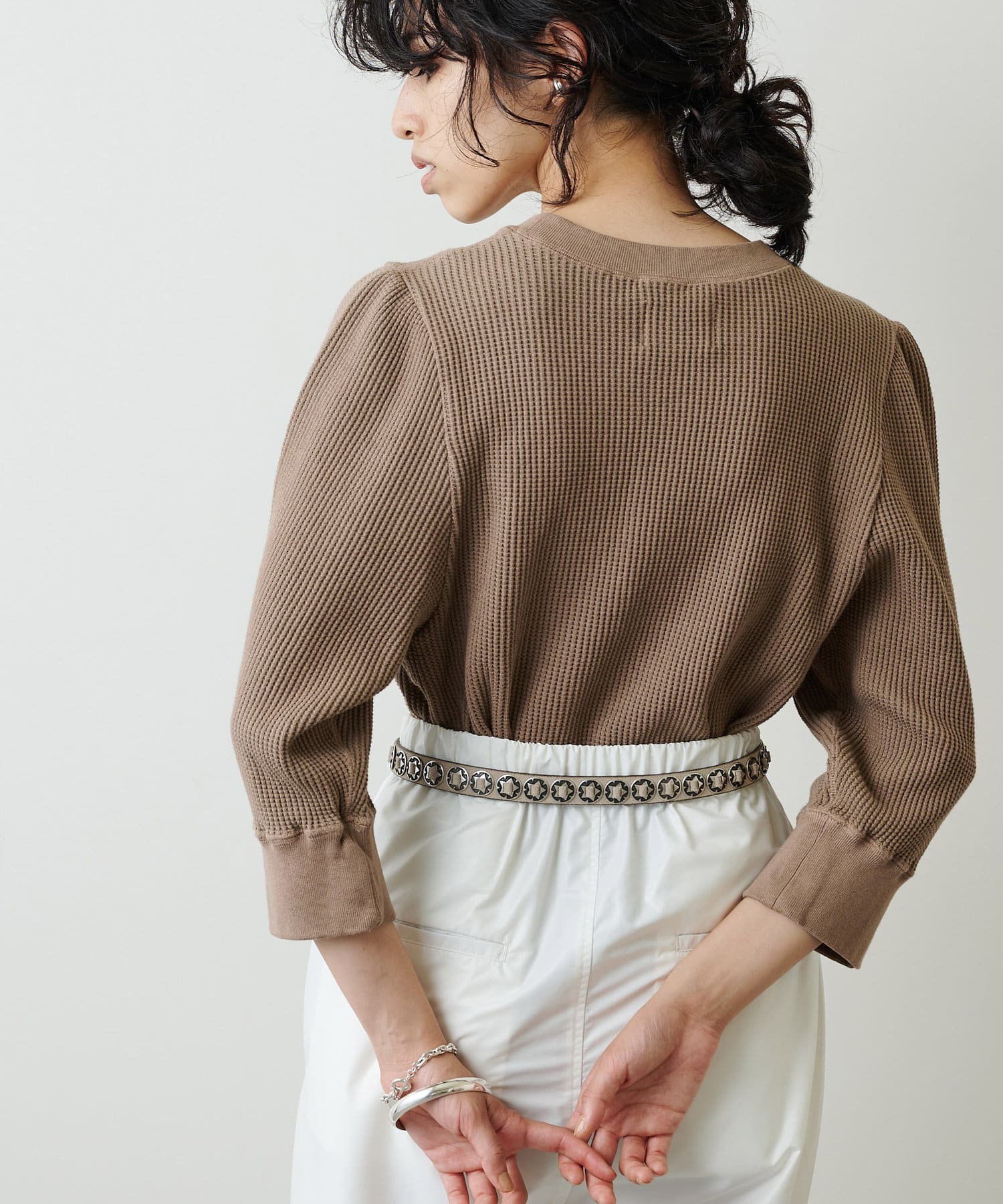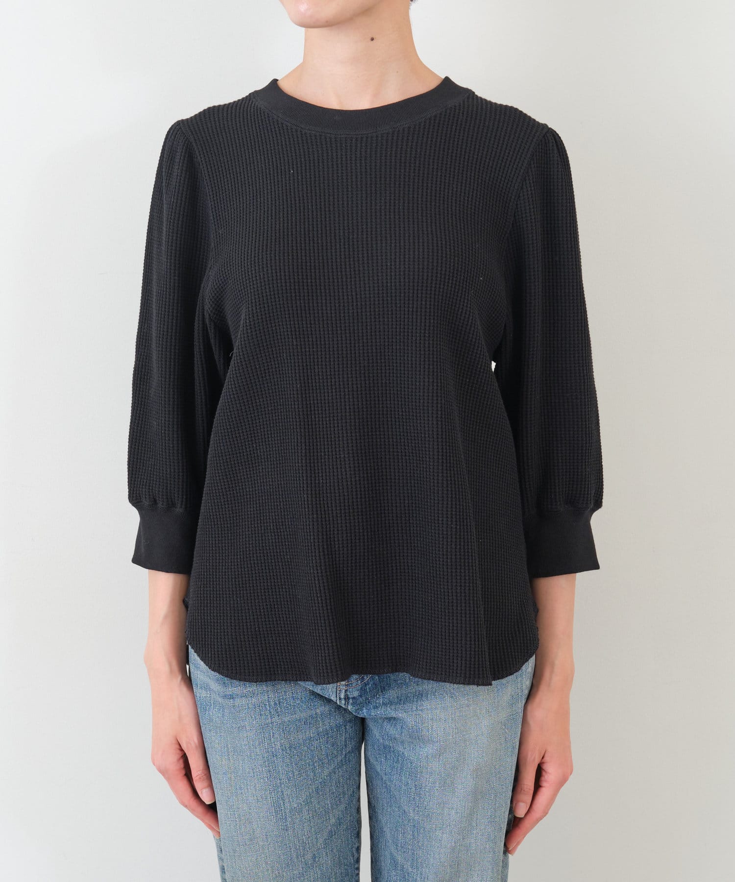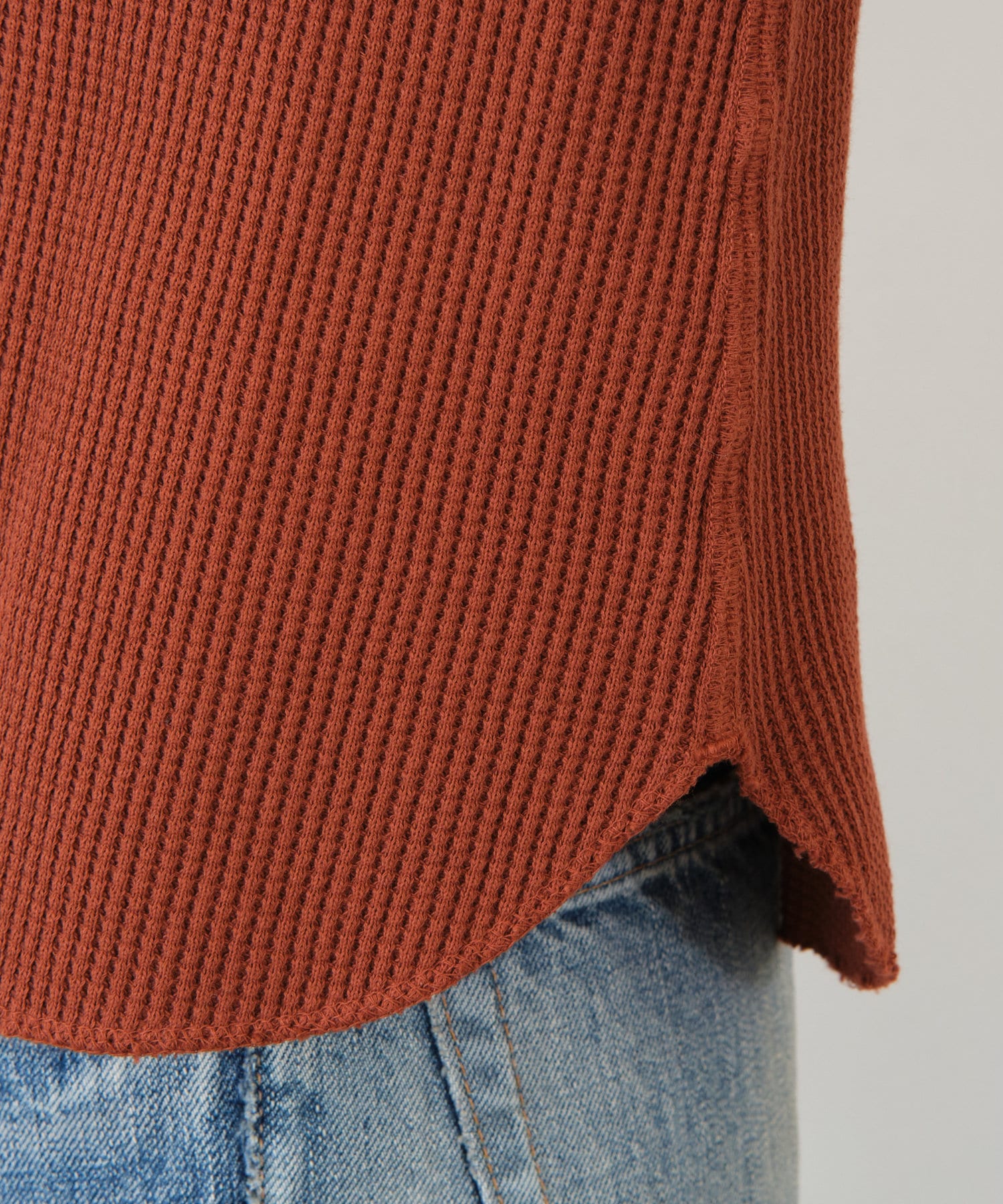 使い勝手の良いシンプルさがうれしいワッフル素材のカットソー。