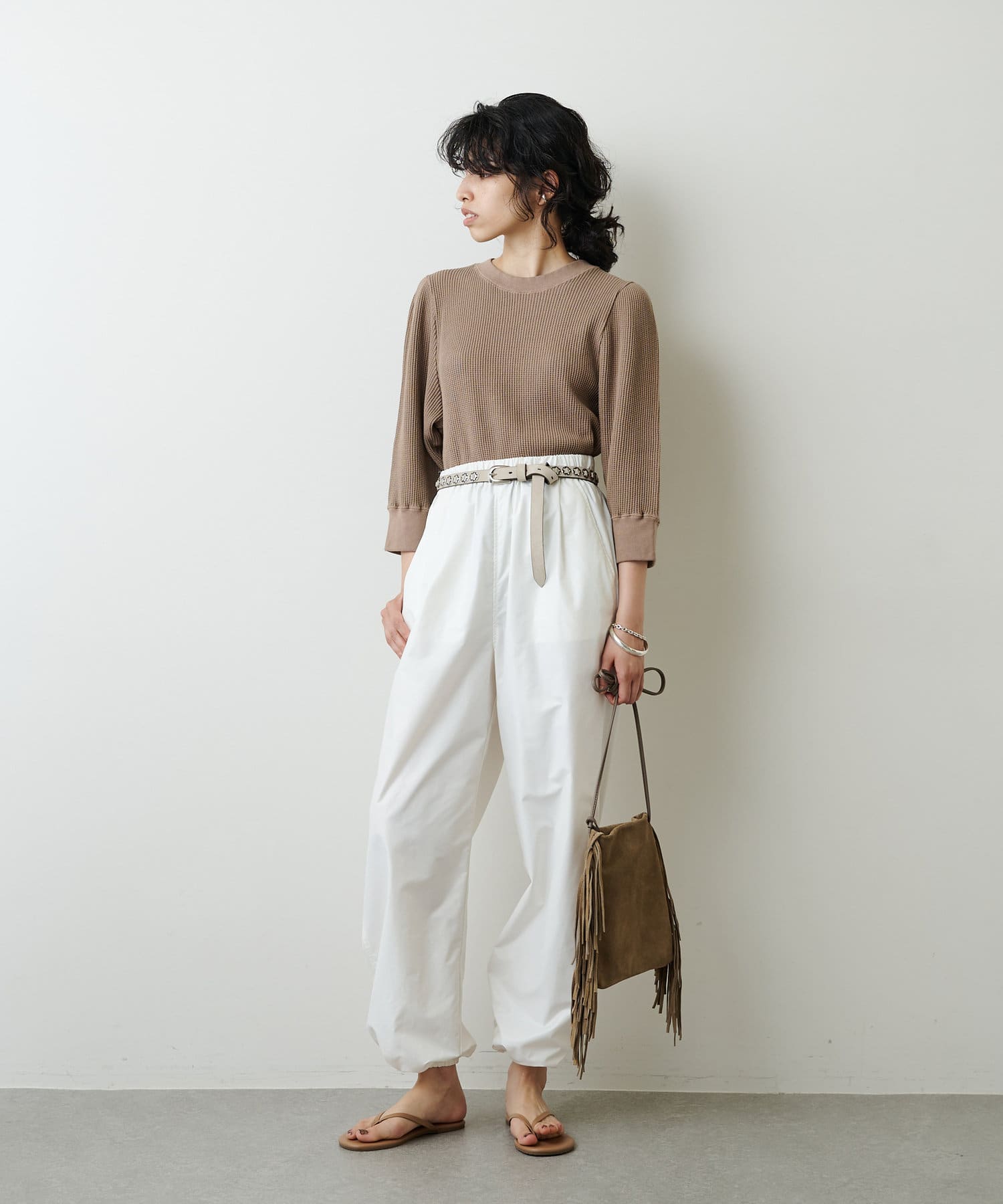 コンパクトな丈感がトップスインでもアウトでもバランス良く着こなせ、様々なコーディネートをお楽しみいただけます。