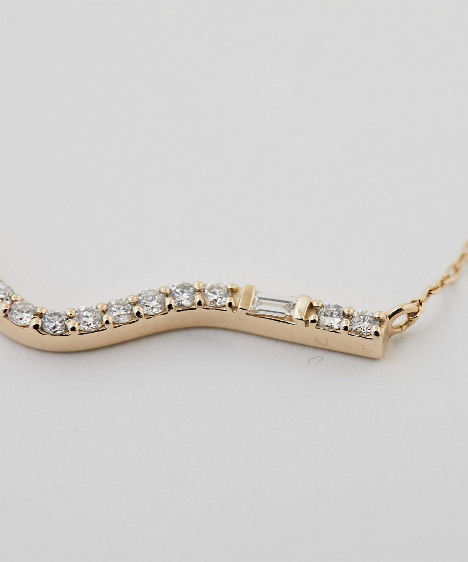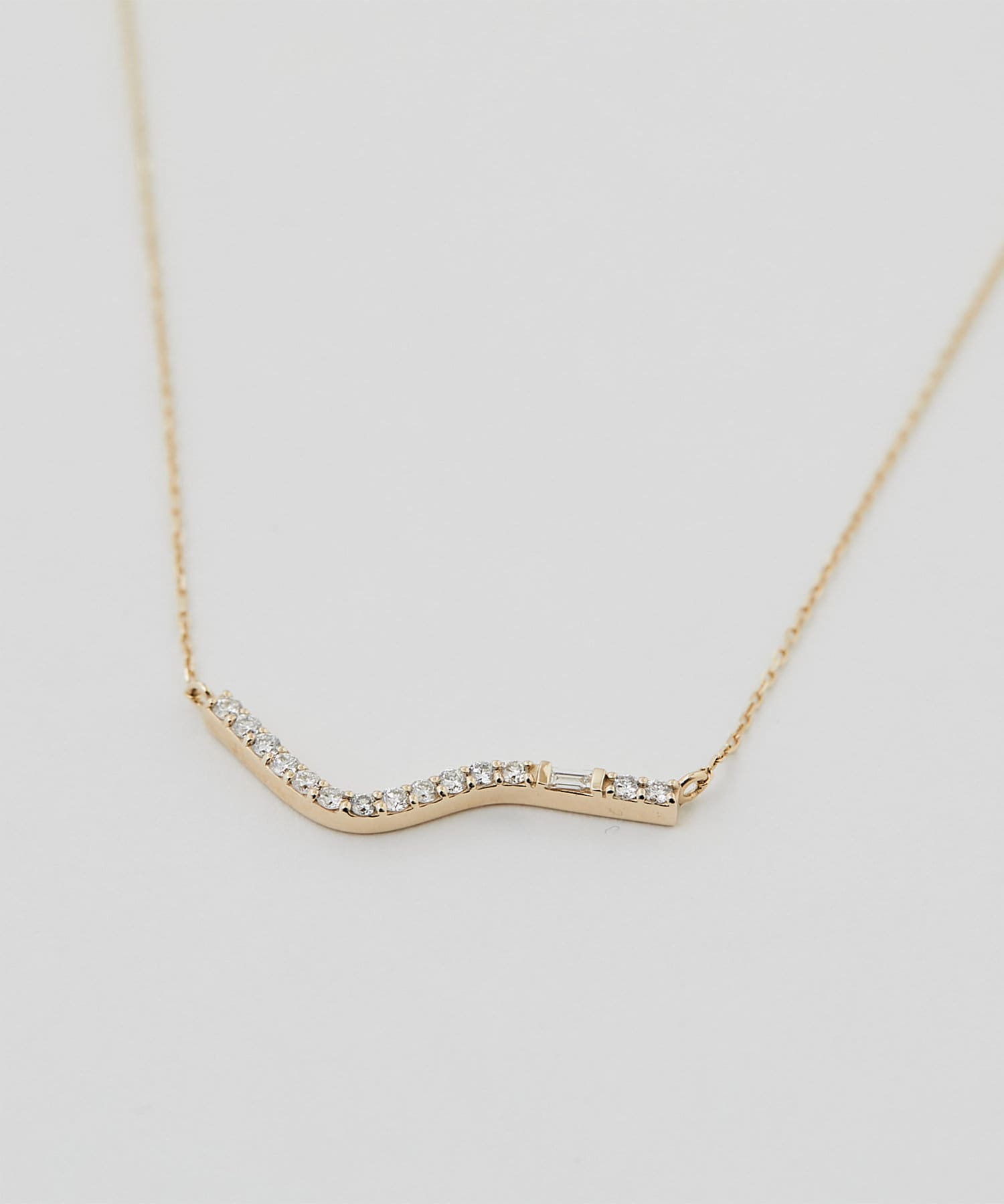風に見立てた心地よいカーブを描いたユニークなフォルムに、ダイヤモンドを贅沢にあしらったロングチェーンネックレス。