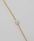 動くたびに揺れる華奢なロングチェーンと、上品にあしらわれたベゼルセッティングの一粒ダイヤモンドが、繊細な女性らしさを演出するピアス。
