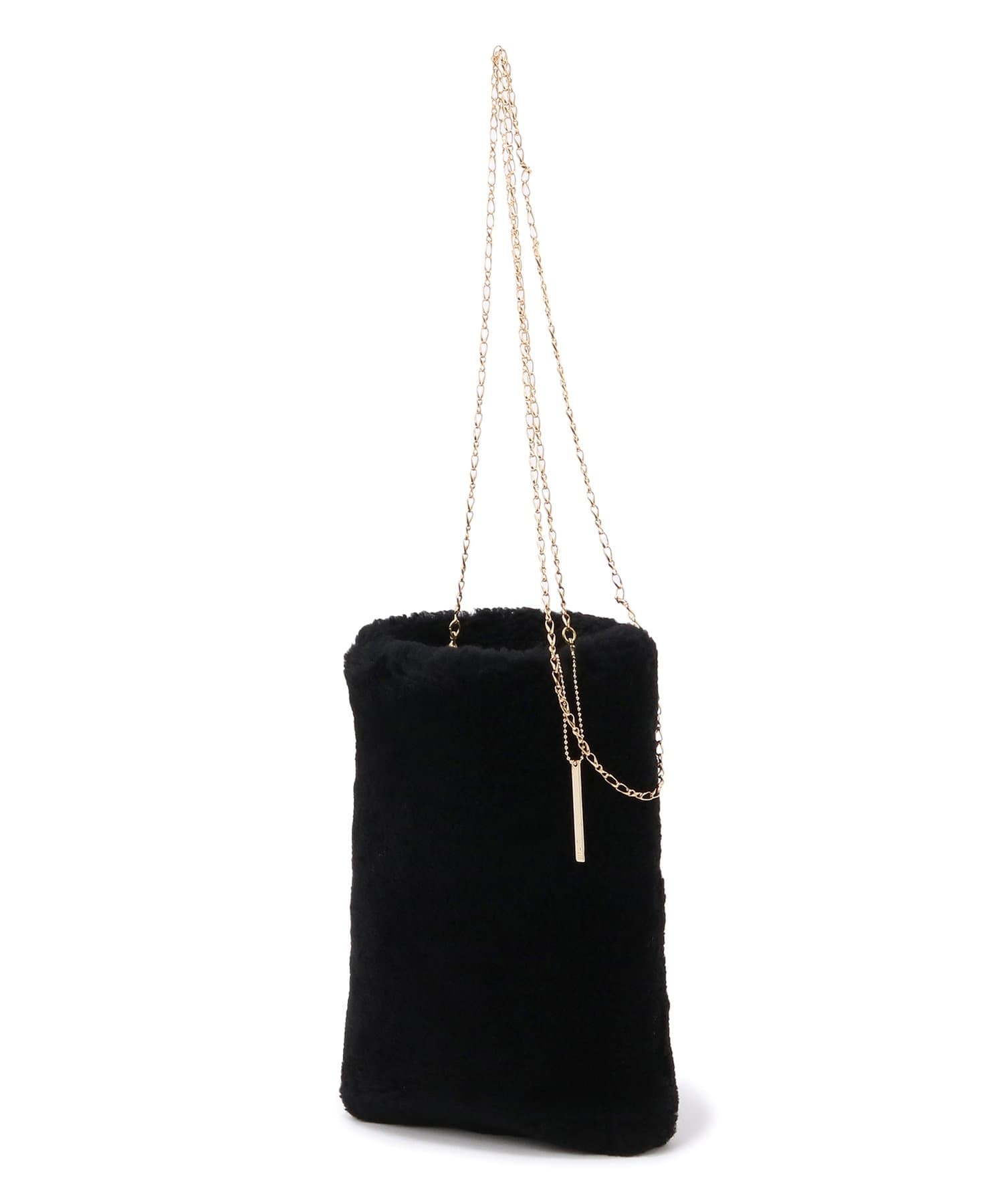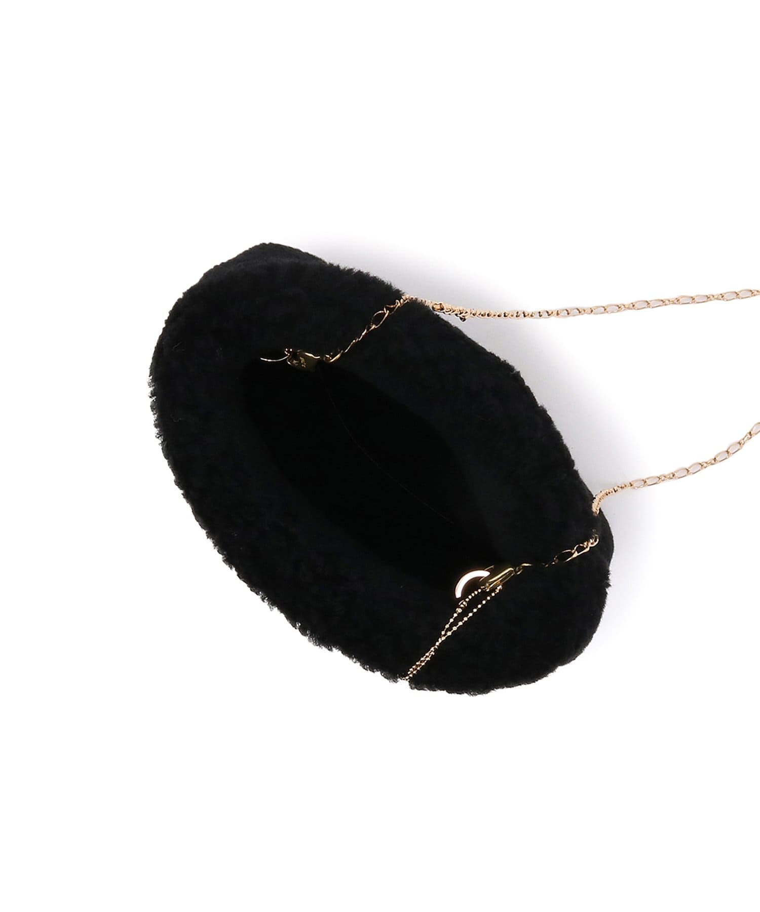 ムートン素材の風合いがポイントになったチェーンミニバッグ。