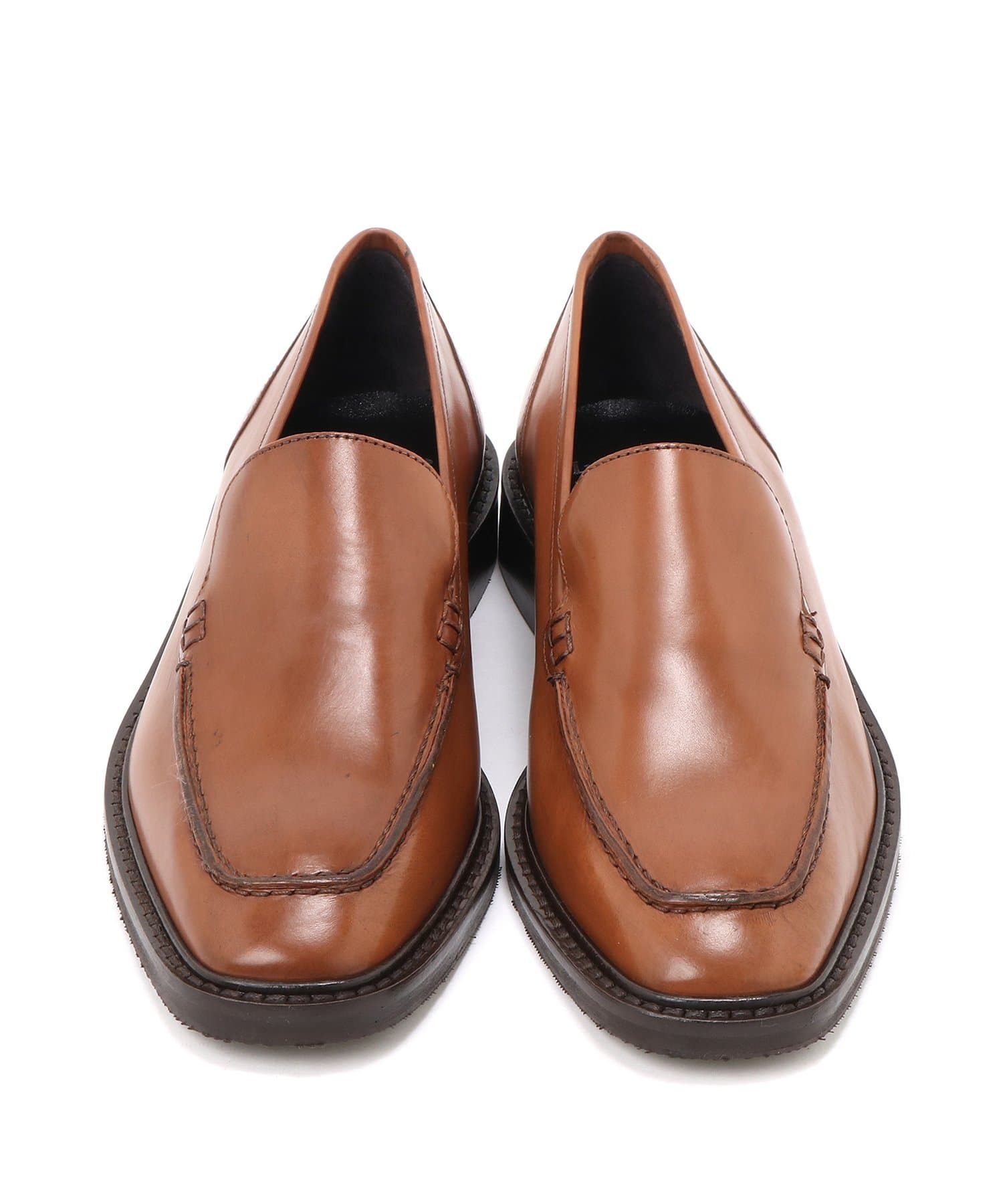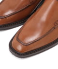 ツヤのある上質なカーフレザーと、足元に彩りをプラスする明るめのキャメルカラーが品のある一足で、トレンドを取り入れたスクエアトゥのデザインがミニマルなディテールに映え、洗練された印象をプラスしてくれます。