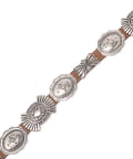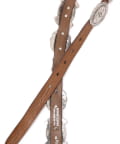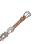 柔らかなレザー素材のベルトに、おおぶりなコンチョをあしらったデザイン。