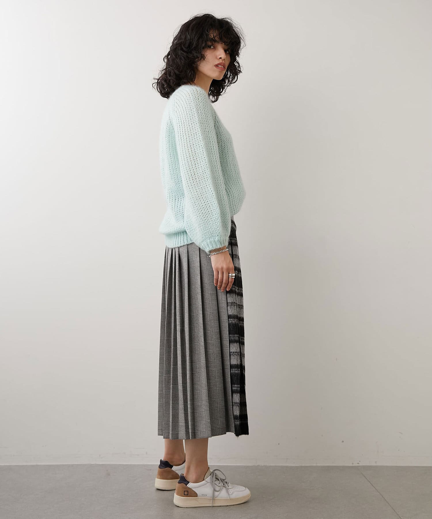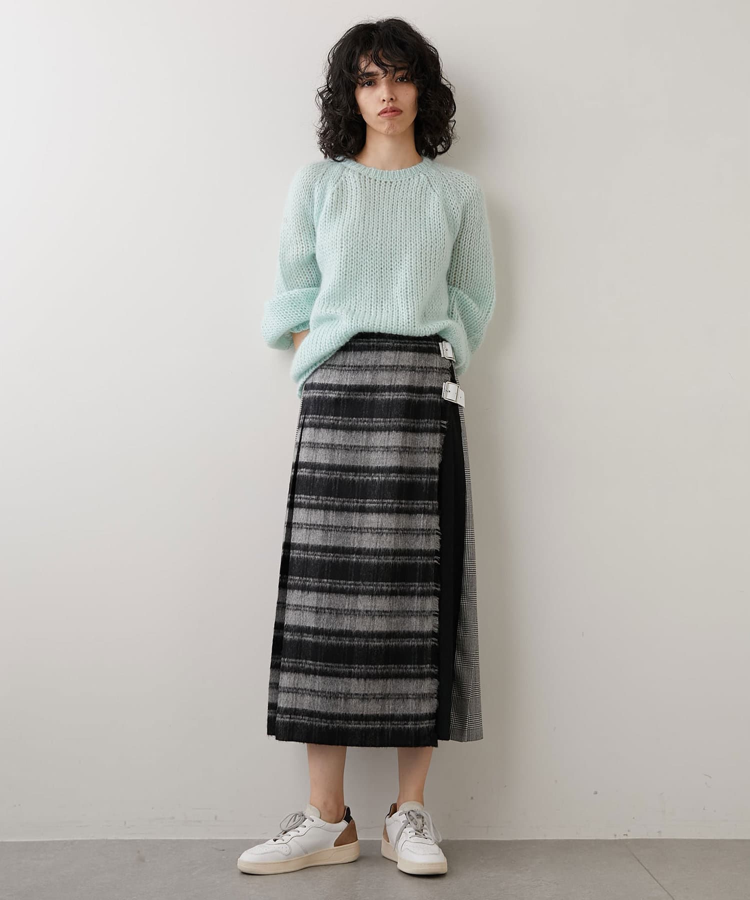 一枚で様になるデザインなので、シンプルなトップスと合わせてスカートを主役にしたスタイリングがおすすめ。