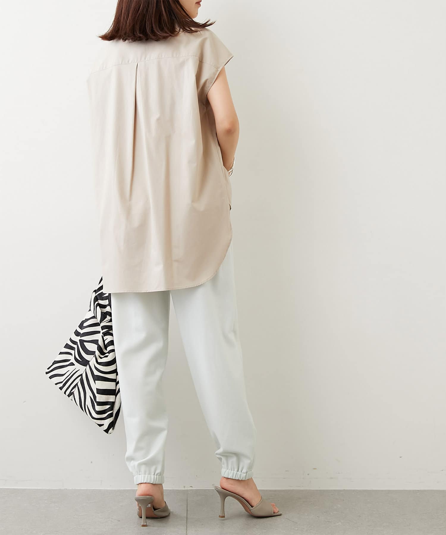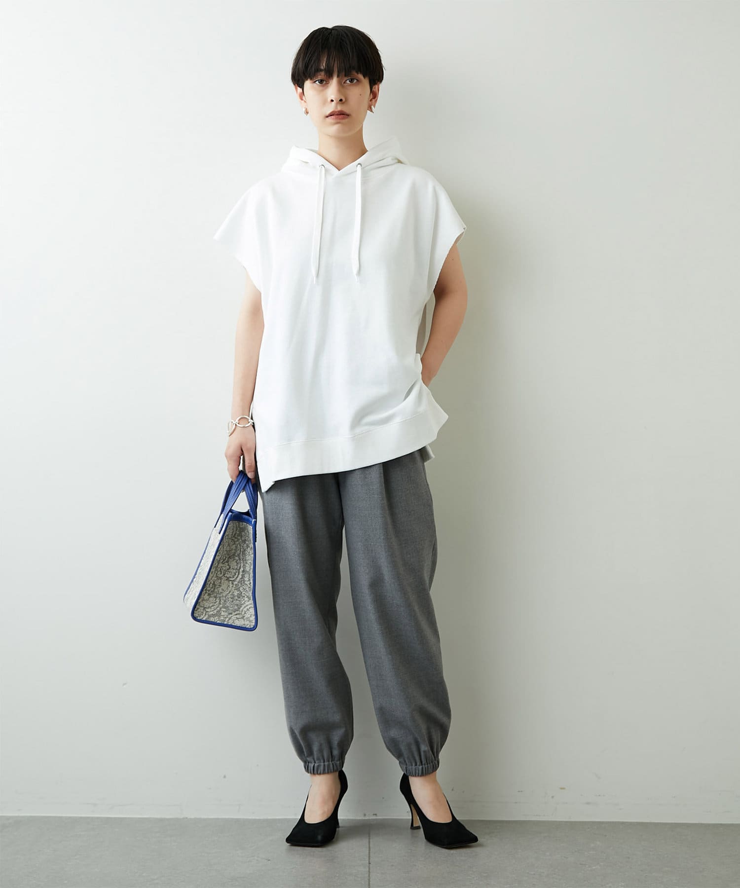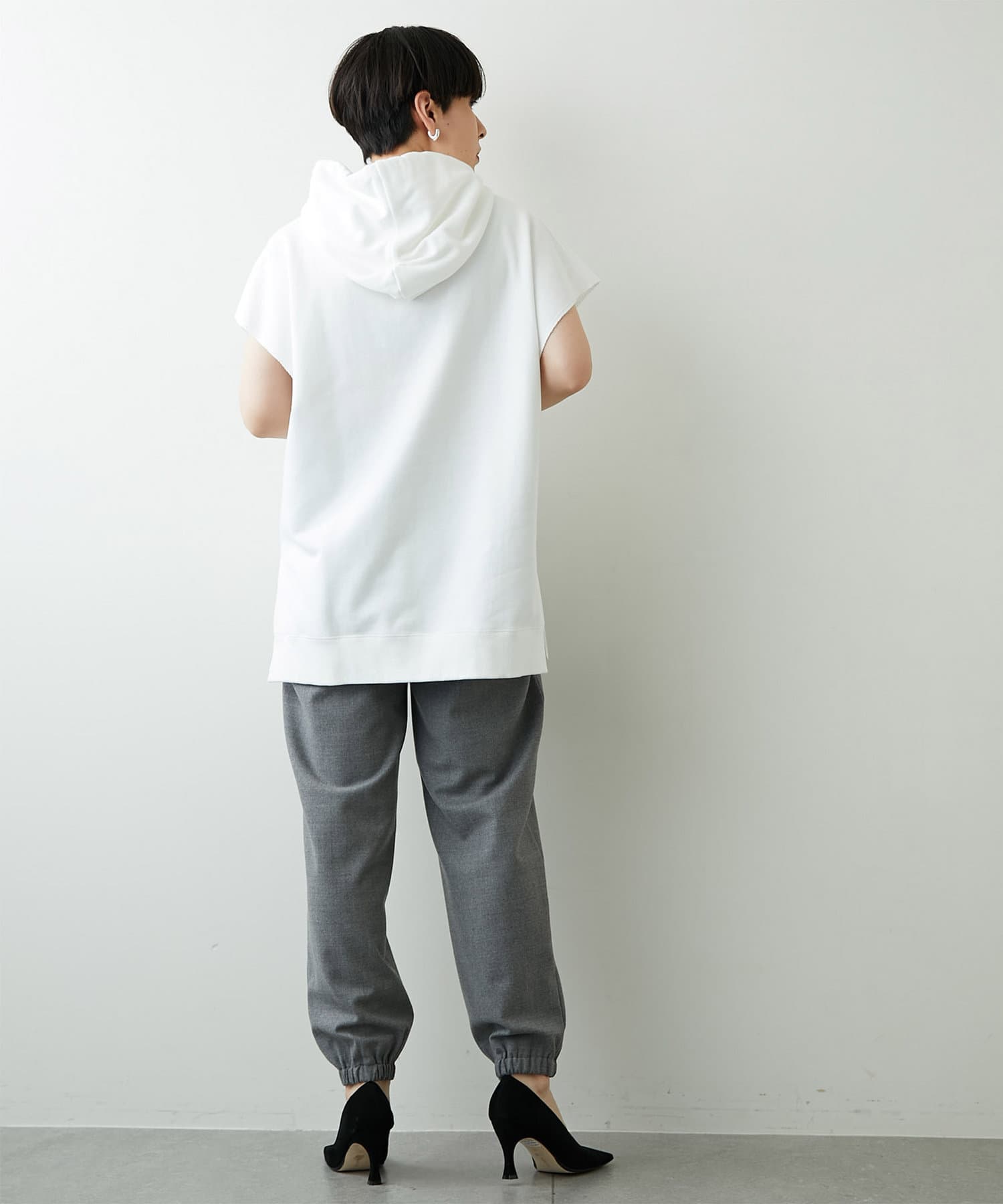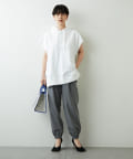 太めのゴムできゅっと絞られた裾のディテールが、足首を華奢に見せてシルエットにメリハリをつけてくれます。