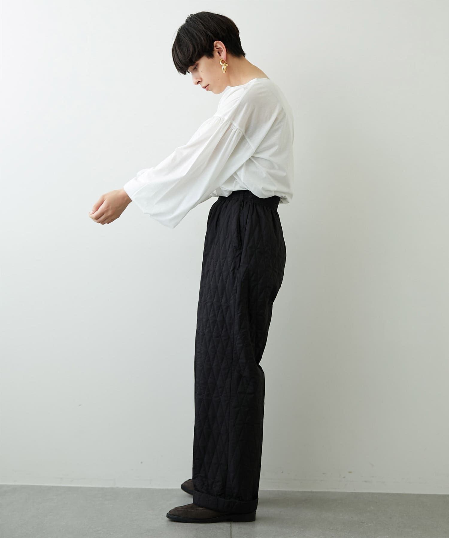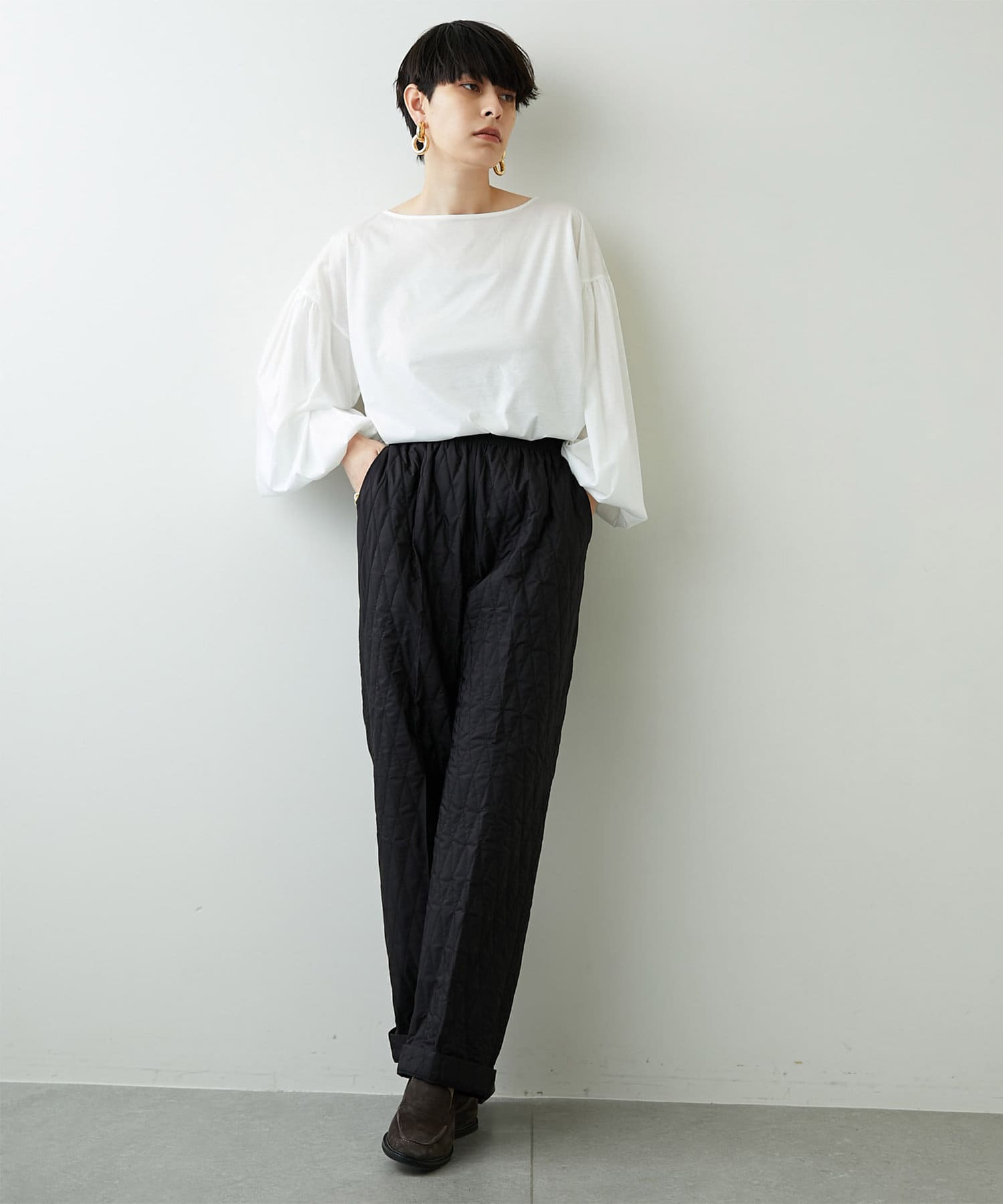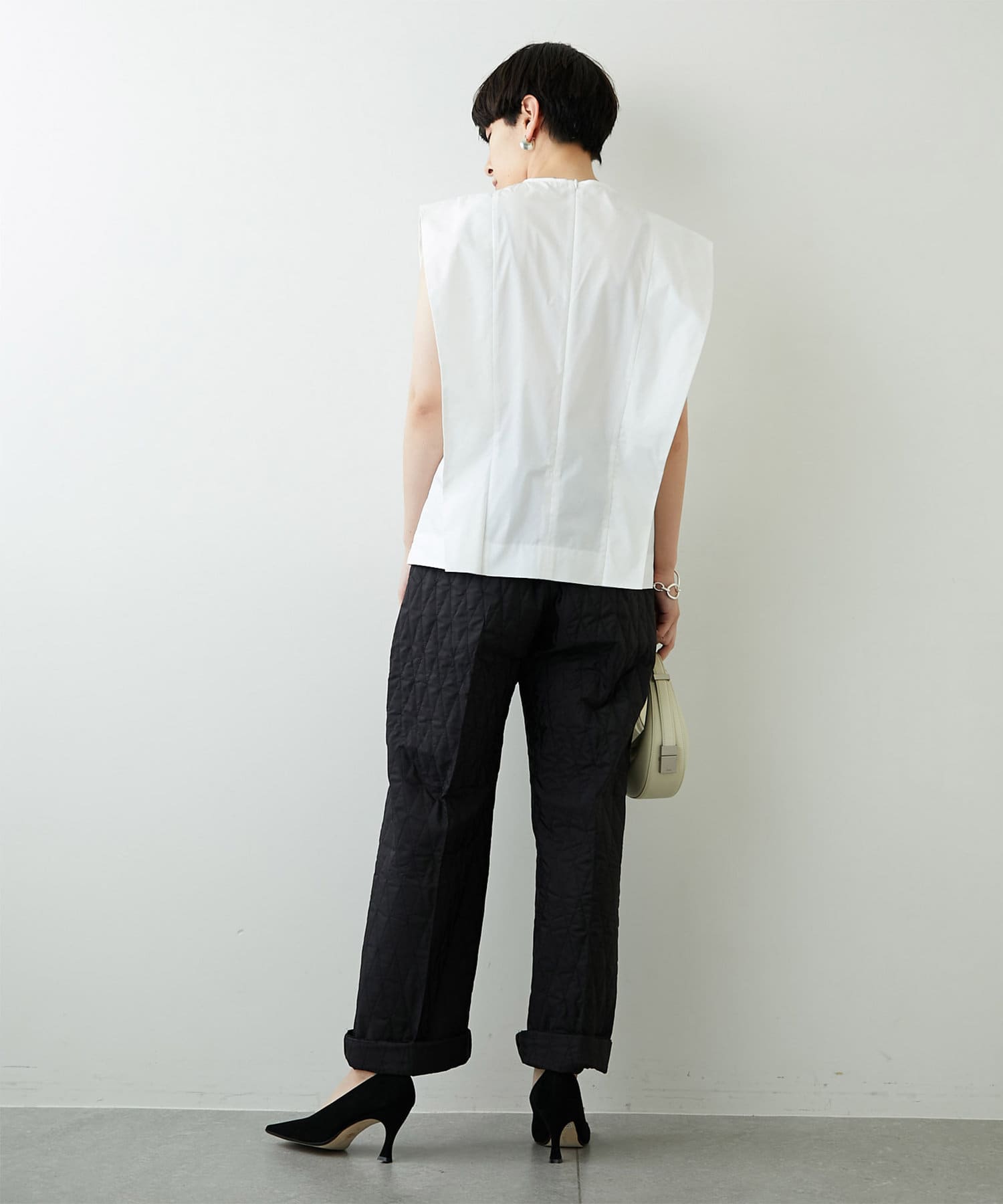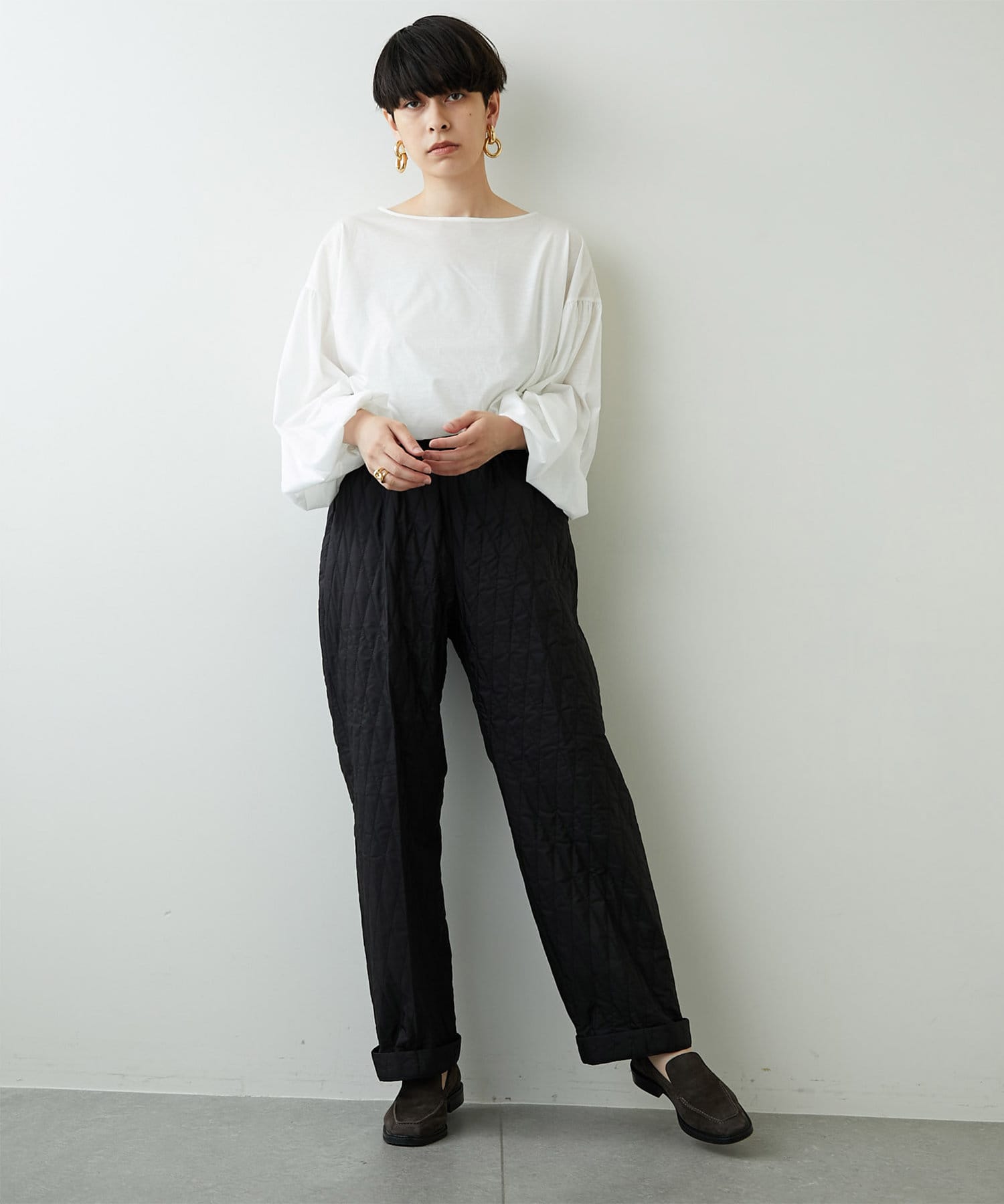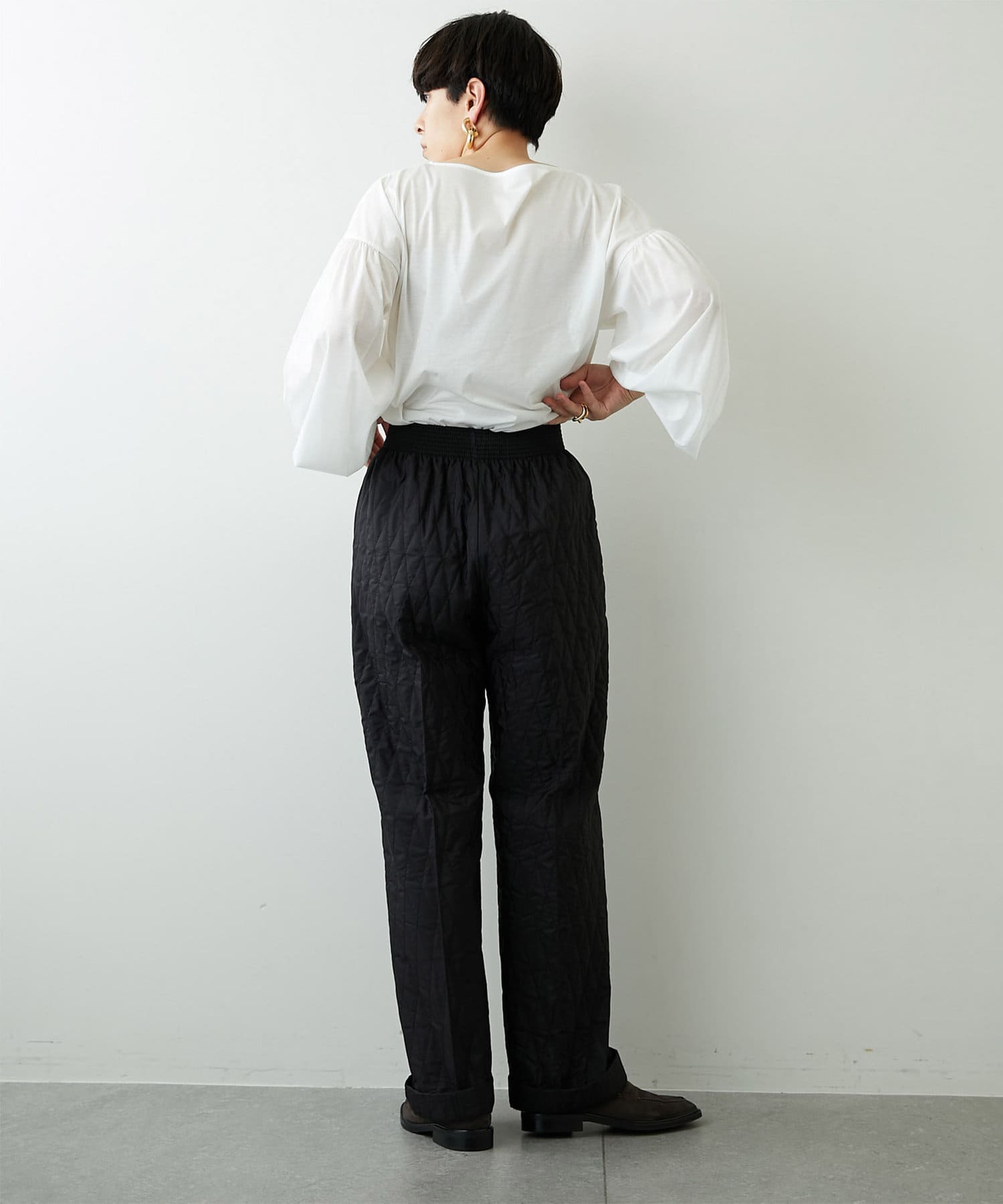 カジュアルな印象のキルティングも、センタープレスを入れることでスタイリッシュな大人の印象に仕上がっています。