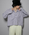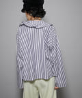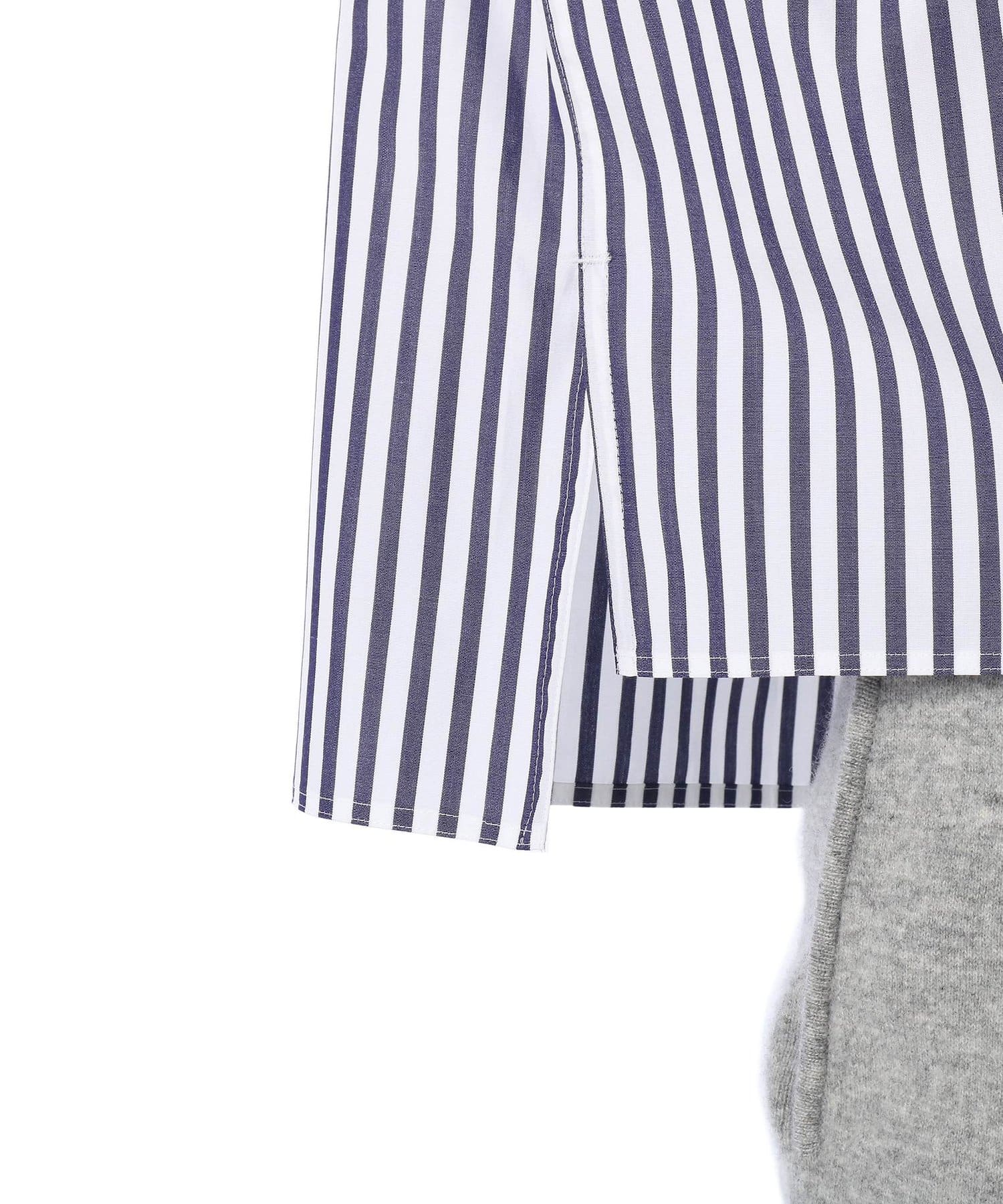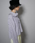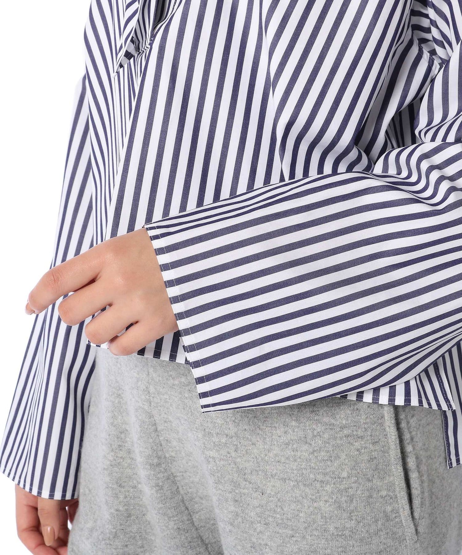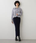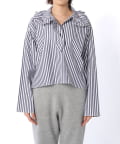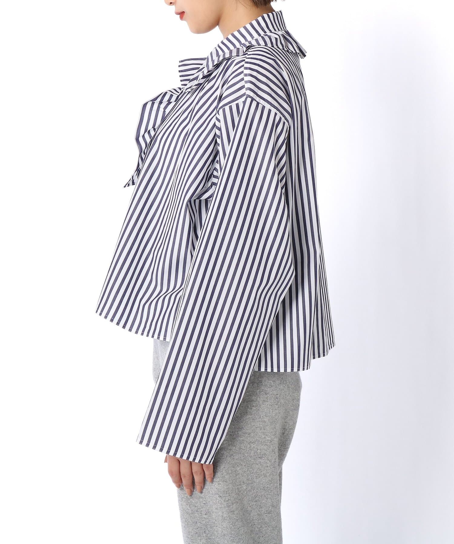 ネイビーカラーのストライプとハリ感のあるシャツ地が、フリルディテールの甘さを抑え大人のバランスに。