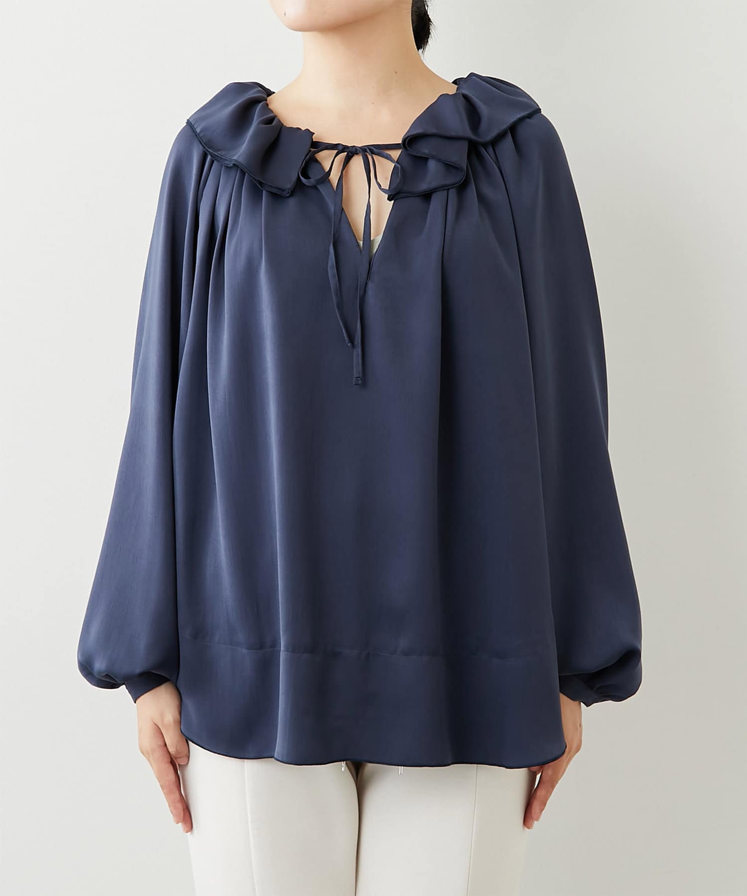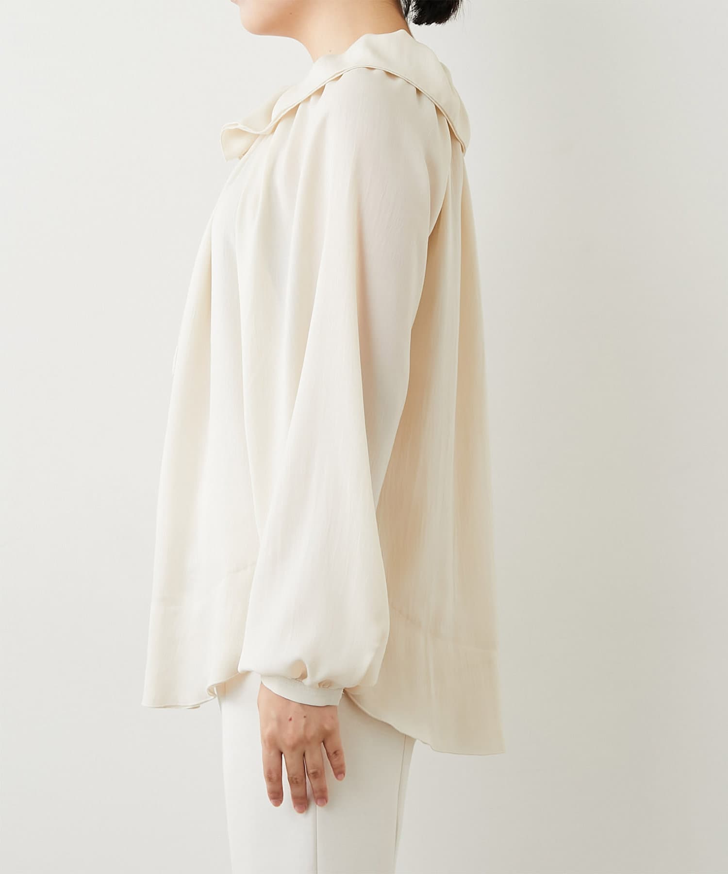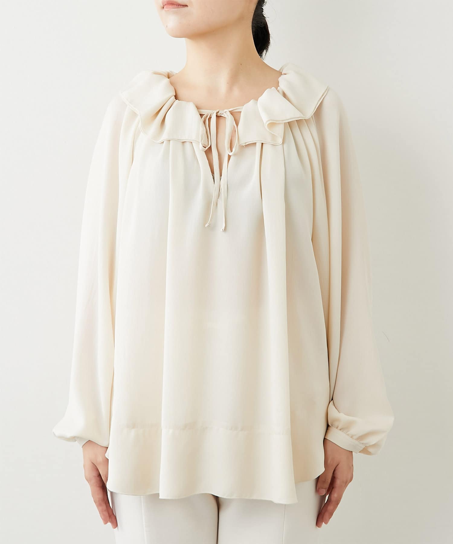 ボリューム感のあるフリルカラーが目を惹くブラウス。
