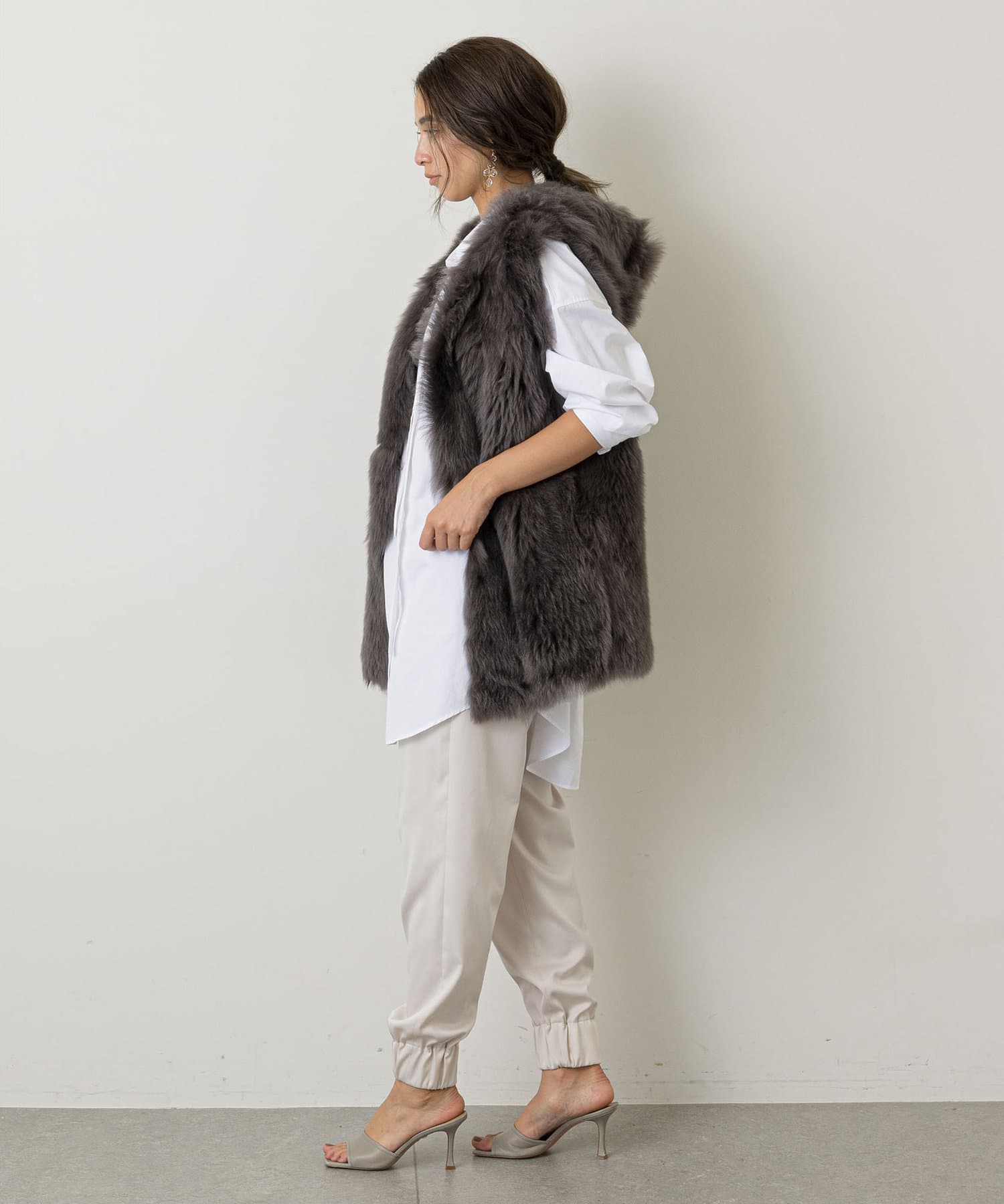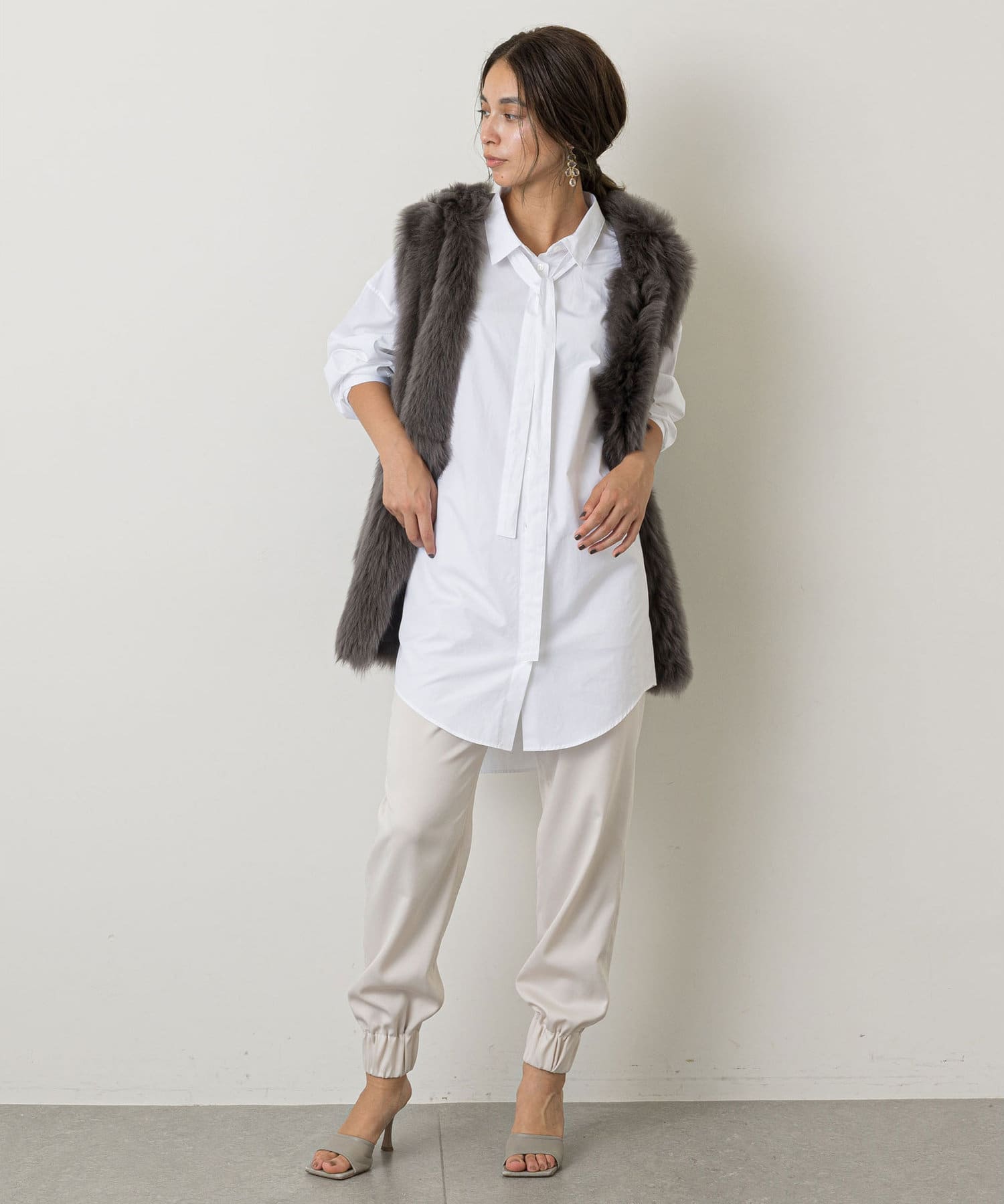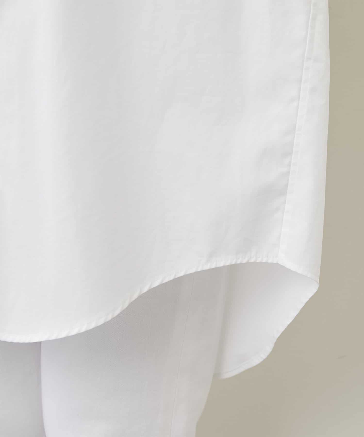 前後差のあるヘムラインでニットとのレイヤードスタイルにも最適で、オフィスシーンからデイリー使いまで楽しめる使い勝手の良いアイテムです。