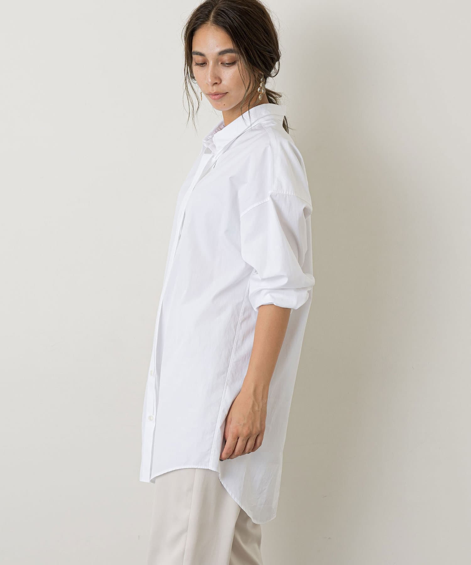 オーバーシルエットを活かしてメンズライクにたっぷりと着こなすのはもちろん、袖口をきゅっとたくし上げてこなれ感のある表情で着こなすのもおすすめ。