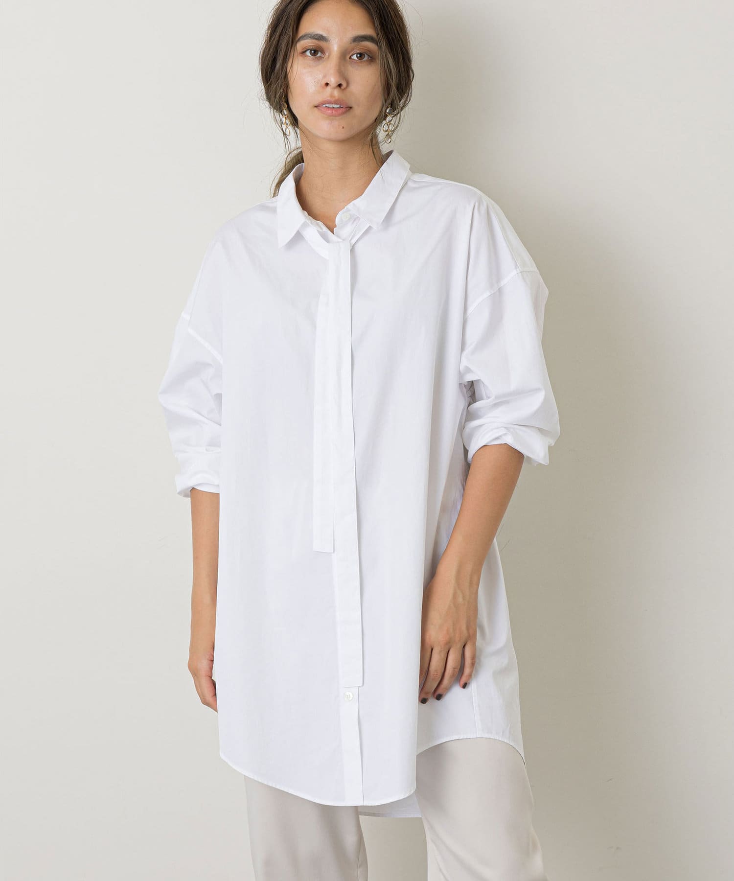 上質な生地感が際立つマニッシュなタイ付きシャツ