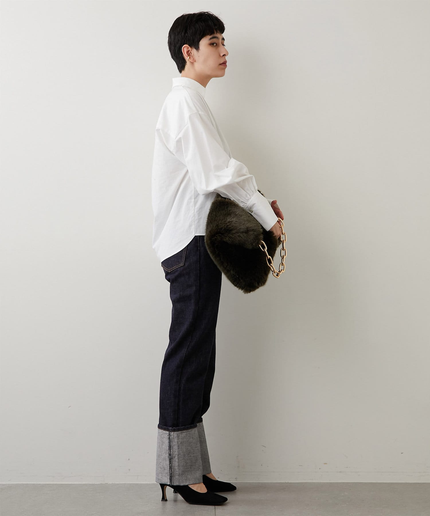 短めで前後差のある着丈が様々なボトムと好バランスで、合わせるアイテムによってモードな着こなしからきれいめなオフィススタイルまで幅広くお楽しみいただけます。
