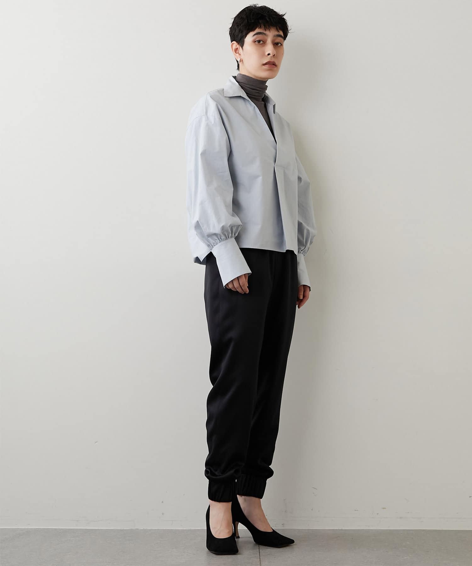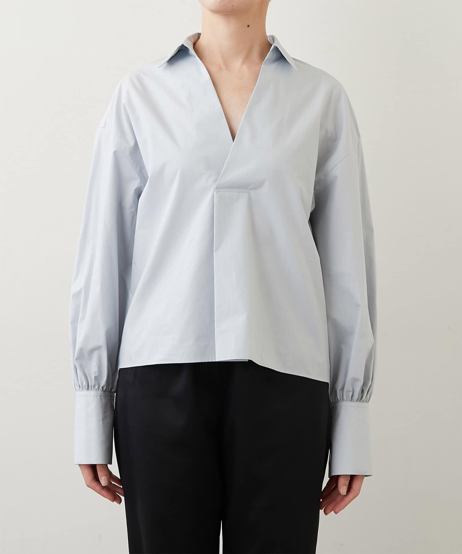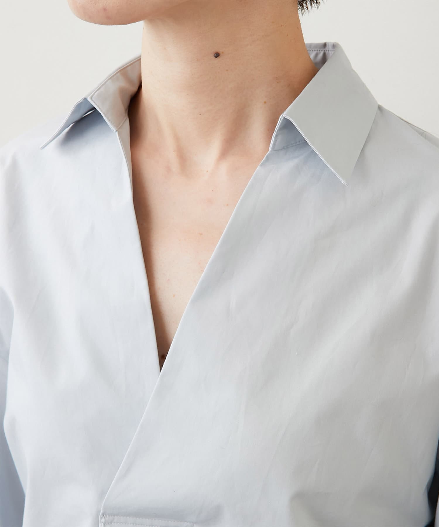 コンパクトな着丈が新鮮な見え感のスキッパーシャツブラウス。