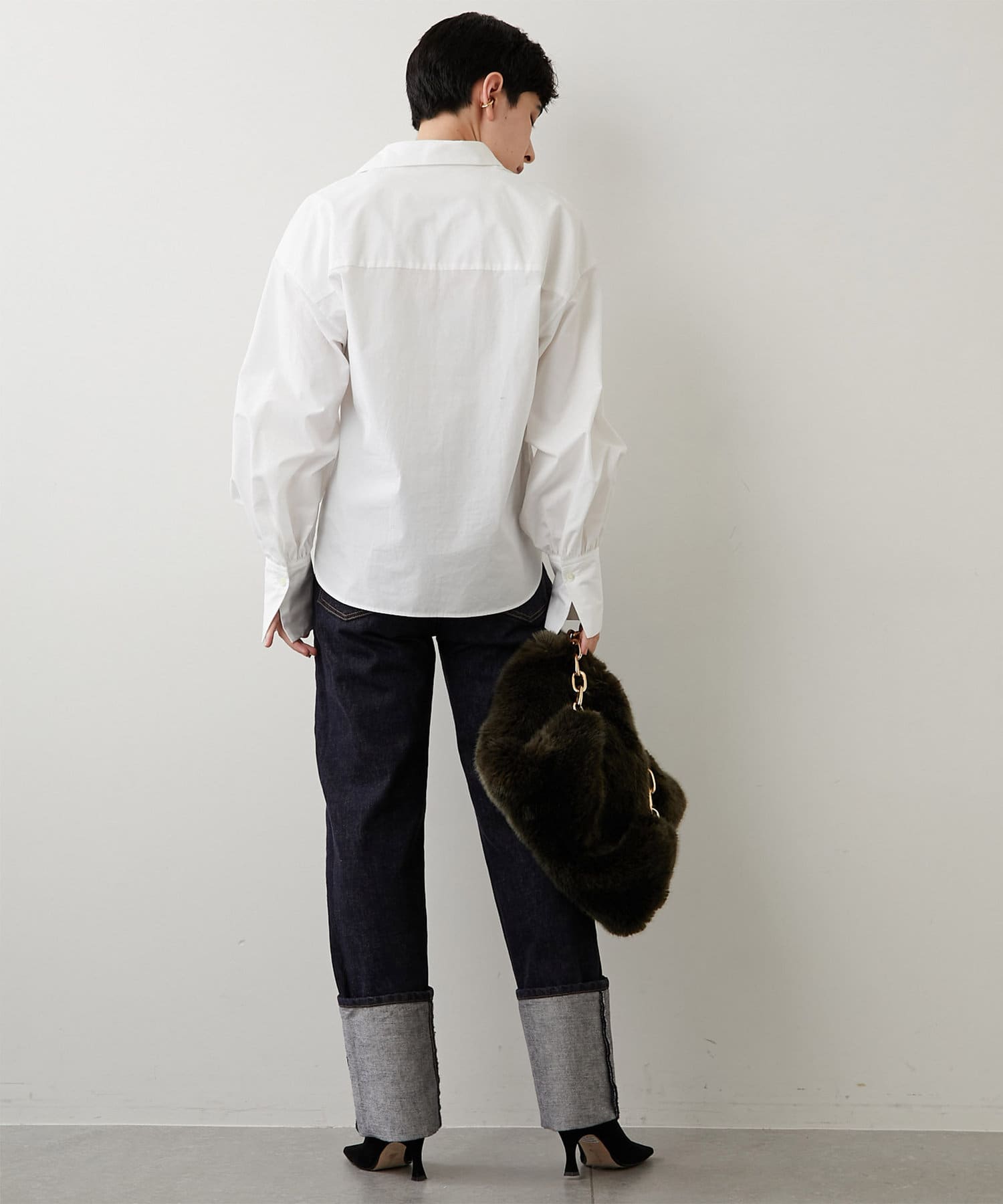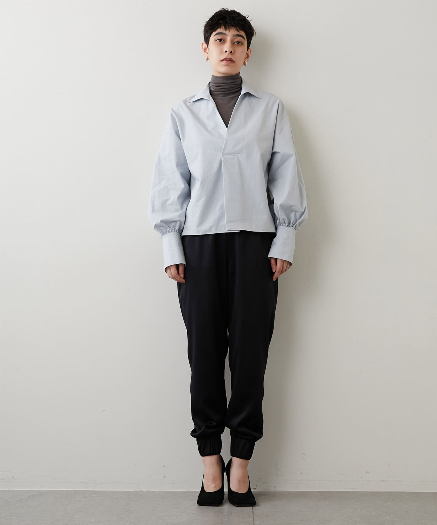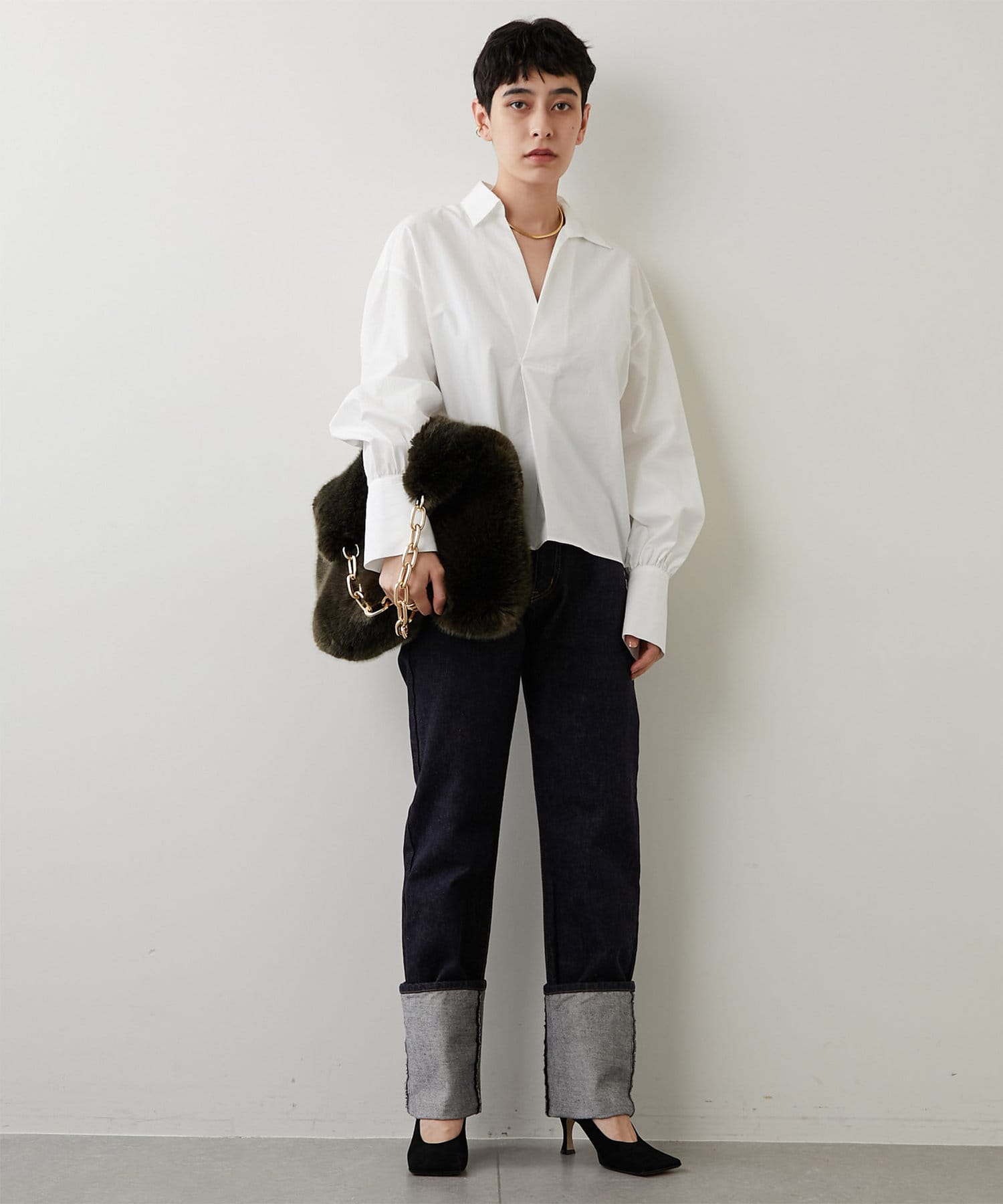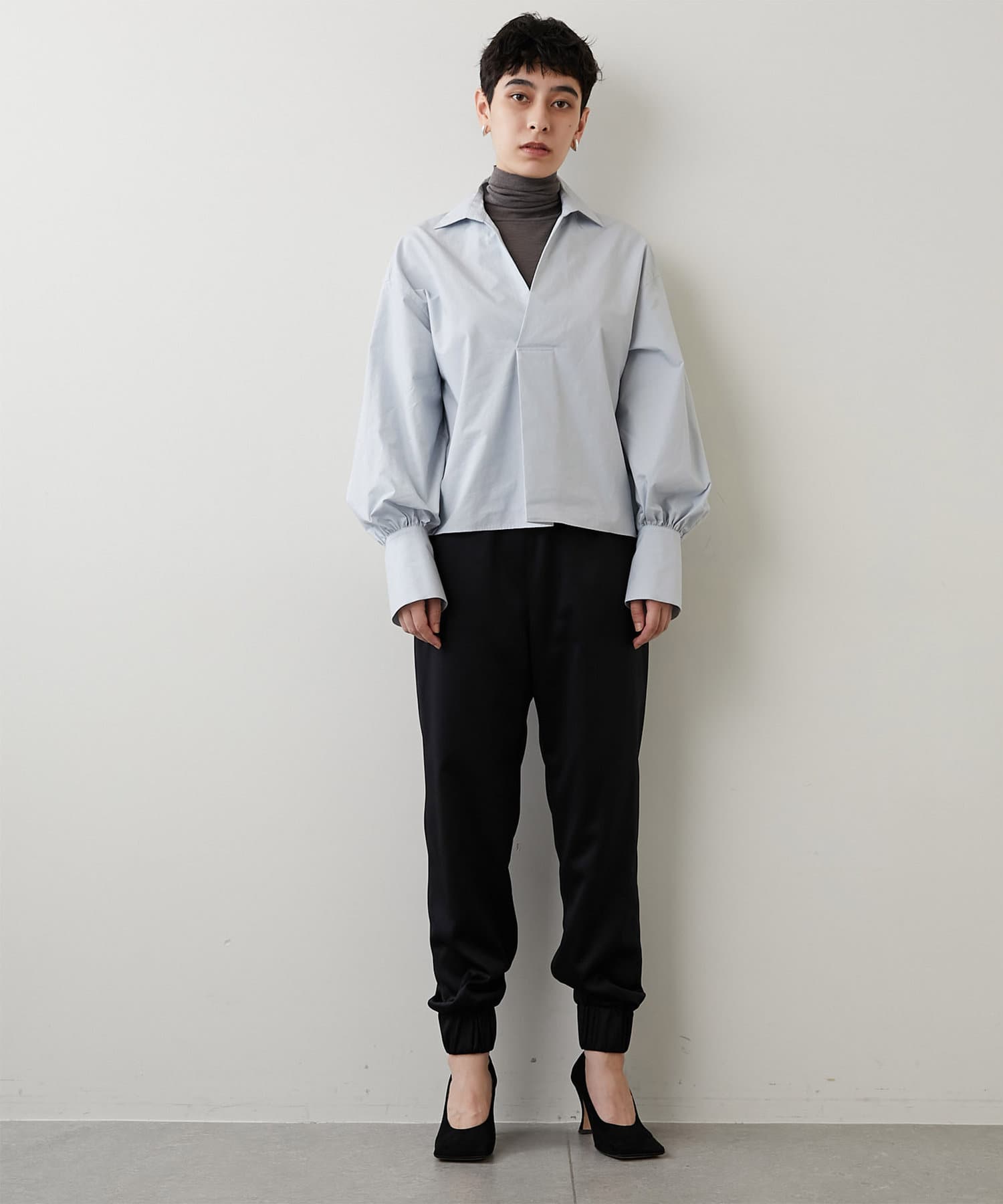 コンパクトな着丈が新鮮な見え感のスキッパーシャツブラウス。