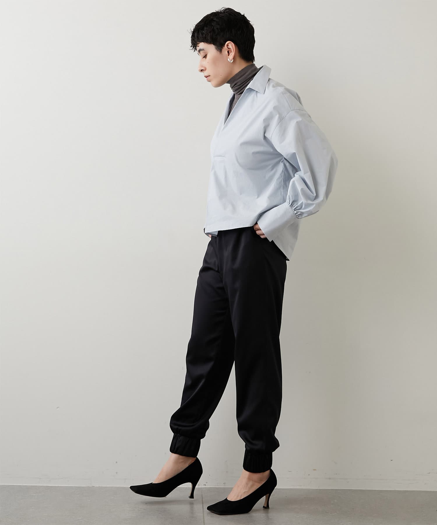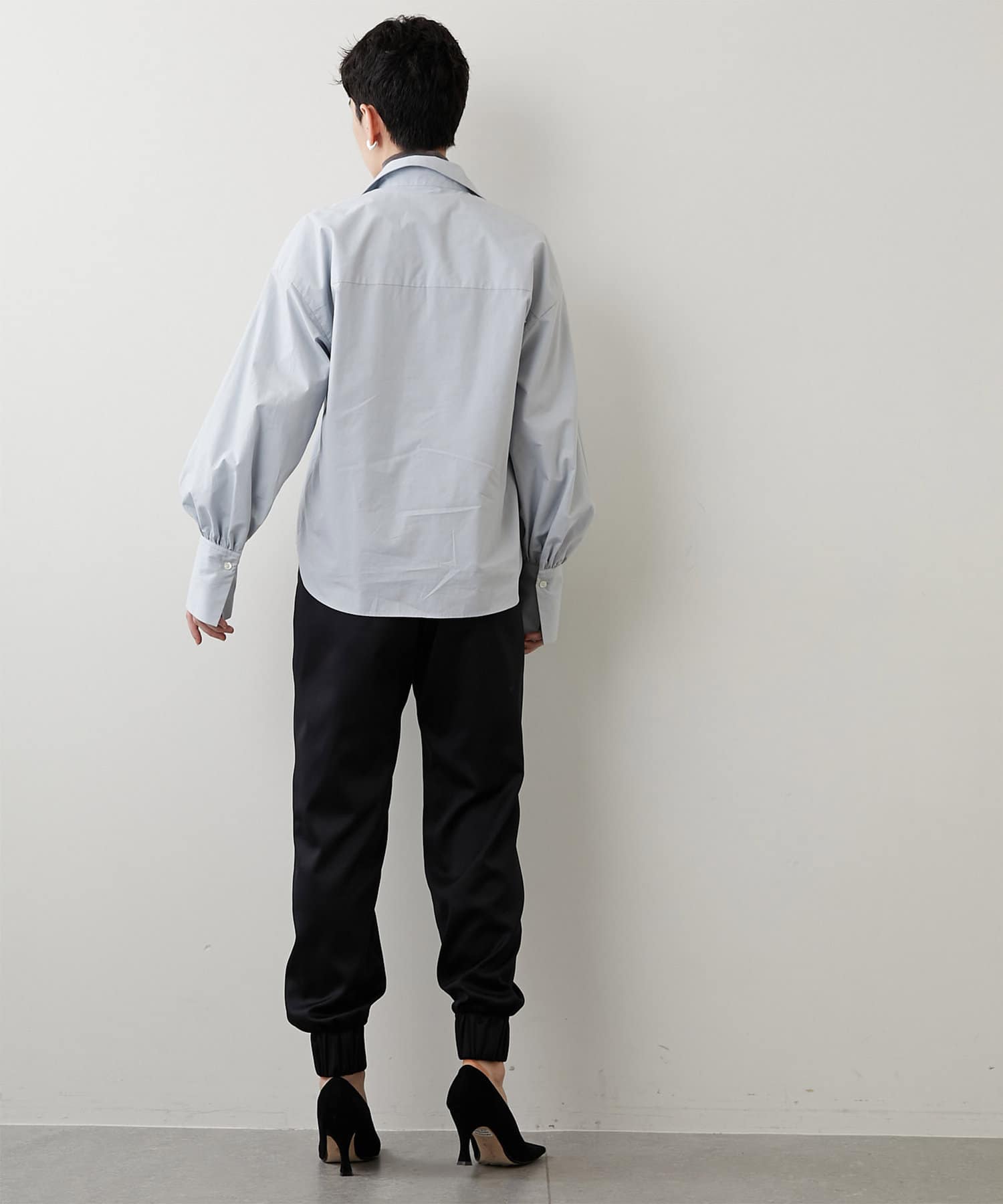たっぷりのギャザーで袖にふんわりとボリューム感を出しつつ、肩幅や身幅をコンパクトに仕立てたメリハリ感のあるデザインが、スタイリッシュな着こなしを叶えます。