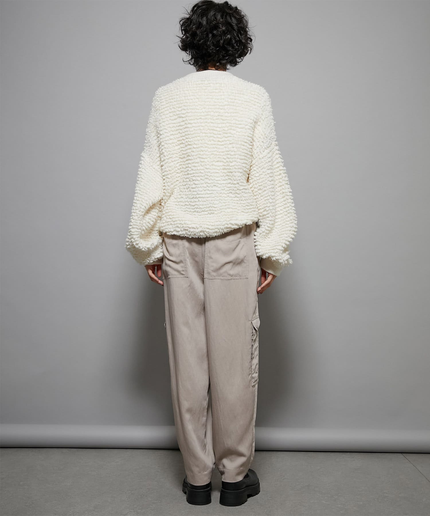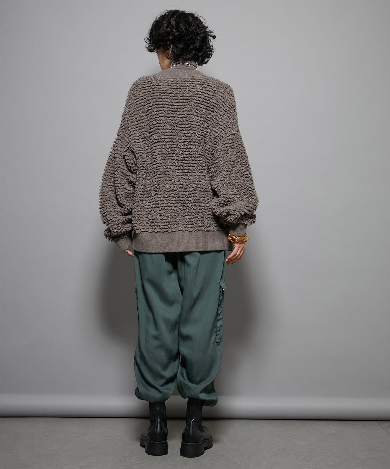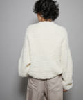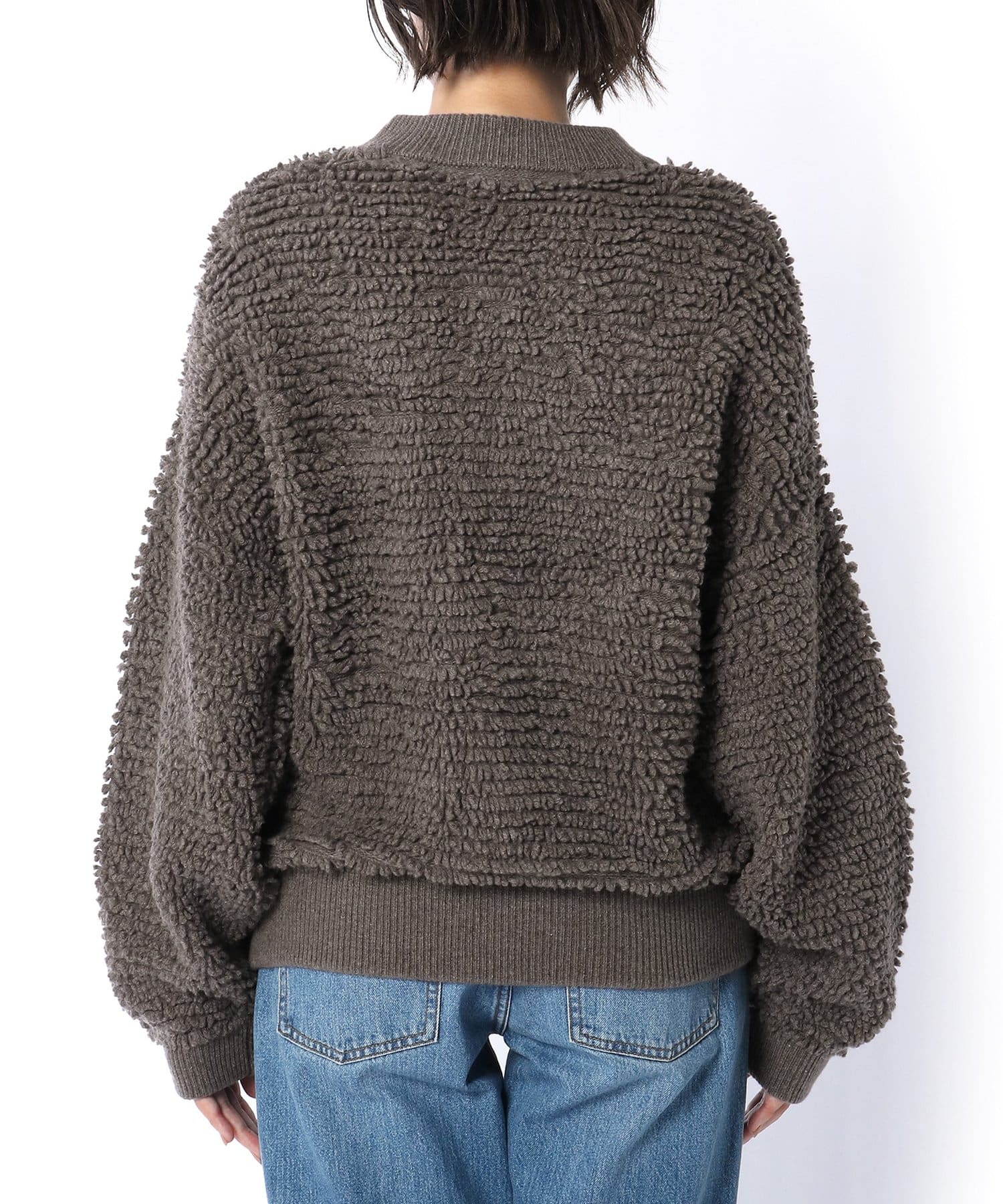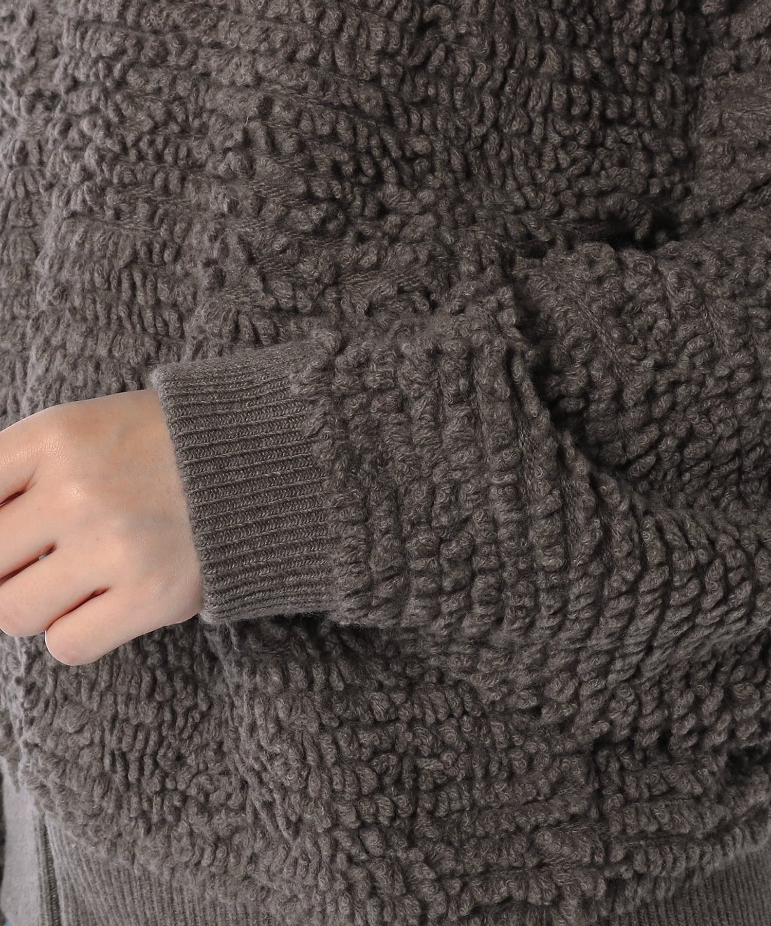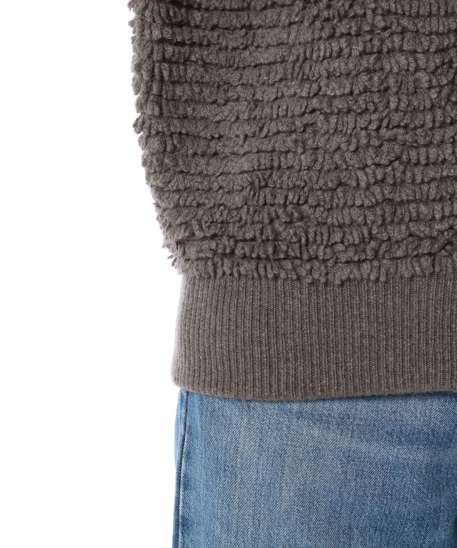 ループ編みという特殊な方法で非常に時間をかけて編み立てられた、こだわりの糸を使用した一着です。