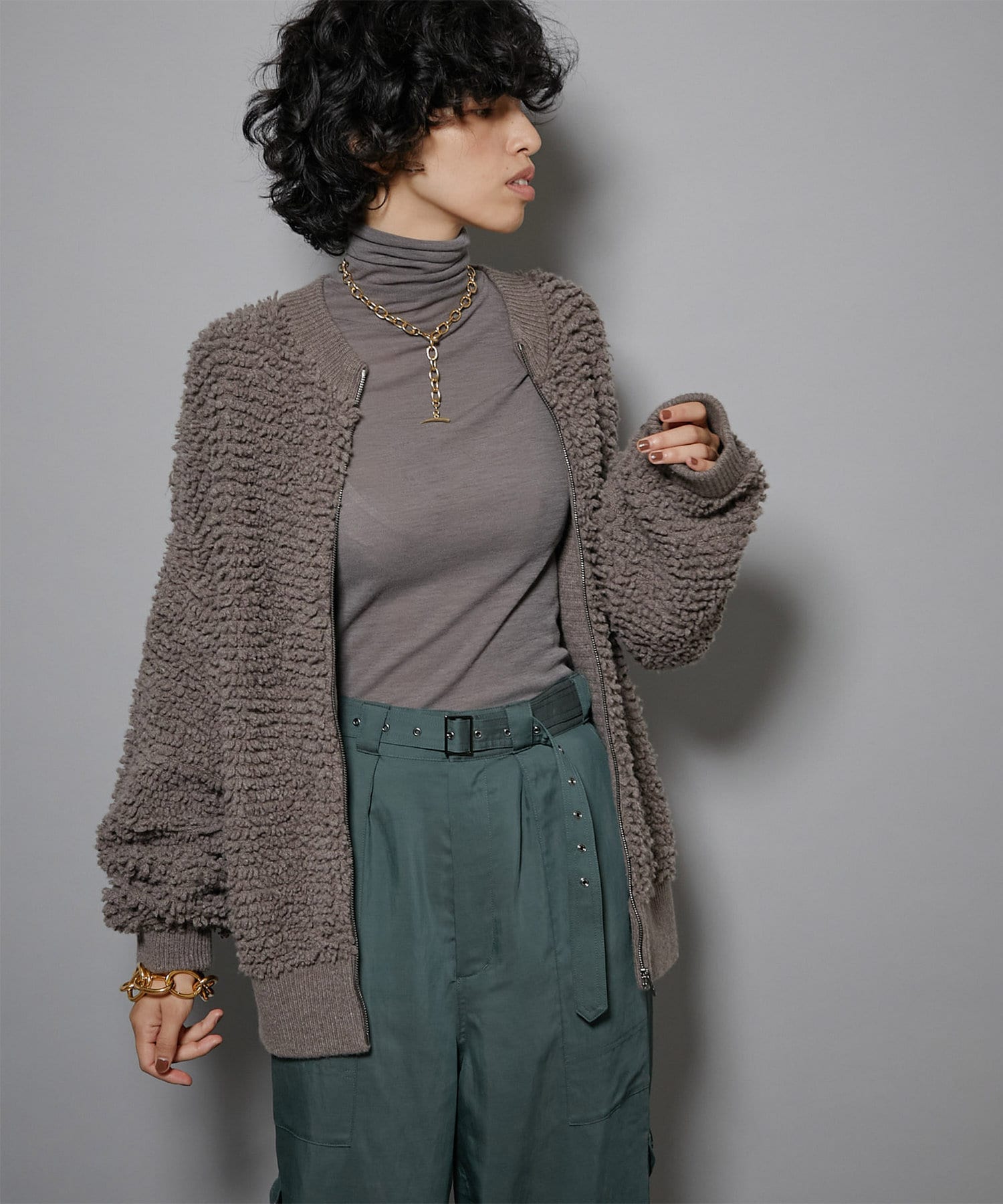 モールフリンジの表情が印象的なジップアップブルゾン。