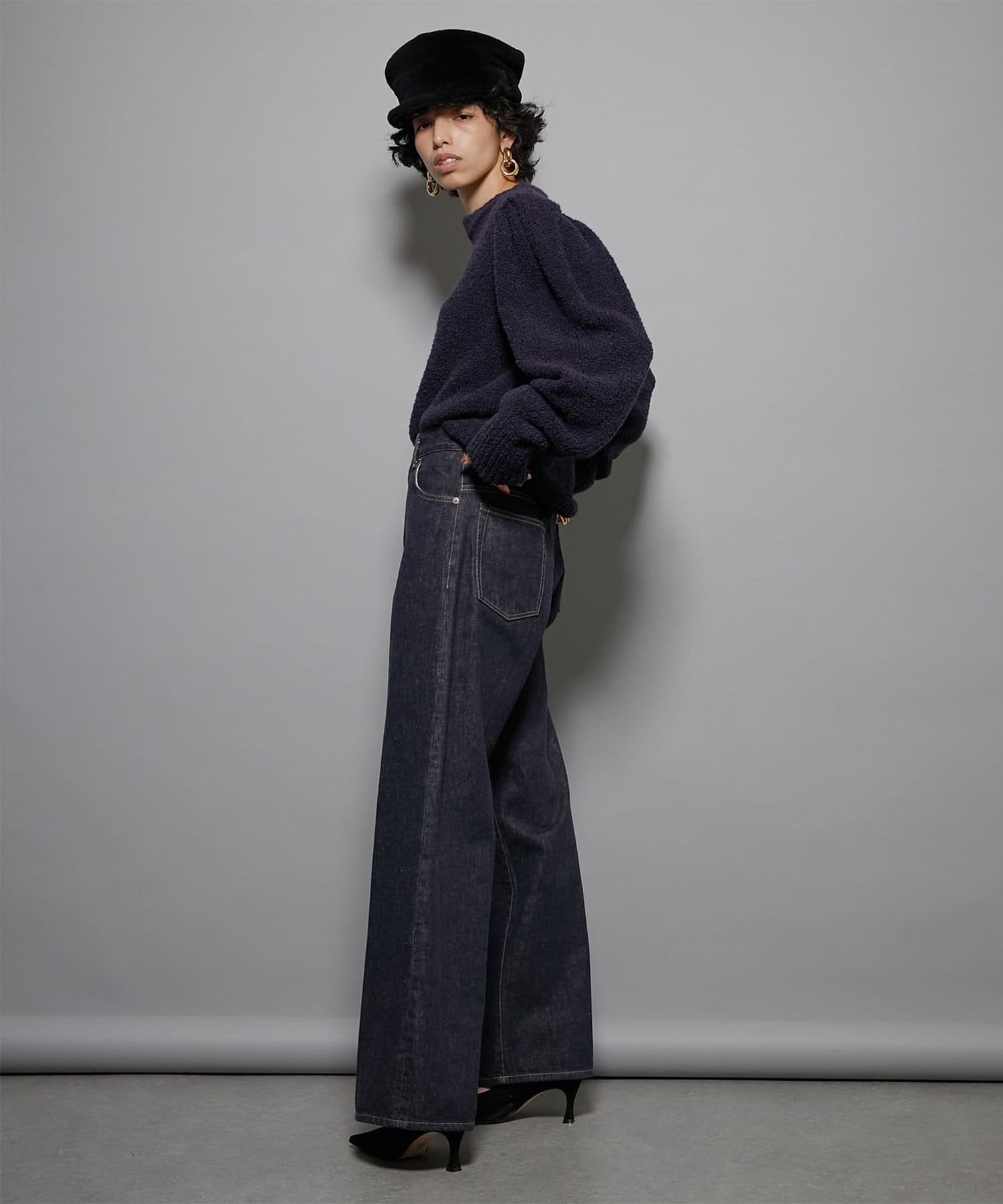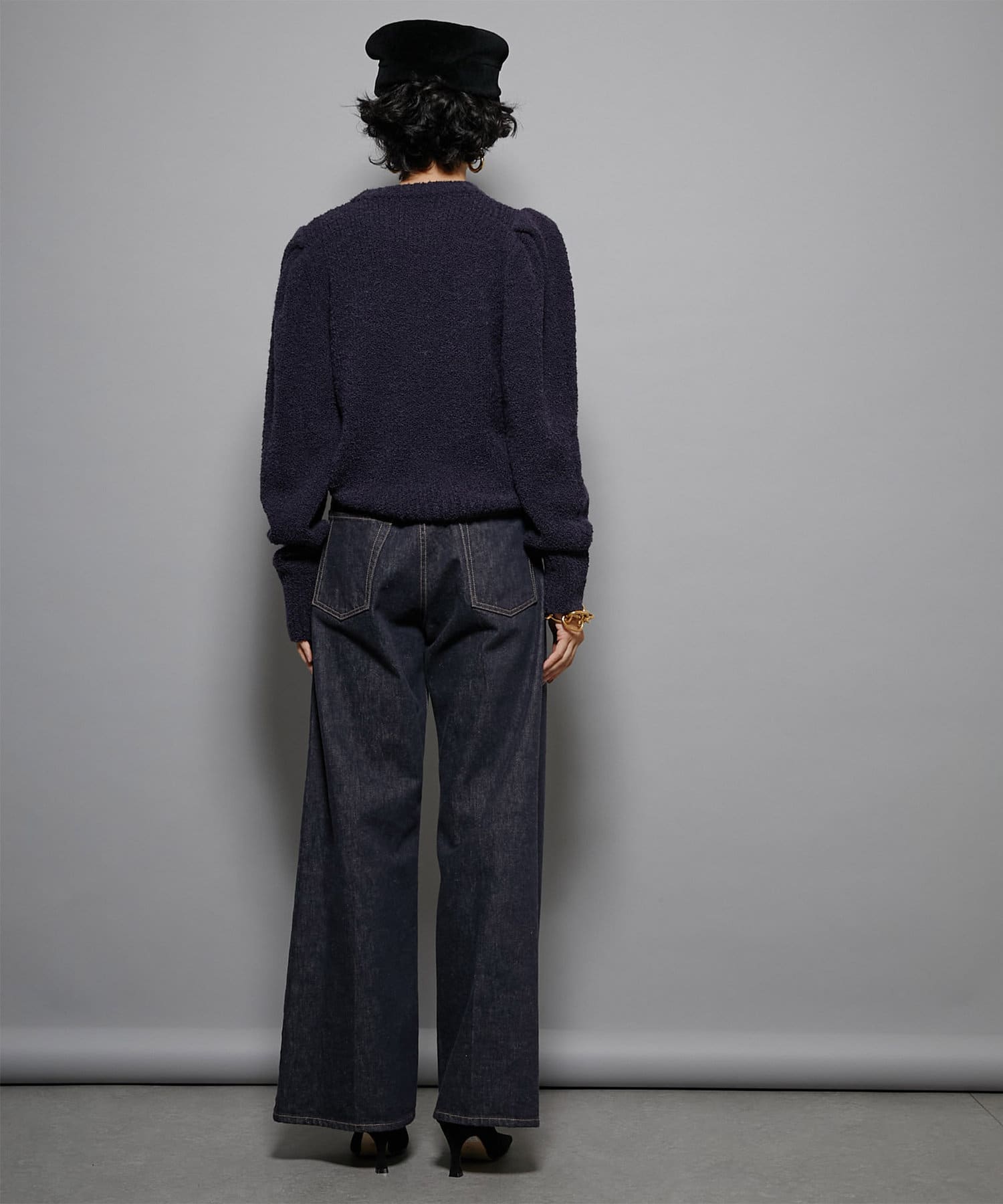イタリア糸のMister Joeのブークレー糸を使用し、個性的なシルエットのアイテムも上質な糸を使用することでカジュアル見えしすぎないように仕上げています。