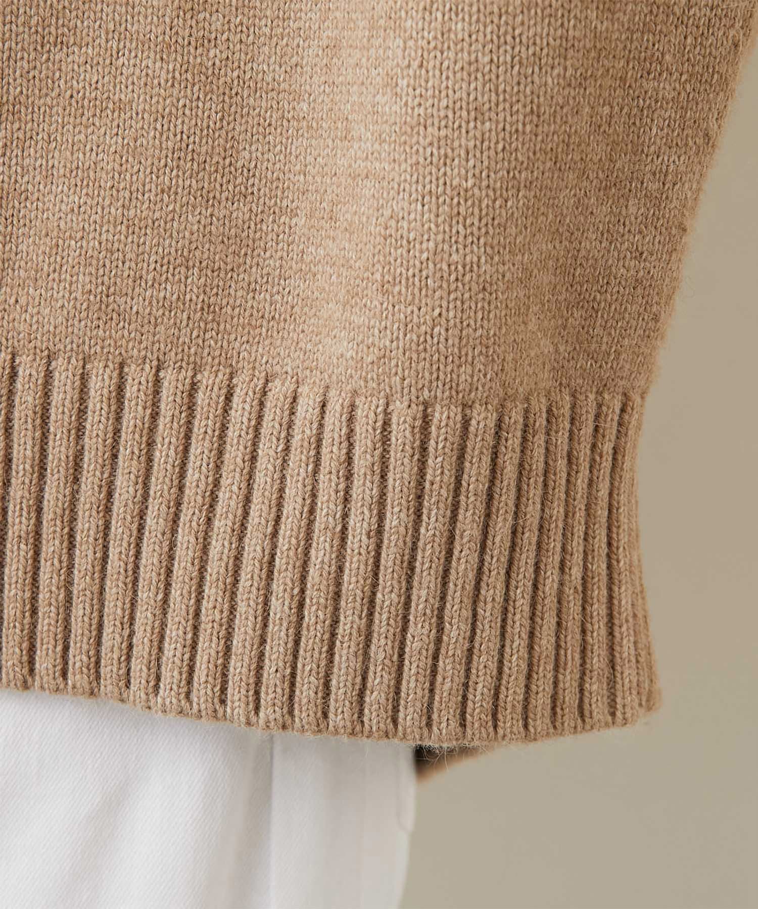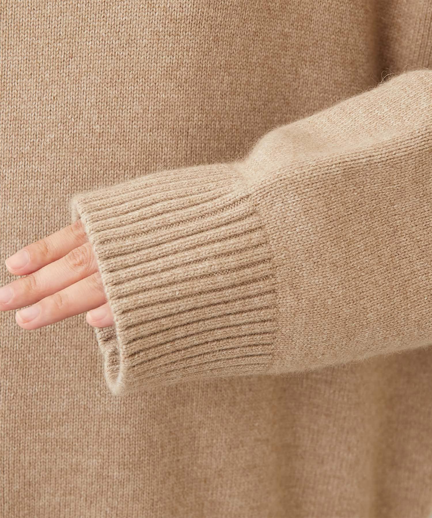 カシミヤ・アンゴラ・ラムウールを使用した素材は非常に繊維が細く、優しく柔らかな肌触りで着心地も抜群。