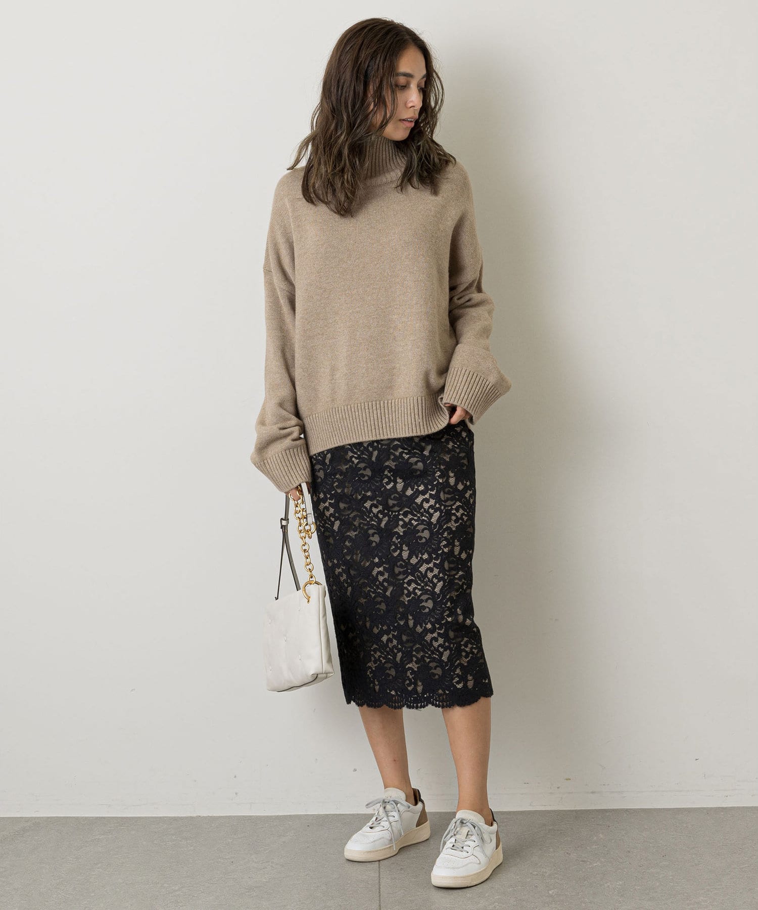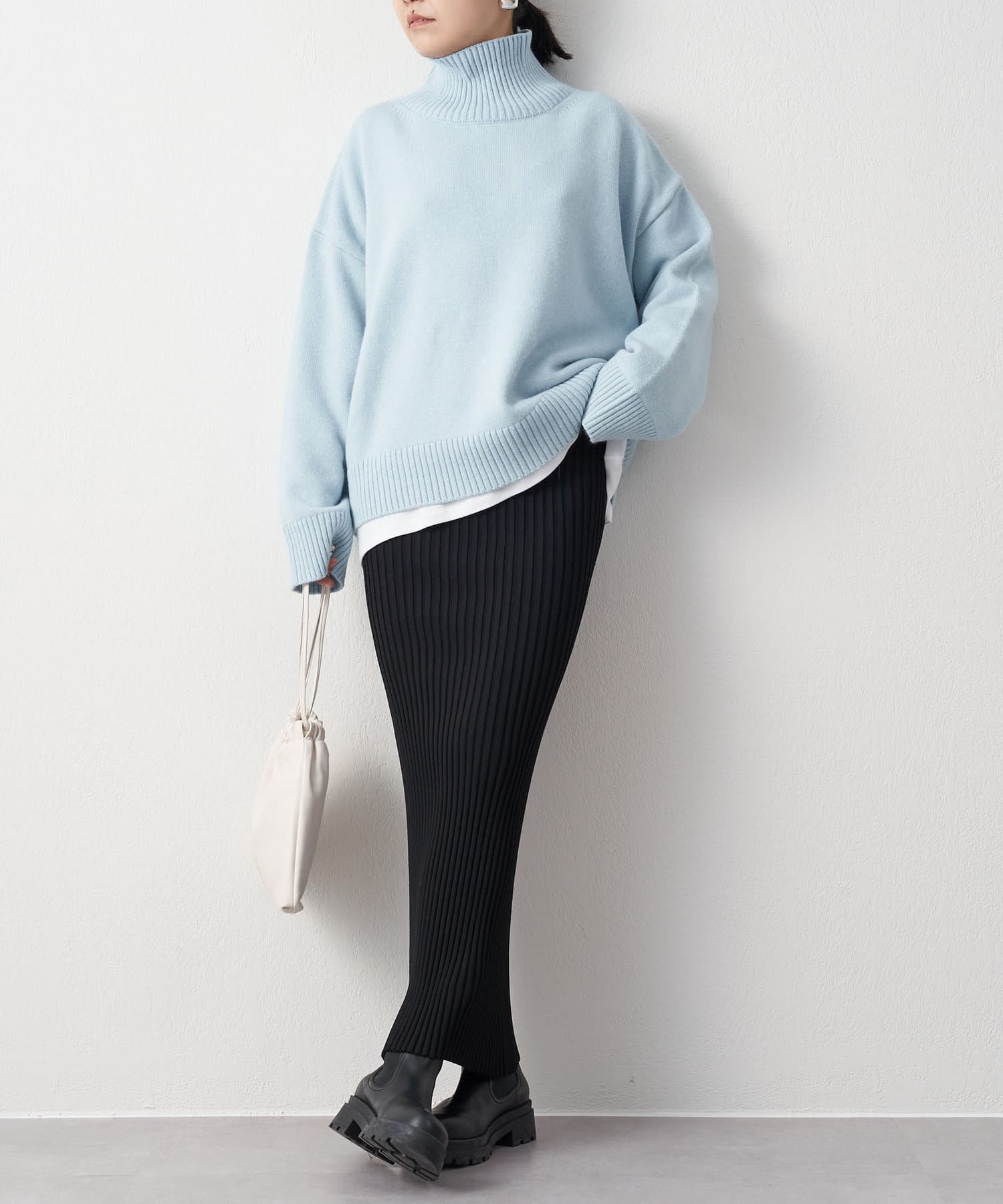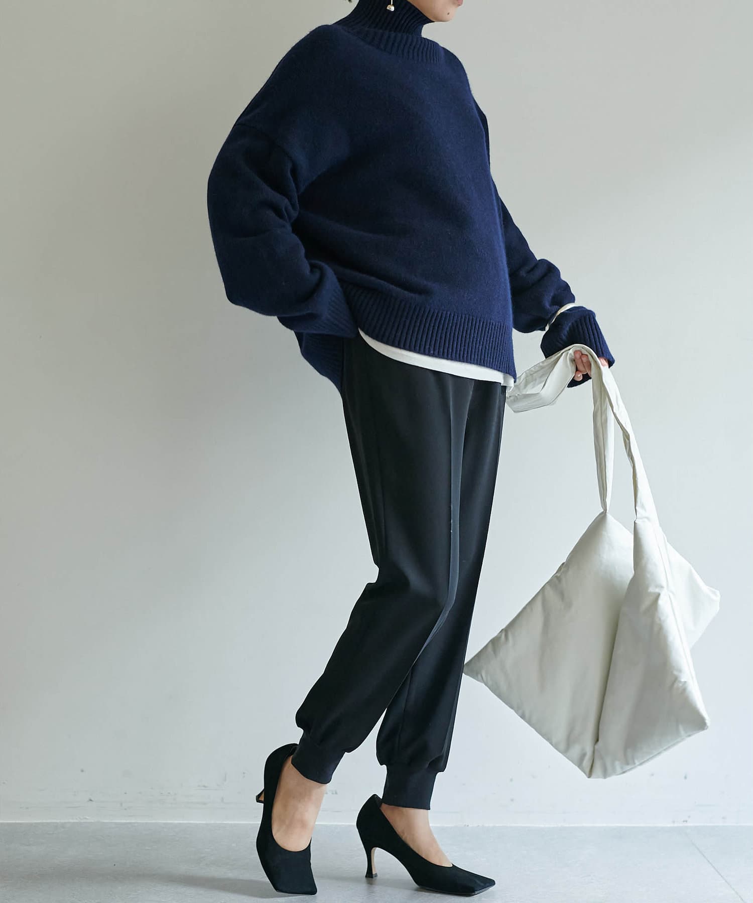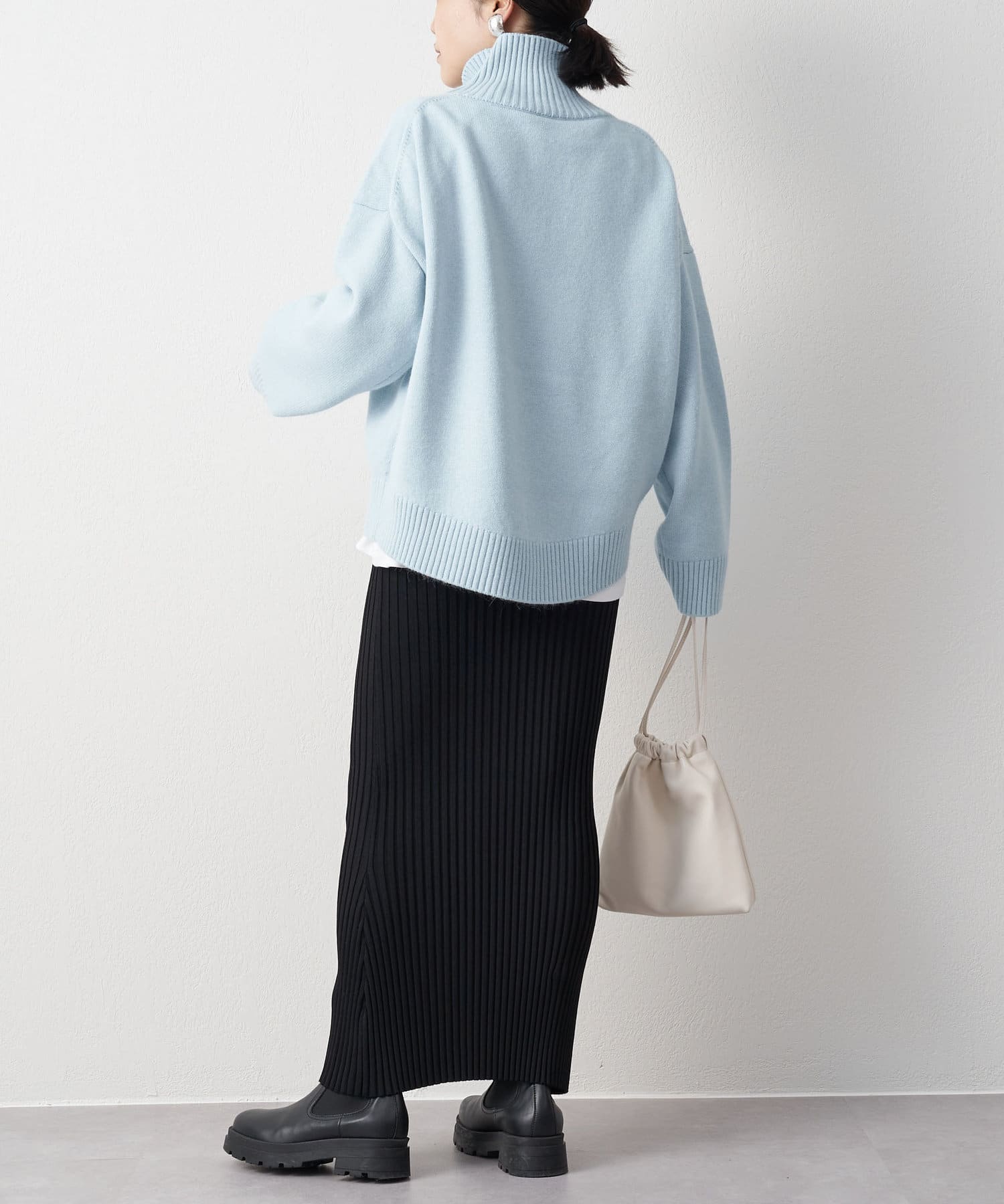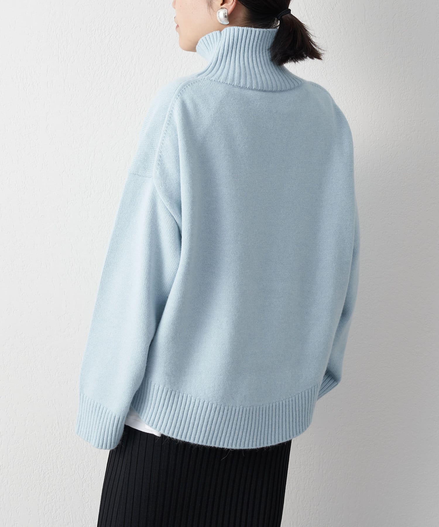 絶妙なボリューム感で女性らしくラフに着こなせるタートルニット