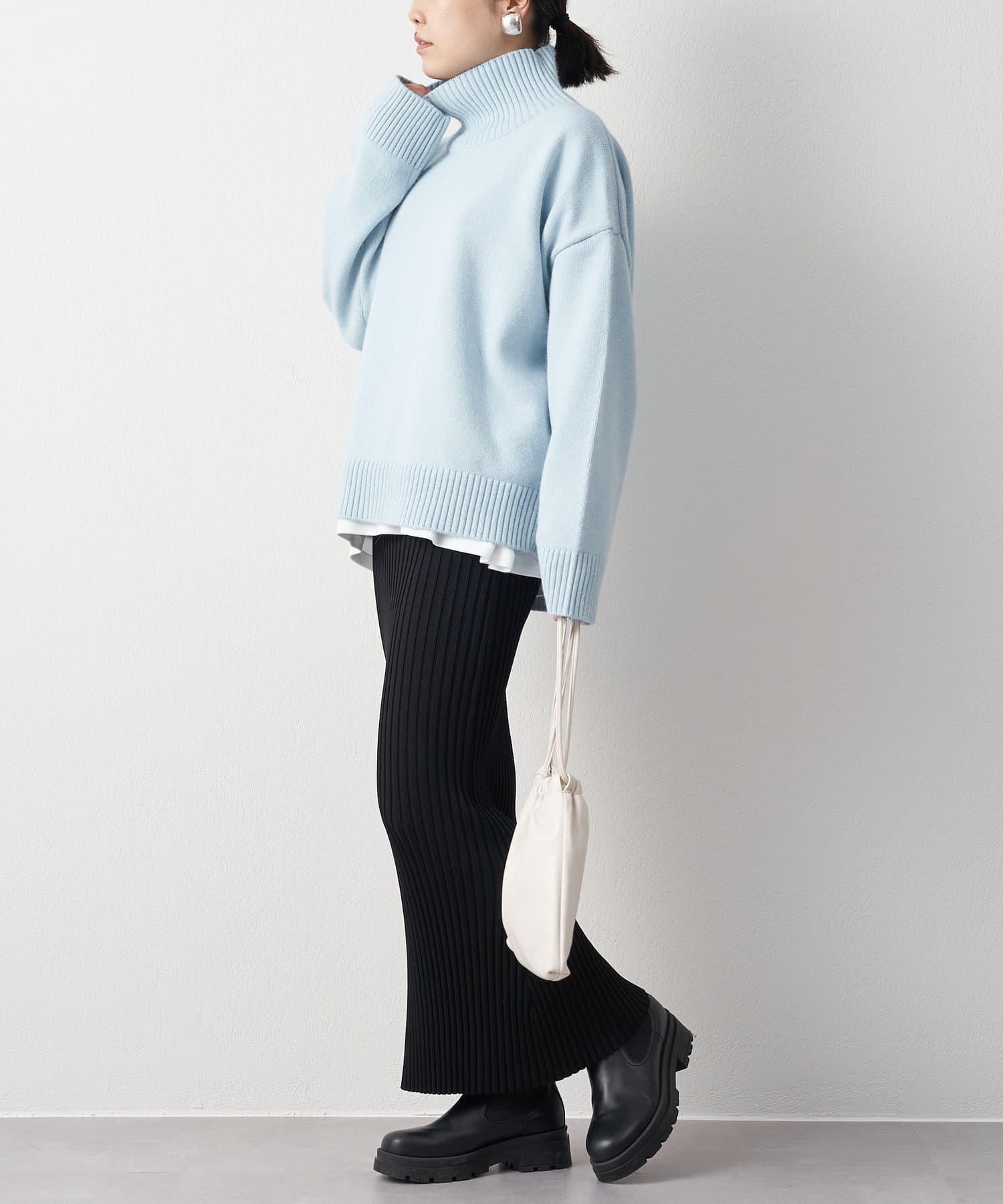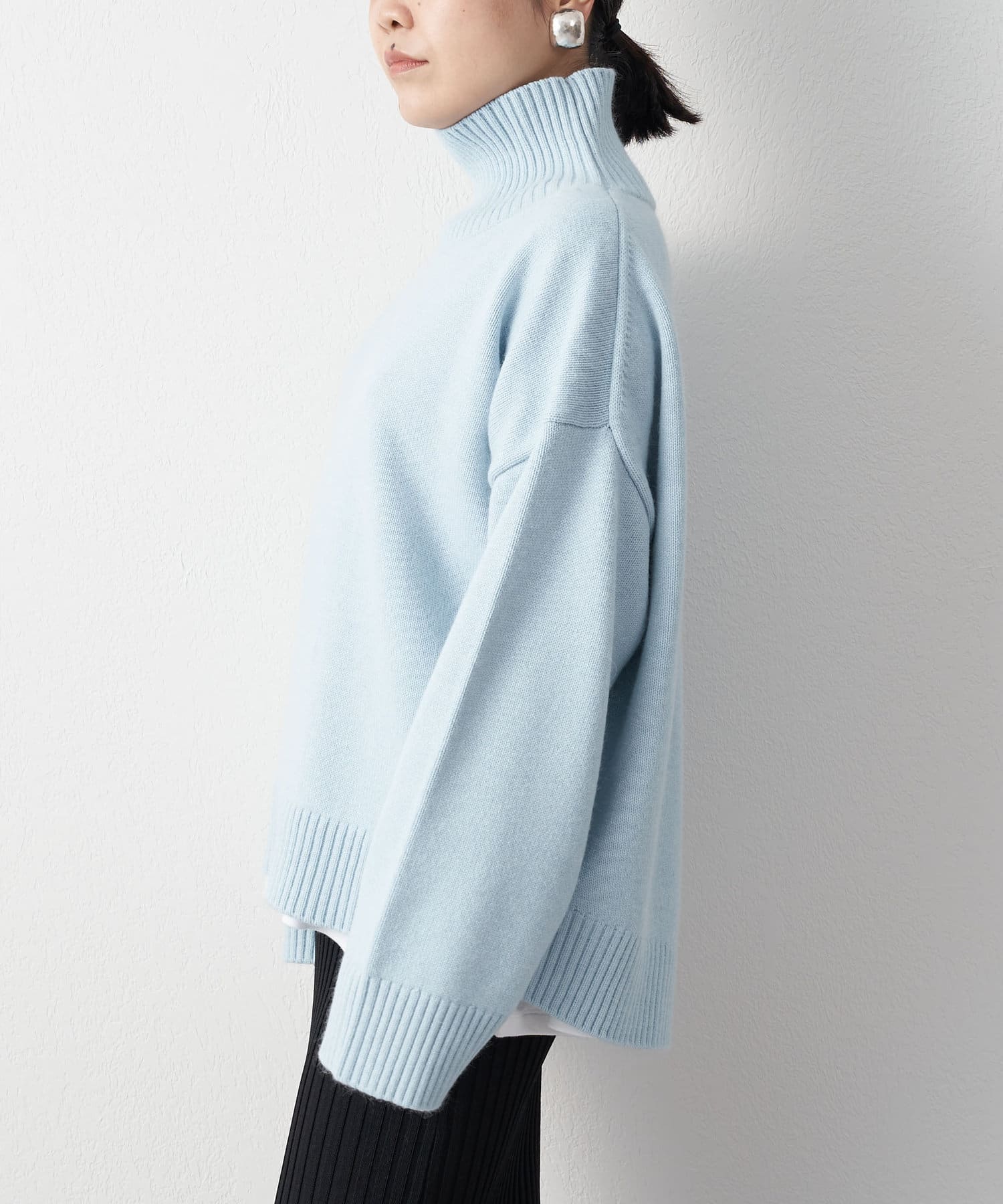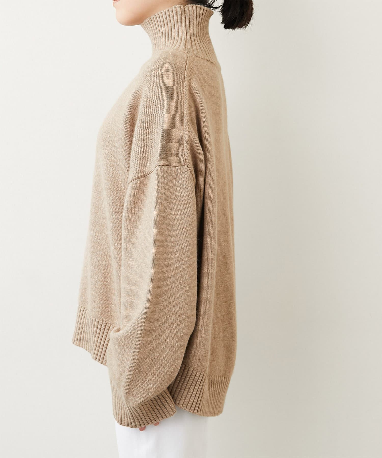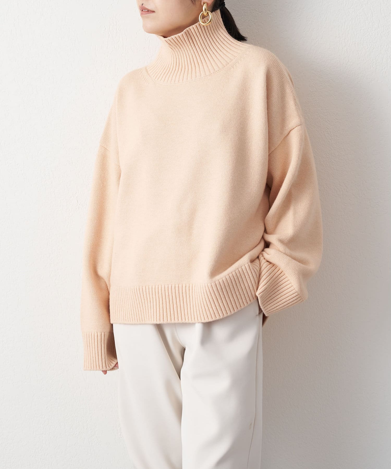 程よいルーズ感が大人のリラックスムードを感じさせるハイネックプルオーバー。