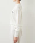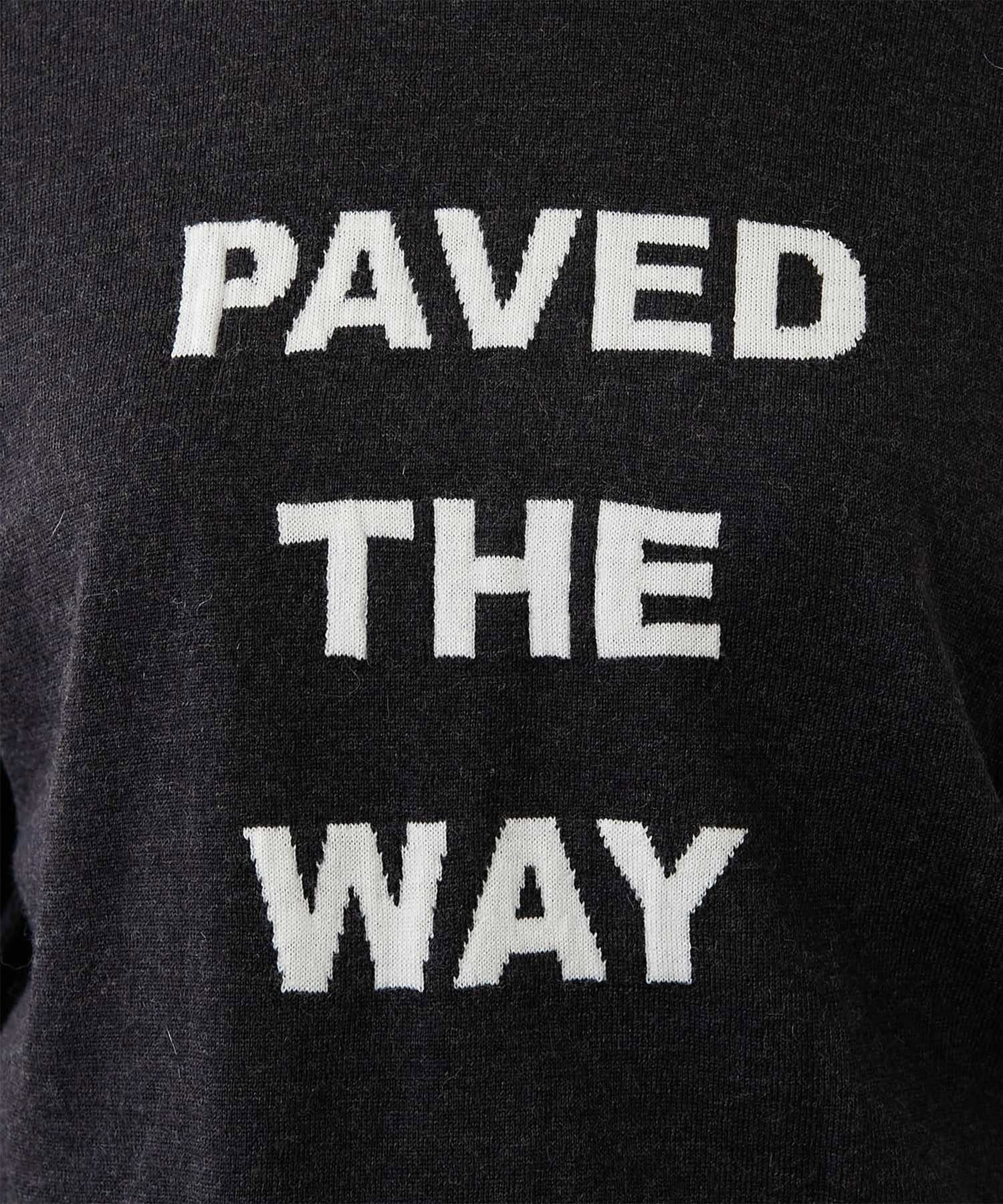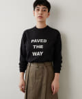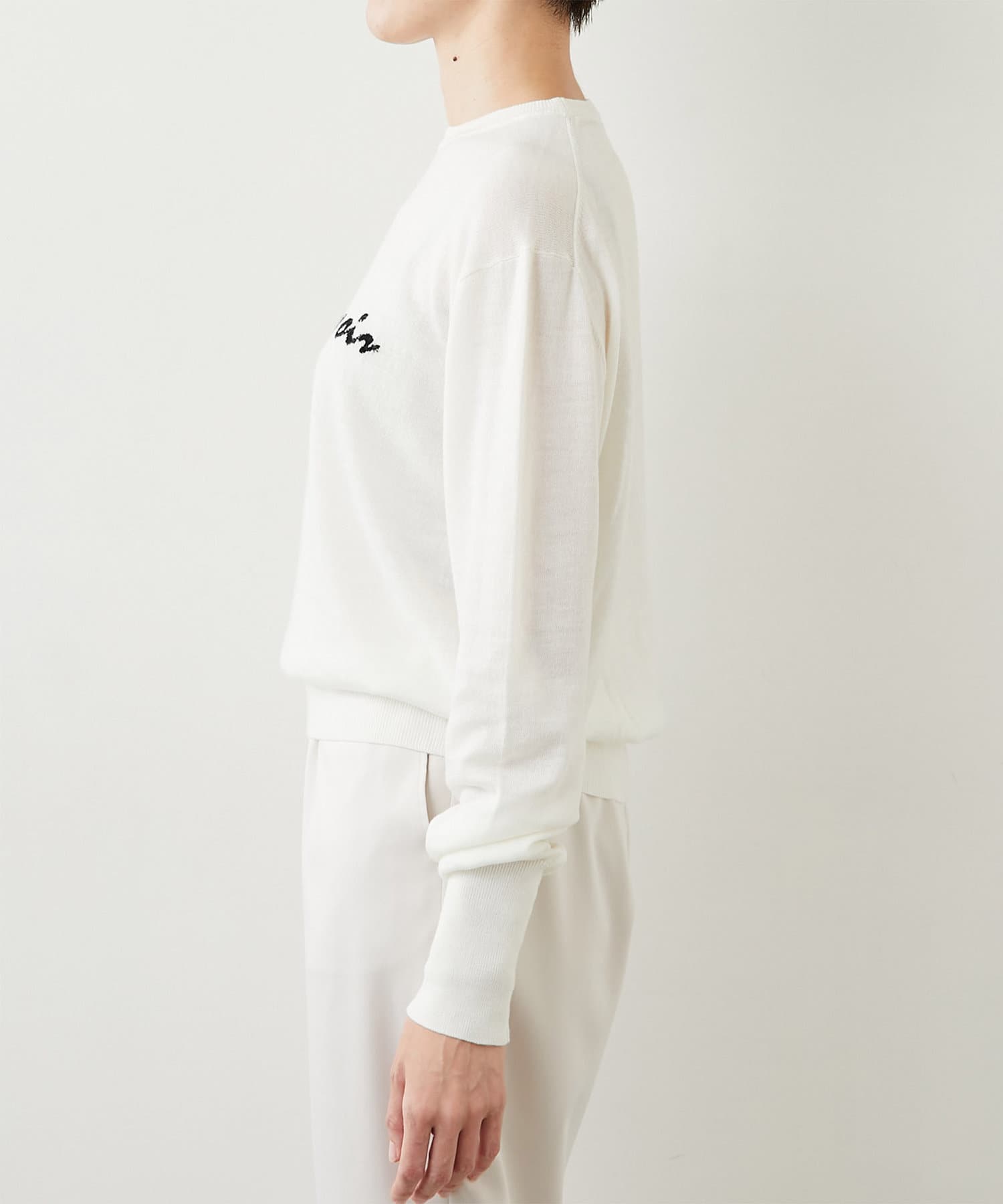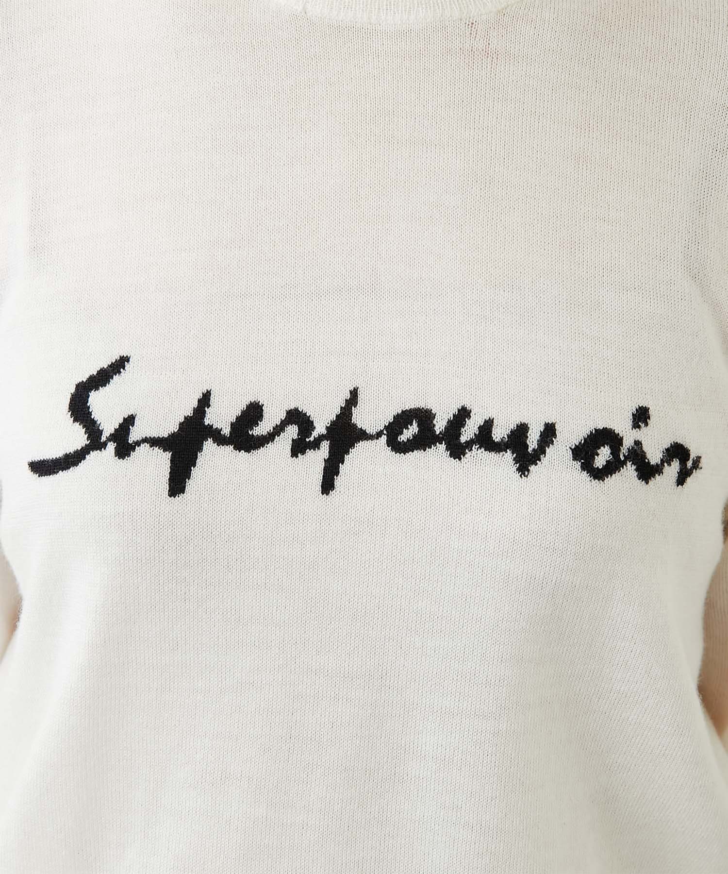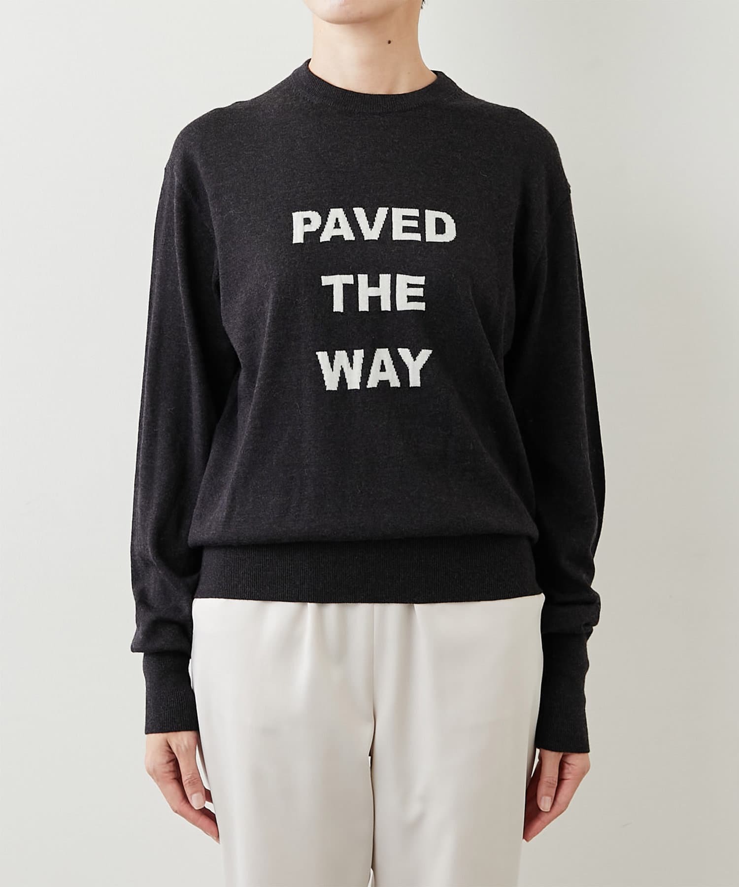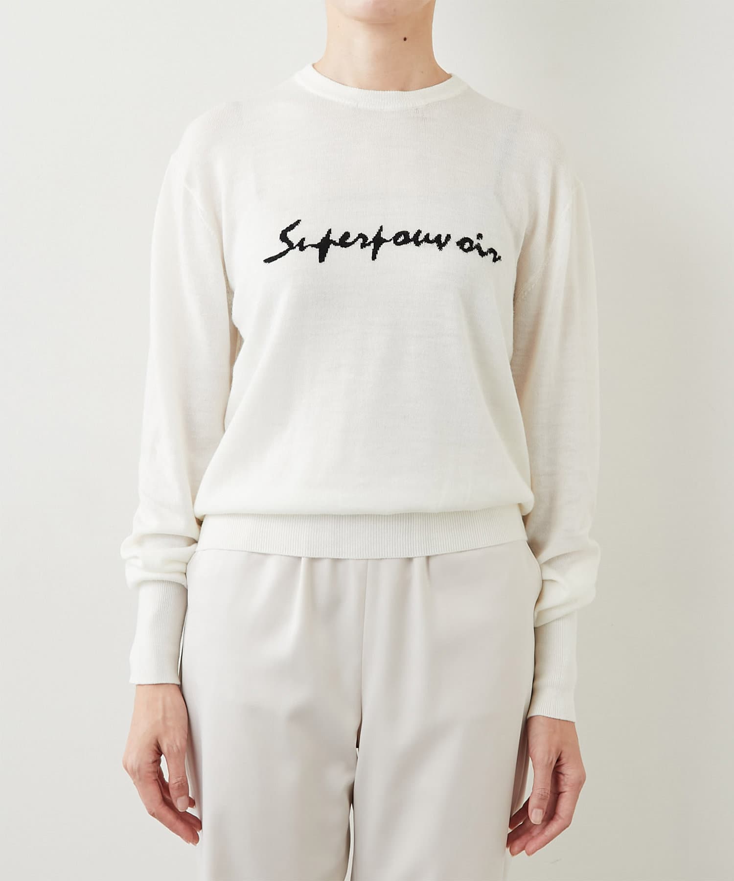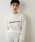フロントのポジティブなメッセージがポイントになったクルーネックニット。