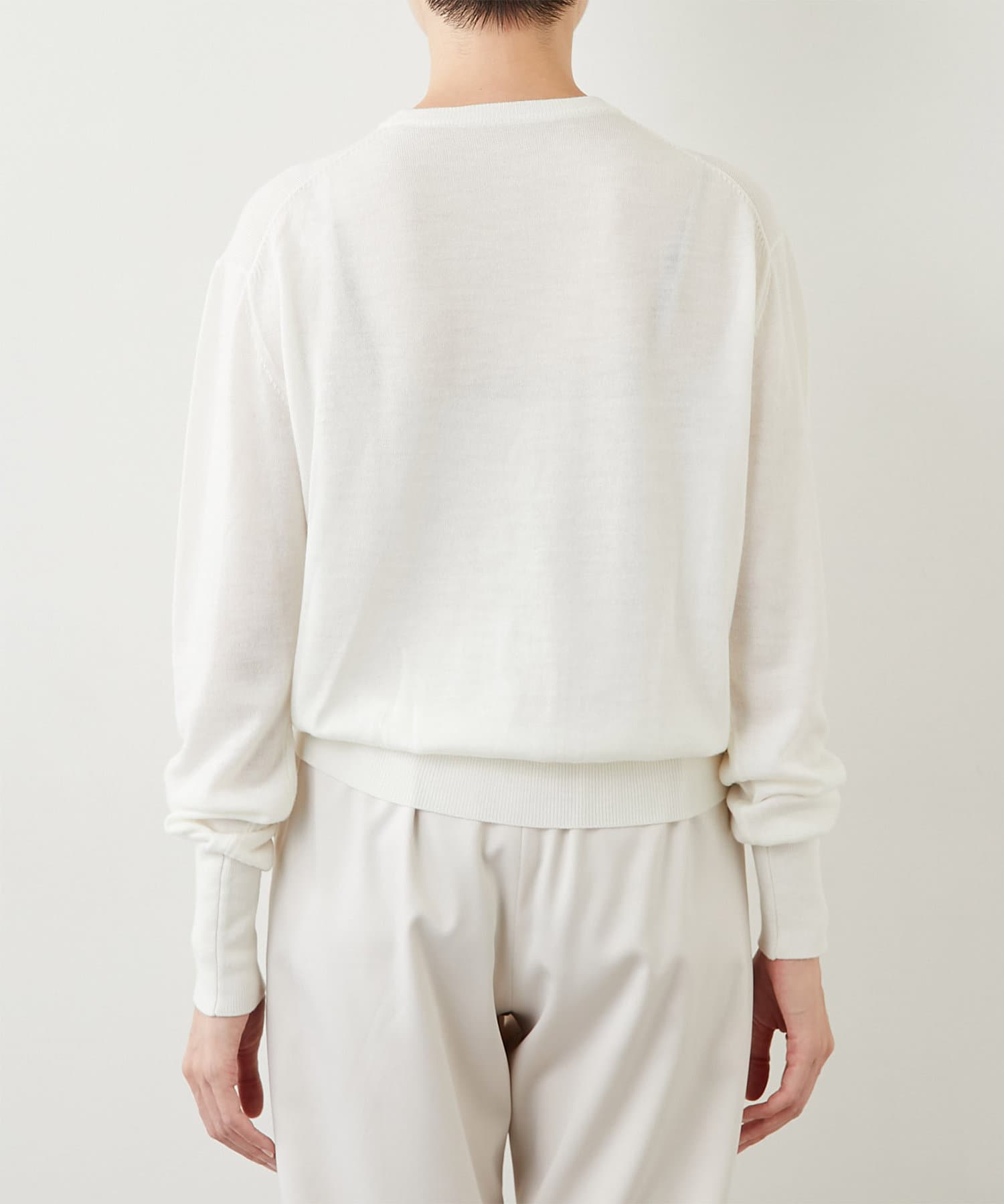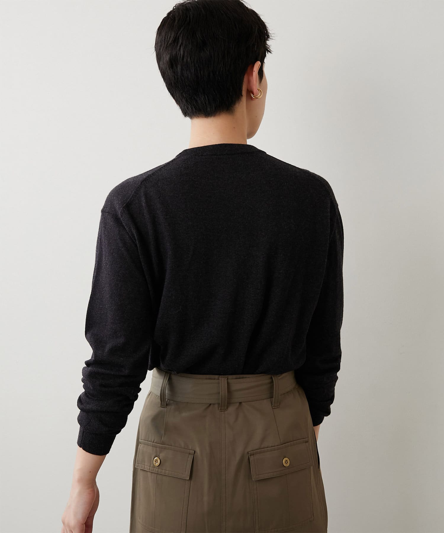 オーストラリア産の厳選された最高級の羊毛エクストラファインを原料とした、カシミヤのような柔らかさとナチュラルな膨らみ感のある風合いが心地よい一着。