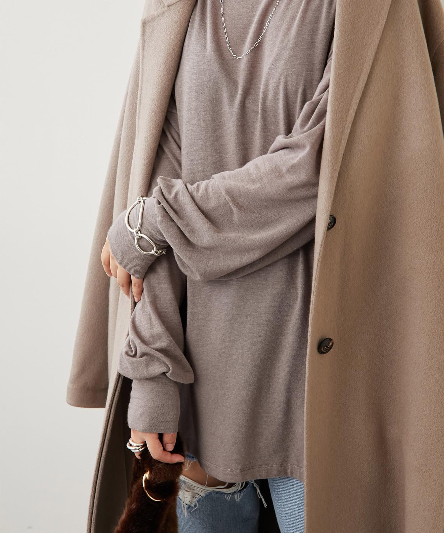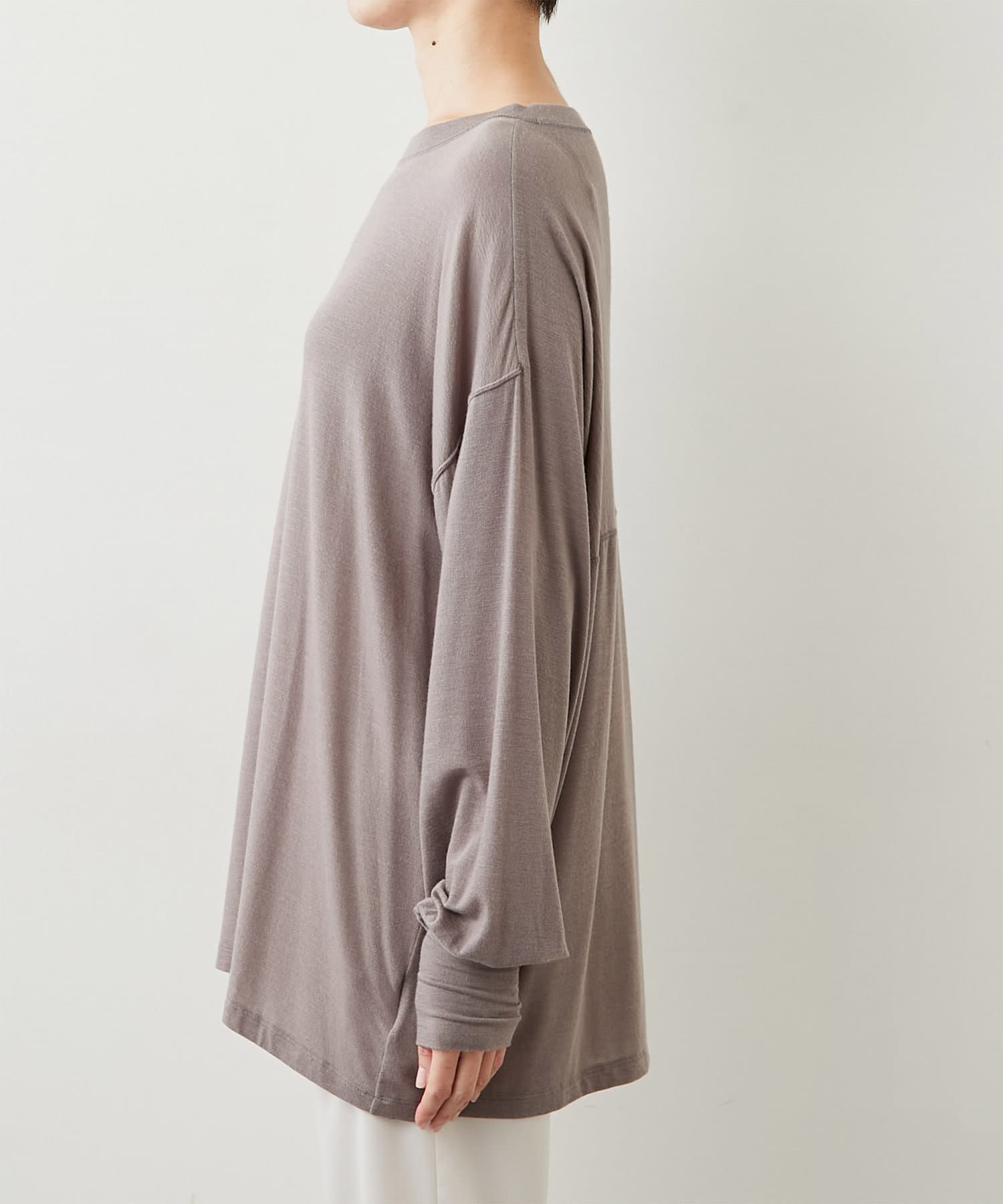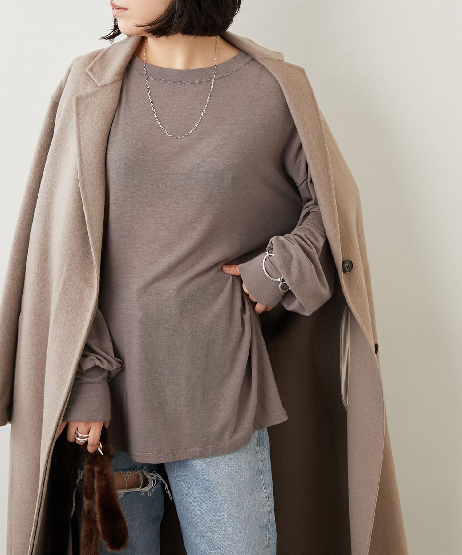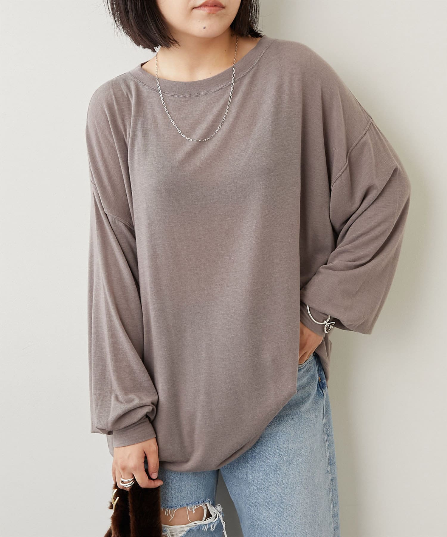 生地の透け感を生かし、インナーに色柄のあるものを差し込んだり、ニットやスウェットのインナーに重ねたりと、秋冬のレイヤードが楽しくなるカットソーです。