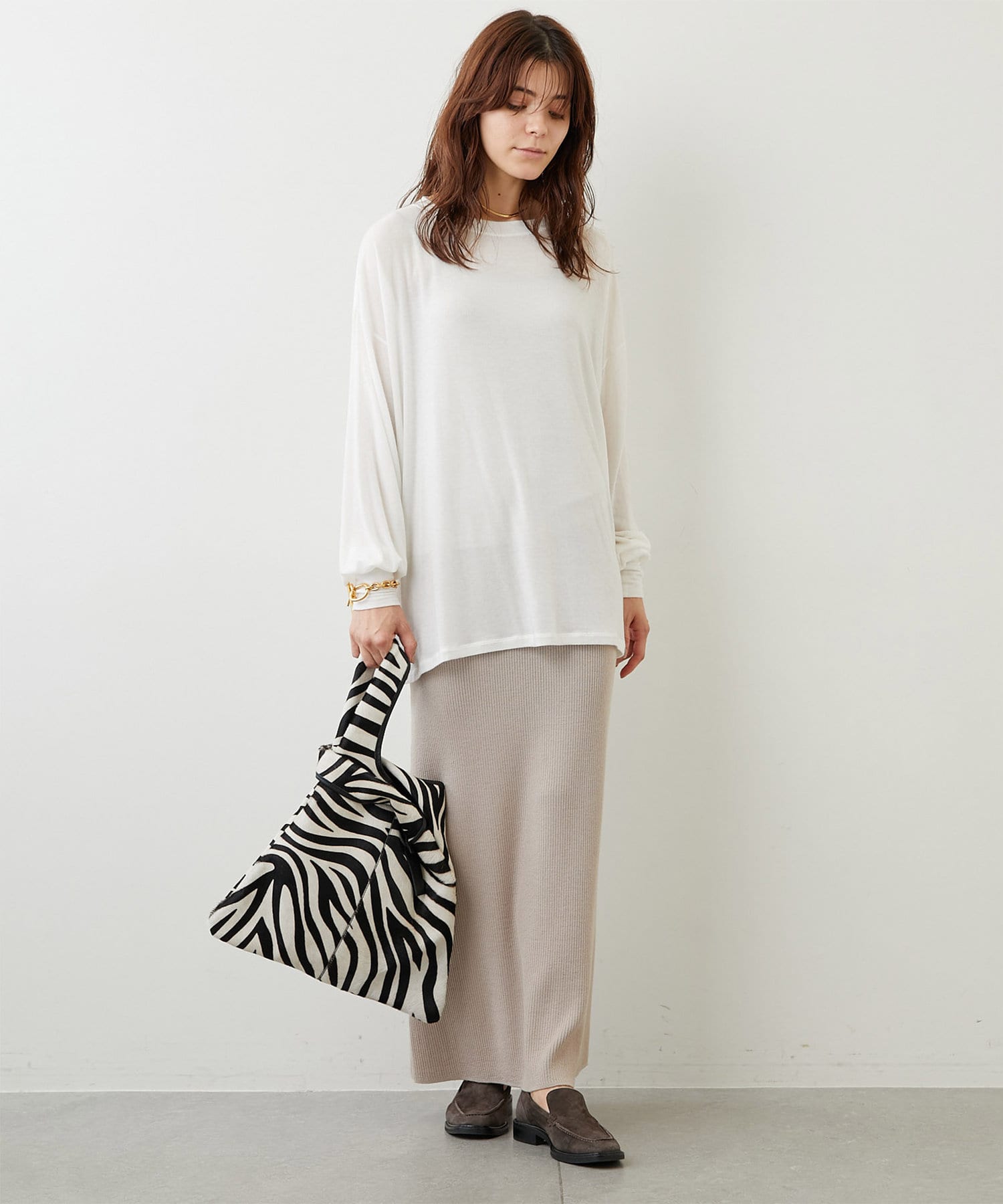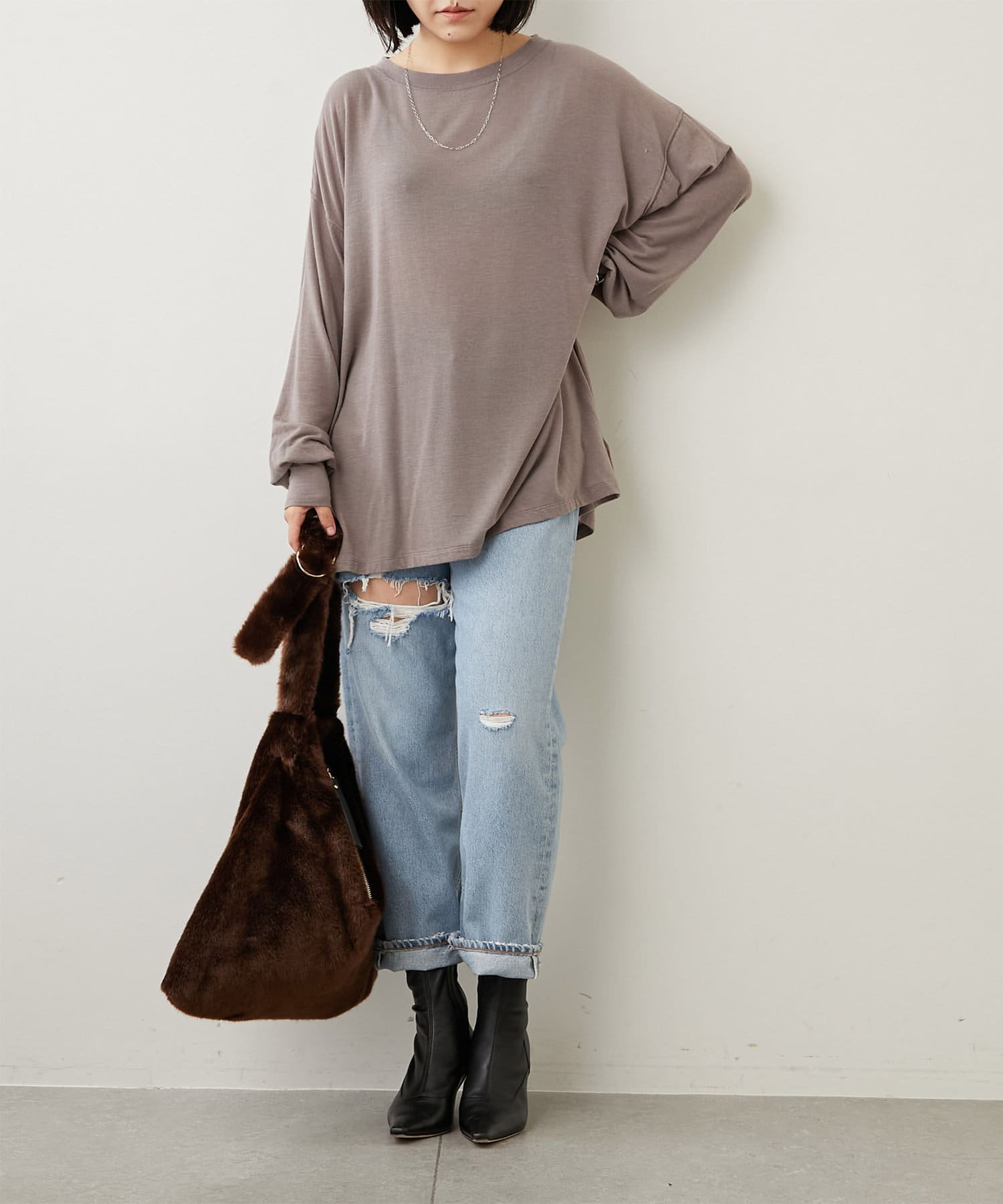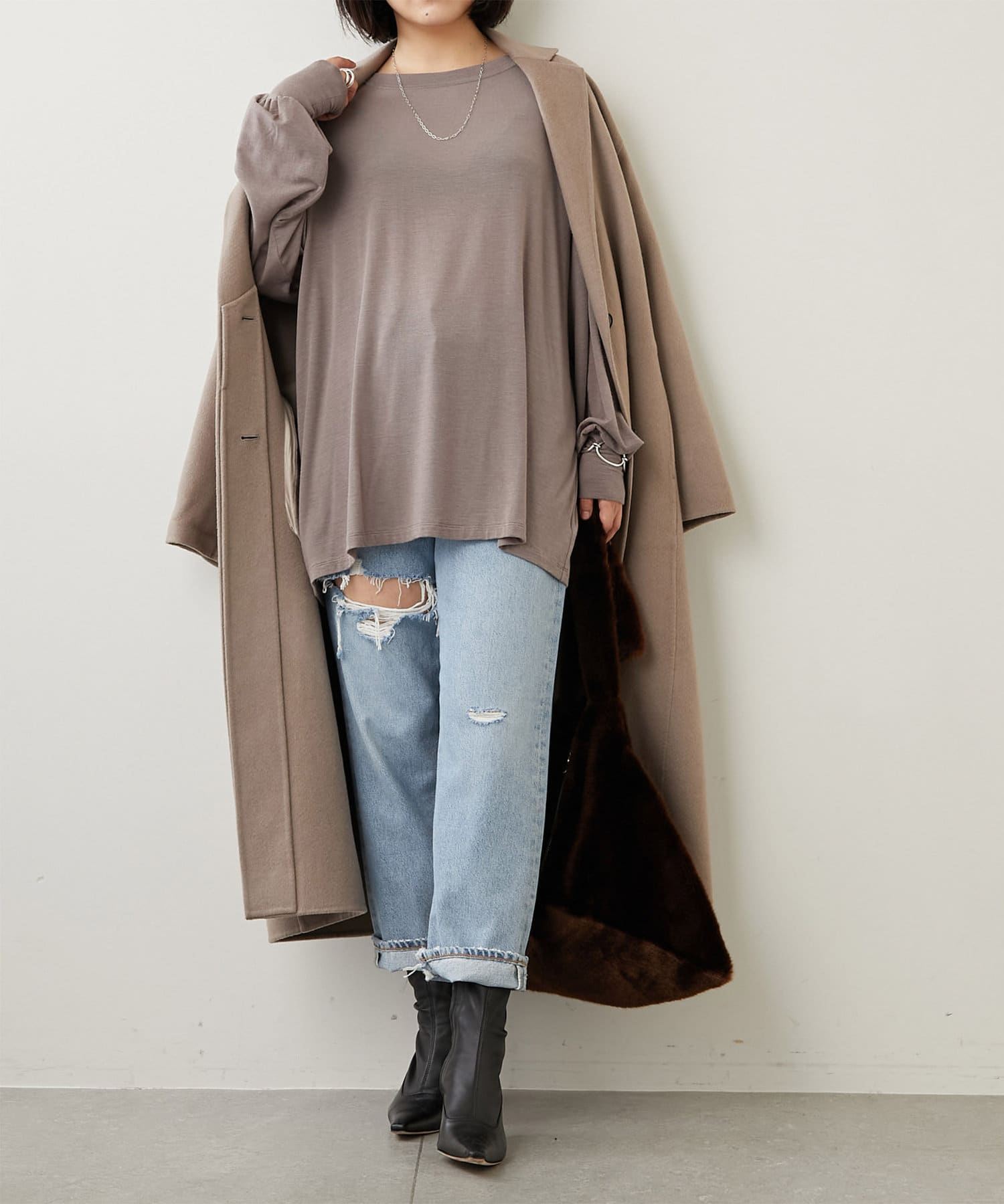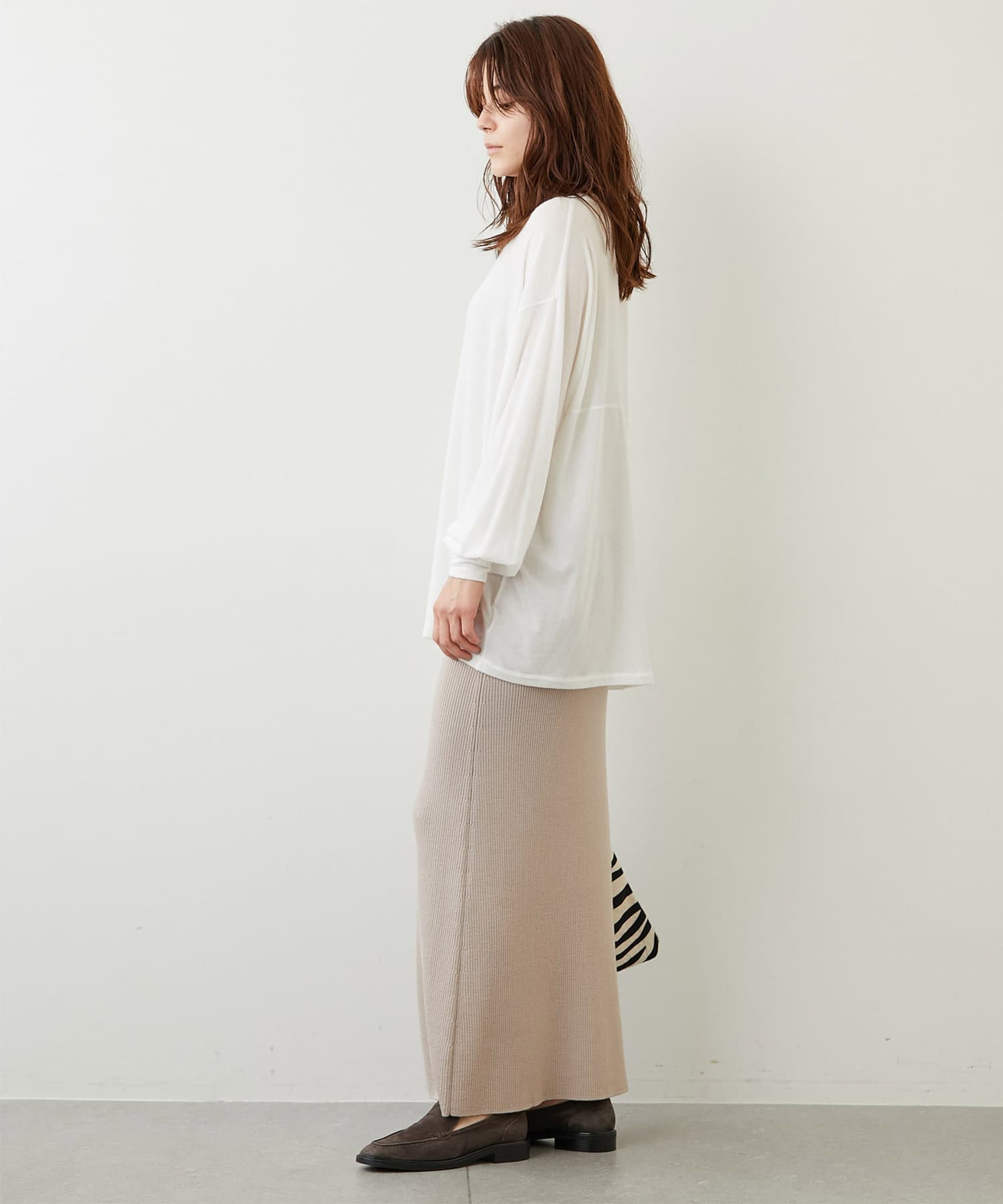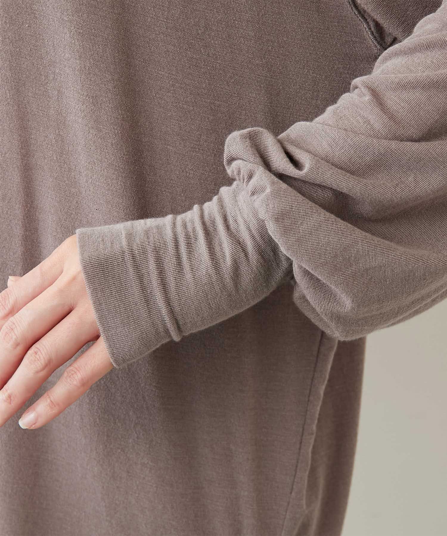 生地の透け感を生かし、インナーに色柄のあるものを差し込んだり、ニットやスウェットのインナーに重ねたりと、秋冬のレイヤードが楽しくなるカットソーです。