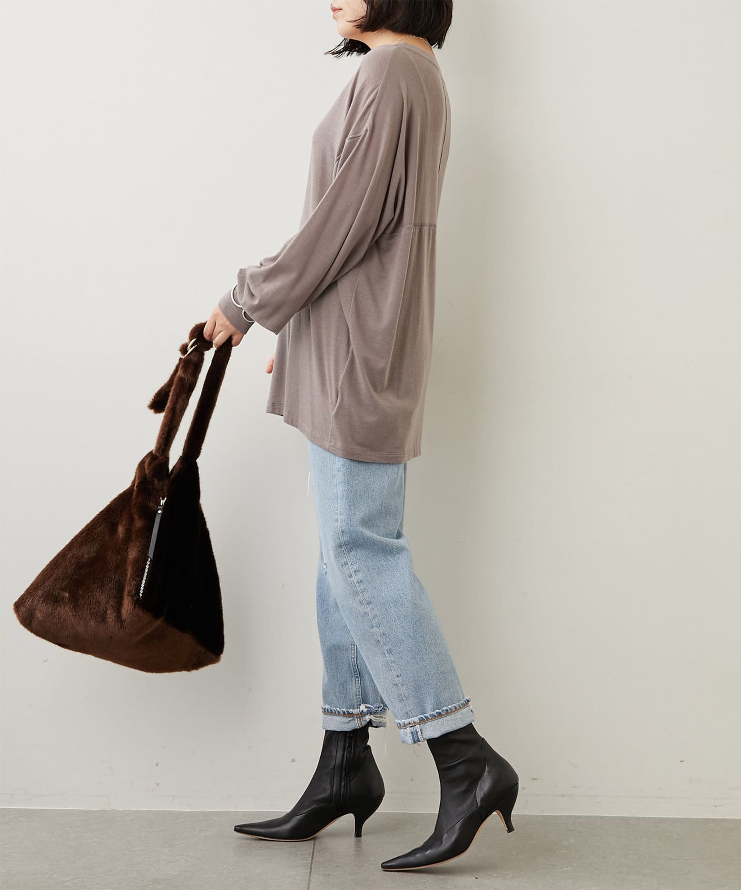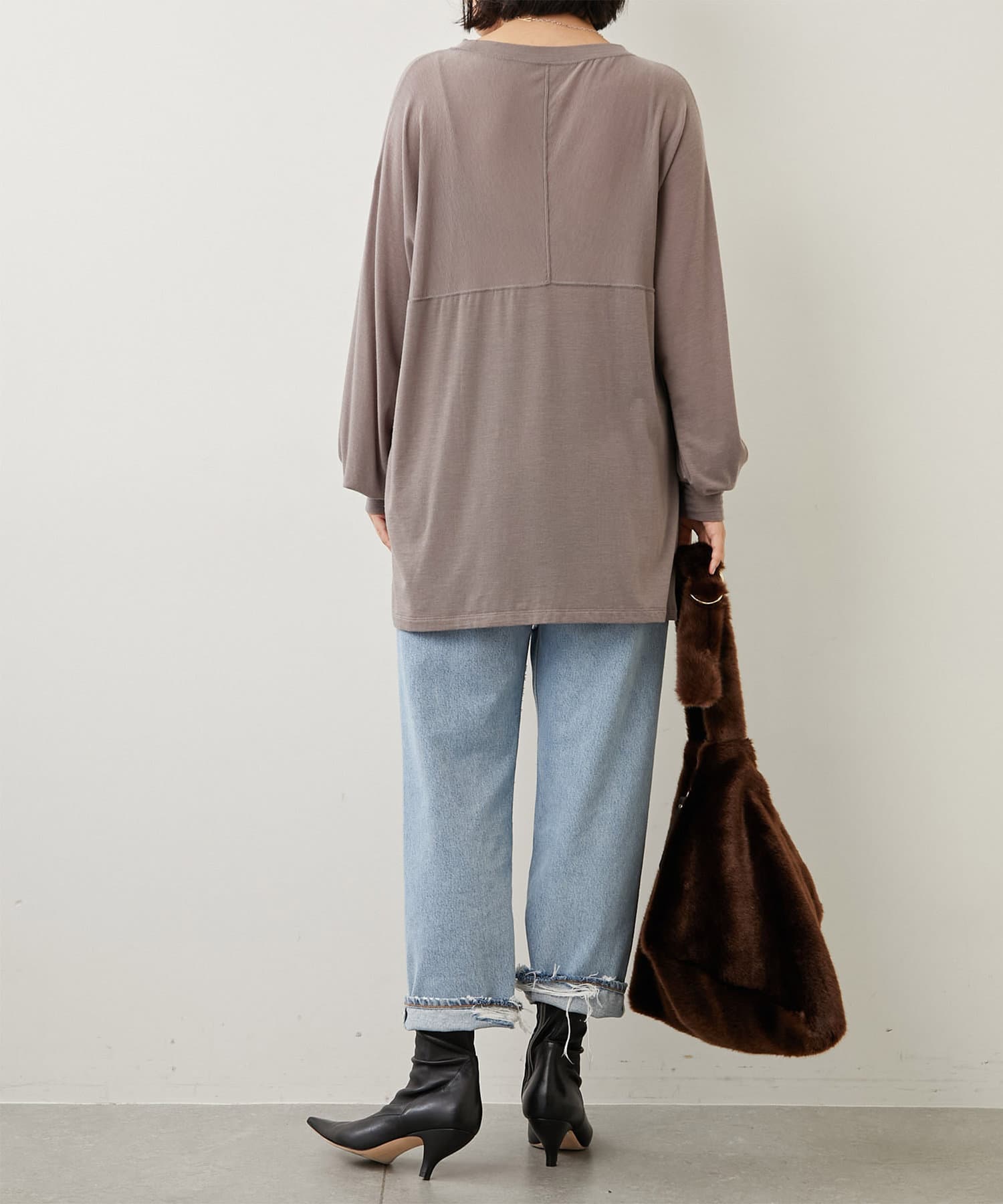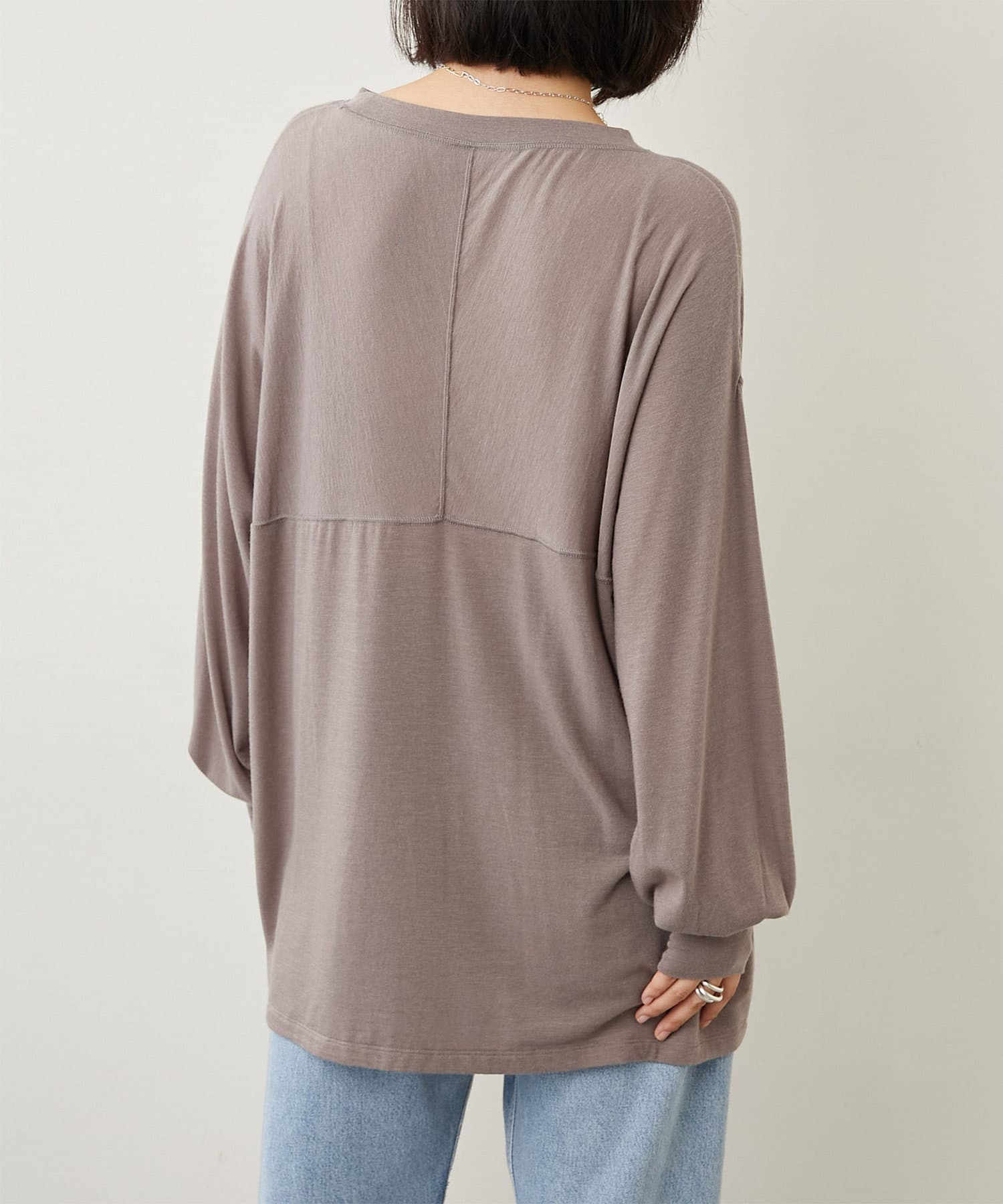 バックスタイルに切り替えを施し、肩を大胆に落としたドルマンスリーブとゆったりとしたオーバーシルエットに仕上げることで、ルーズな雰囲気とリラックス感のある着こなしを楽しめます。