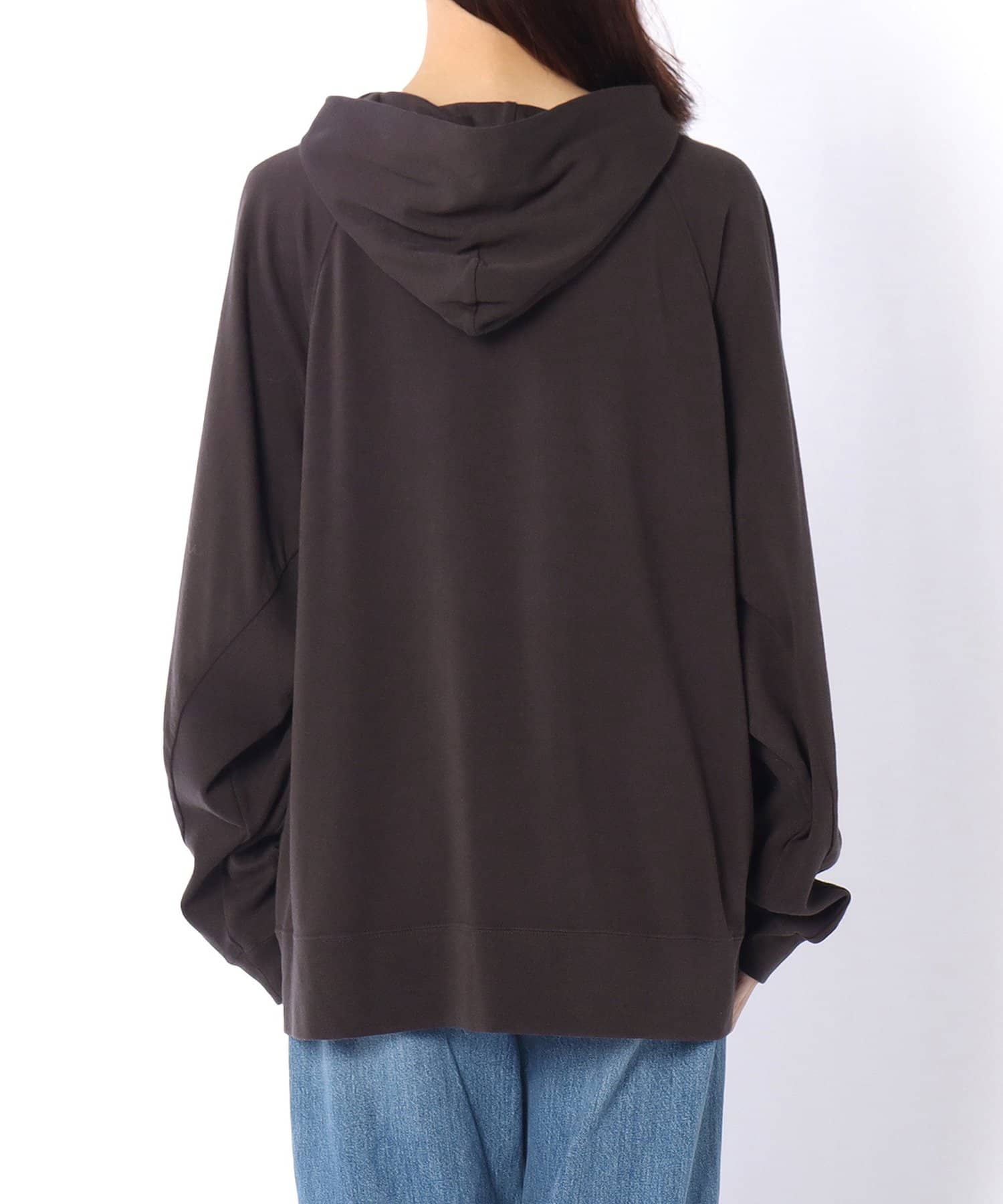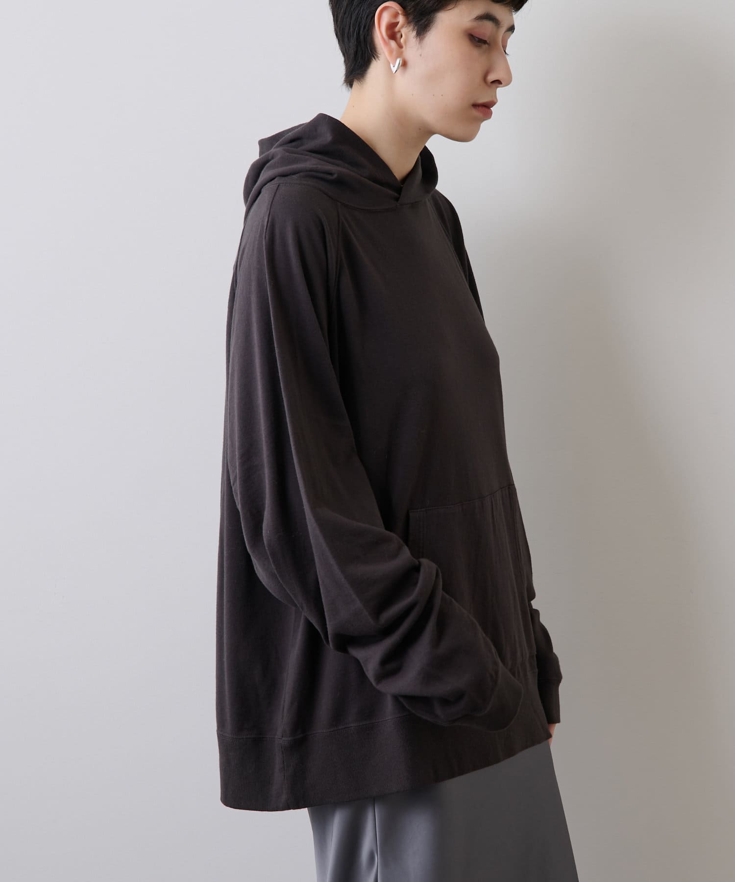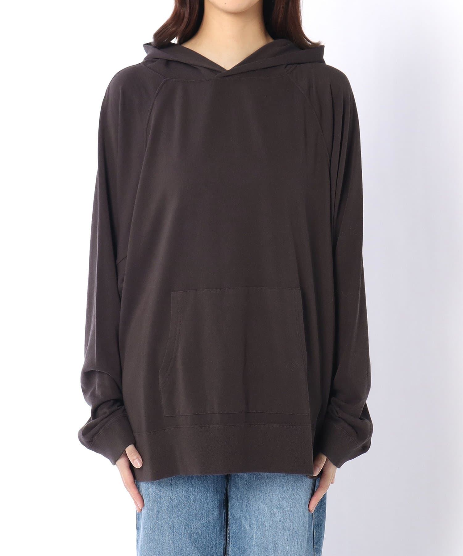 抜け感のあるゆったりとオーバーなシルエットながら、やや厚みを抑えた生地感でラフ見えす過ぎず、これからの季節はアウターインしやすいのもうれしいポイント。